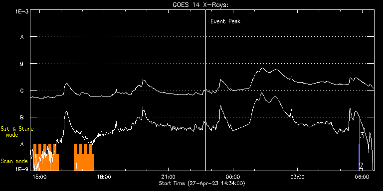 EIS Observation timeline overlay to GOES-Xray curve Code 1" 2" 40" 266" EIS Observations list for this event: STUDY ACRONYM ID DATE OBSERVED DESCRIPTION NOAA# TARGET 0 EL_DHB_01_v2 | 86024 | 2023/04/27 14:44:13 | Coronal Magnetic Field Measurements in | | Flare TIMELINE ID DATE OBSERVED FITS FILE XCEN (+W/-E) YCEN (+N/-S) DUR ----------------------------------------------------------------------------------------------------------------- 86024 | 2023/04/27 14:44:13.000 | eis_l0_20230427_144413.fits.gz | 47.33 | -218.20 | 6m55s 86024 | 2023/04/27 14:51:11.000 | eis_l0_20230427_145111.fits.gz | 48.33 | -218.35 | 6m55s 86024 | 2023/04/27 14:58:08.000 | eis_l0_20230427_145808.fits.gz | 49.33 | -218.28 | 6m56s 86024 | 2023/04/27 15:05:07.000 | eis_l0_20230427_150507.fits.gz | 50.34 | -218.35 | 6m55s 86024 | 2023/04/27 15:12:05.000 | eis_l0_20230427_151205.fits.gz | 51.34 | -218.35 | 6m55s 86024 | 2023/04/27 15:19:03.000 | eis_l0_20230427_151903.fits.gz | 52.35 | -218.35 | 6m55s 86024 | 2023/04/27 15:26:00.000 | eis_l0_20230427_152600.fits.gz | 53.35 | -218.43 | 6m56s 86024 | 2023/04/27 15:32:59.000 | eis_l0_20230427_153259.fits.gz | 54.35 | -218.35 | 6m55s 86024 | 2023/04/27 15:39:57.000 | eis_l0_20230427_153957.fits.gz | 55.44 | -218.51 | 6m55s 86024 | 2023/04/27 15:46:55.000 | eis_l0_20230427_154655.fits.gz | 56.44 | -218.43 | 6m55s 1 EL_DHB_01_v2 | 86025 | 2023/04/27 16:36:43 | Coronal Magnetic Field Measurements in | | Flare TIMELINE ID DATE OBSERVED FITS FILE XCEN (+W/-E) YCEN (+N/-S) DUR ----------------------------------------------------------------------------------------------------------------- 86025 | 2023/04/27 16:36:43.000 | eis_l0_20230427_163643.fits.gz | 63.62 | -218.51 | 6m55s 86025 | 2023/04/27 16:43:41.000 | eis_l0_20230427_164341.fits.gz | 64.63 | -218.51 | 6m55s 86025 | 2023/04/27 16:50:39.000 | eis_l0_20230427_165039.fits.gz | 65.63 | -218.59 | 6m55s 86025 | 2023/04/27 16:57:37.000 | eis_l0_20230427_165737.fits.gz | 66.64 | -218.59 | 6m55s 86025 | 2023/04/27 17:04:35.000 | eis_l0_20230427_170435.fits.gz | 67.64 | -218.59 | 6m55s 86025 | 2023/04/27 17:11:33.000 | eis_l0_20230427_171133.fits.gz | 68.65 | -218.59 | 6m55s 86025 | 2023/04/27 17:18:31.000 | eis_l0_20230427_171831.fits.gz | 69.65 | -218.59 | 6m55s 86025 | 2023/04/27 17:25:29.000 | eis_l0_20230427_172529.fits.gz | 70.73 | -218.66 | 6m56s 2 PRY_slot_contextLITE | 86016 | 2023/04/28 05:50:19 | Pointing Monitoring | 3286 | Active Region TIMELINE ID DATE OBSERVED FITS FILE XCEN (+W/-E) YCEN (+N/-S) DUR ----------------------------------------------------------------------------------------------------------------- 86016 | 2023/04/28 05:50:19.000 | eis_l0_20230428_055019.fits.gz | 0.76 | -195.00 | 2m56s 3 XRT_synop_AIA | 86017 | 2023/04/28 05:53:34 | Pointing Monitoring | | Quiet Sun TIMELINE ID DATE OBSERVED FITS FILE XCEN (+W/-E) YCEN (+N/-S) DUR ----------------------------------------------------------------------------------------------------------------- 86017 | 2023/04/28 05:53:34.000 | eis_l0_20230428_055334.fits.gz | 0.51 | -207.08 | 10s : Check study information : Download file : View thumbnails For this event, also check for: