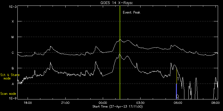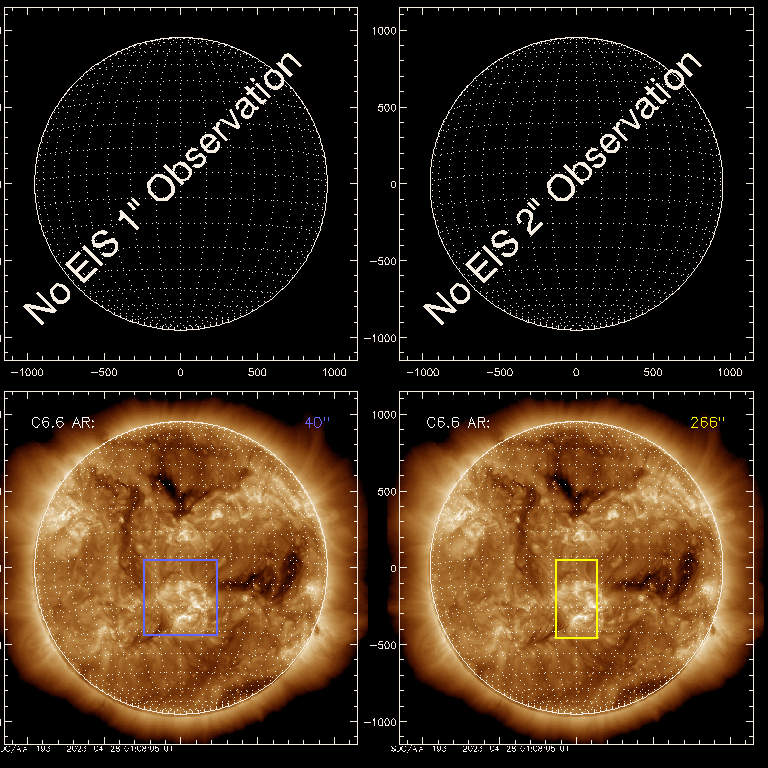 EIS Observation timeline overlay to GOES-Xray curve Code 1" 2" 40" 266" EIS Observations list for this event: STUDY ACRONYM ID DATE OBSERVED DESCRIPTION NOAA# TARGET 0 PRY_slot_contextLITE | 86016 | 2023/04/28 05:50:19 | Pointing Monitoring | 3286 | Active Region TIMELINE ID DATE OBSERVED FITS FILE XCEN (+W/-E) YCEN (+N/-S) DUR ----------------------------------------------------------------------------------------------------------------- 86016 | 2023/04/28 05:50:19.000 | eis_l0_20230428_055019.fits.gz | 0.76 | -195.00 | 2m56s 1 XRT_synop_AIA | 86017 | 2023/04/28 05:53:34 | Pointing Monitoring | | Quiet Sun TIMELINE ID DATE OBSERVED FITS FILE XCEN (+W/-E) YCEN (+N/-S) DUR ----------------------------------------------------------------------------------------------------------------- 86017 | 2023/04/28 05:53:34.000 | eis_l0_20230428_055334.fits.gz | 0.51 | -207.08 | 10s : Check study information : Download file : View thumbnails For this event, also check for: