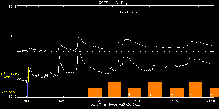 EIS Observation timeline overlay to GOES-Xray curve Code 1" 2" 40" 266" EIS Observations list for this event: STUDY ACRONYM ID DATE OBSERVED DESCRIPTION NOAA# TARGET 0 PRY_slot_contextLITE | 86020 | 2023/04/29 06:05:19 | Pointing Monitoring | | Active Region TIMELINE ID DATE OBSERVED FITS FILE XCEN (+W/-E) YCEN (+N/-S) DUR ----------------------------------------------------------------------------------------------------------------- 86020 | 2023/04/29 06:05:19.000 | eis_l0_20230429_060519.fits.gz | 0.84 | -195.00 | 2m56s 1 XRT_synop_AIA | 86021 | 2023/04/29 06:08:34 | Pointing Monitoring | | Quiet Sun TIMELINE ID DATE OBSERVED FITS FILE XCEN (+W/-E) YCEN (+N/-S) DUR ----------------------------------------------------------------------------------------------------------------- 86021 | 2023/04/29 06:08:34.000 | eis_l0_20230429_060834.fits.gz | 0.51 | -206.92 | 10s 2 DHB_007 | 86032 | 2023/04/29 10:59:20 | Full disk spectral scan | | Quiet Sun TIMELINE ID DATE OBSERVED FITS FILE XCEN (+W/-E) YCEN (+N/-S) DUR ----------------------------------------------------------------------------------------------------------------- 86032 | 2023/04/29 10:59:20.000 | eis_l0_20230429_105920.fits.gz | 815.81 | 635.28 | 1h5m25s 3 DHB_007 | 86033 | 2023/04/29 12:37:13 | Full disk spectral scan | | Quiet Sun TIMELINE ID DATE OBSERVED FITS FILE XCEN (+W/-E) YCEN (+N/-S) DUR ----------------------------------------------------------------------------------------------------------------- 86033 | 2023/04/29 12:37:13.000 | eis_l0_20230429_123713.fits.gz | 815.81 | 165.00 | 1h5m26s 4 DHB_007 | 86035 | 2023/04/29 14:15:13 | Full disk spectral scan | | Quiet Sun TIMELINE ID DATE OBSERVED FITS FILE XCEN (+W/-E) YCEN (+N/-S) DUR ----------------------------------------------------------------------------------------------------------------- 86035 | 2023/04/29 14:15:13.000 | eis_l0_20230429_141513.fits.gz | 815.81 | -778.92 | 1h5m21s 5 DHB_007 | 86036 | 2023/04/29 15:54:43 | Full disk spectral scan | | Quiet Sun TIMELINE ID DATE OBSERVED FITS FILE XCEN (+W/-E) YCEN (+N/-S) DUR ----------------------------------------------------------------------------------------------------------------- 86036 | 2023/04/29 15:54:43.000 | eis_l0_20230429_155443.fits.gz | 815.74 | -1249.13 | 1h5m21s 6 DHB_007 | 86037 | 2023/04/29 17:42:13 | Full disk spectral scan | | Quiet Sun TIMELINE ID DATE OBSERVED FITS FILE XCEN (+W/-E) YCEN (+N/-S) DUR ----------------------------------------------------------------------------------------------------------------- 86037 | 2023/04/29 17:42:13.000 | eis_l0_20230429_174213.fits.gz | 411.89 | 1012.25 | 1h5m26s 7 DHB_007 | 86038 | 2023/04/29 19:12:13 | Full disk spectral scan | 3291 | Quiet Sun TIMELINE ID DATE OBSERVED FITS FILE XCEN (+W/-E) YCEN (+N/-S) DUR ----------------------------------------------------------------------------------------------------------------- 86038 | 2023/04/29 19:12:13.000 | eis_l0_20230429_191213.fits.gz | 411.89 | 68.10 | 1h5m21s 8 DHB_007 | 86039 | 2023/04/29 20:55:13 | Full disk spectral scan | 3291 | Quiet Sun TIMELINE ID DATE OBSERVED FITS FILE XCEN (+W/-E) YCEN (+N/-S) DUR ----------------------------------------------------------------------------------------------------------------- 86039 | 2023/04/29 20:55:13.000 | eis_l0_20230429_205513.fits.gz | 411.89 | 164.92 | 1h5m26s : Check study information : Download file : View thumbnails For this event, also check for: