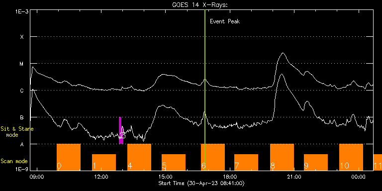 EIS Observation timeline overlay to GOES-Xray curve Code 1" 2" 40" 266" EIS Observations list for this event: STUDY ACRONYM ID DATE OBSERVED DESCRIPTION NOAA# TARGET 0 DHB_007 | 86047 | 2023/04/30 09:55:43 | Full disk spectral scan | | Quiet Sun TIMELINE ID DATE OBSERVED FITS FILE XCEN (+W/-E) YCEN (+N/-S) DUR ----------------------------------------------------------------------------------------------------------------- 86047 | 2023/04/30 09:55:43.000 | eis_l0_20230430_095543.fits.gz | 0.87 | -776.11 | 1h5m25s 1 DHB_007 | 86048 | 2023/04/30 11:35:13 | Full disk spectral scan | | Quiet Sun TIMELINE ID DATE OBSERVED FITS FILE XCEN (+W/-E) YCEN (+N/-S) DUR ----------------------------------------------------------------------------------------------------------------- 86048 | 2023/04/30 11:35:13.000 | eis_l0_20230430_113513.fits.gz | 1.02 | -1719.95 | 1h5m22s 2 regcal081 | 86064 | 2023/04/30 12:50:11 | Dark exposures, CCD bottom rows (150s | | Engineering TIMELINE ID DATE OBSERVED FITS FILE XCEN (+W/-E) YCEN (+N/-S) DUR ----------------------------------------------------------------------------------------------------------------- 86064 | 2023/04/30 12:50:11.000 | eis_l0_20230430_125011.fits.gz | 15.01 | -1757.95 | 5m2s 3 regcal082 | 86065 | 2023/04/30 12:55:40 | Dark exposures, top CCD rows (150s exp | | Engineering TIMELINE ID DATE OBSERVED FITS FILE XCEN (+W/-E) YCEN (+N/-S) DUR ----------------------------------------------------------------------------------------------------------------- 86065 | 2023/04/30 12:55:40.000 | eis_l0_20230430_125540.fits.gz | 15.09 | -735.95 | 5m2s 4 DHB_007 | 86049 | 2023/04/30 13:14:13 | Full disk spectral scan | | Quiet Sun TIMELINE ID DATE OBSERVED FITS FILE XCEN (+W/-E) YCEN (+N/-S) DUR ----------------------------------------------------------------------------------------------------------------- 86049 | 2023/04/30 13:14:13.000 | eis_l0_20230430_131413.fits.gz | -410.24 | 1012.17 | 1h5m25s 5 DHB_007 | 86050 | 2023/04/30 14:50:13 | Full disk spectral scan | | Quiet Sun TIMELINE ID DATE OBSERVED FITS FILE XCEN (+W/-E) YCEN (+N/-S) DUR ----------------------------------------------------------------------------------------------------------------- 86050 | 2023/04/30 14:50:13.000 | eis_l0_20230430_145013.fits.gz | -410.17 | 68.17 | 1h5m21s 6 DHB_007 | 86051 | 2023/04/30 16:39:43 | Full disk spectral scan | | Quiet Sun TIMELINE ID DATE OBSERVED FITS FILE XCEN (+W/-E) YCEN (+N/-S) DUR ----------------------------------------------------------------------------------------------------------------- 86051 | 2023/04/30 16:39:43.000 | eis_l0_20230430_163943.fits.gz | -410.17 | 164.92 | 1h5m25s 7 DHB_007 | 86052 | 2023/04/30 18:12:13 | Full disk spectral scan | | Quiet Sun TIMELINE ID DATE OBSERVED FITS FILE XCEN (+W/-E) YCEN (+N/-S) DUR ----------------------------------------------------------------------------------------------------------------- 86052 | 2023/04/30 18:12:13.000 | eis_l0_20230430_181213.fits.gz | -410.17 | -778.85 | 1h5m20s 8 DHB_007 | 86053 | 2023/04/30 19:53:13 | Full disk spectral scan | | Quiet Sun TIMELINE ID DATE OBSERVED FITS FILE XCEN (+W/-E) YCEN (+N/-S) DUR ----------------------------------------------------------------------------------------------------------------- 86053 | 2023/04/30 19:53:13.000 | eis_l0_20230430_195313.fits.gz | -410.17 | -682.17 | 1h5m26s 9 DHB_007 | 86054 | 2023/04/30 21:27:13 | Full disk spectral scan | | Quiet Sun TIMELINE ID DATE OBSERVED FITS FILE XCEN (+W/-E) YCEN (+N/-S) DUR ----------------------------------------------------------------------------------------------------------------- 86054 | 2023/04/30 21:27:13.000 | eis_l0_20230430_212713.fits.gz | -410.09 | -1626.02 | 1h5m21s 10 DHB_007 | 86055 | 2023/04/30 23:06:43 | Full disk spectral scan | | Quiet Sun TIMELINE ID DATE OBSERVED FITS FILE XCEN (+W/-E) YCEN (+N/-S) DUR ----------------------------------------------------------------------------------------------------------------- 86055 | 2023/04/30 23:06:43.000 | eis_l0_20230430_230643.fits.gz | -814.02 | 635.36 | 1h5m25s 11 DHB_007 | 86056 | 2023/05/01 00:40:43 | Full disk spectral scan | 3293 | Quiet Sun TIMELINE ID DATE OBSERVED FITS FILE XCEN (+W/-E) YCEN (+N/-S) DUR ----------------------------------------------------------------------------------------------------------------- 86056 | 2023/05/01 00:40:43.000 | eis_l0_20230501_004043.fits.gz | -814.02 | 164.92 | 1h5m24s : Check study information : Download file : View thumbnails For this event, also check for: