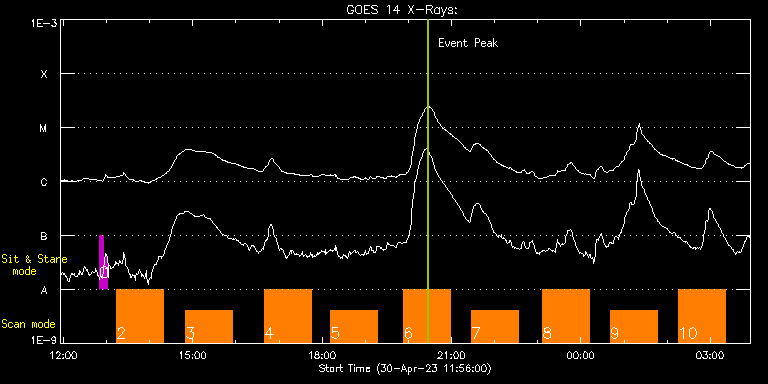 EIS Observation timeline overlay to GOES-Xray curve Code 1" 2" 40" 266" EIS Observations list for this event: STUDY ACRONYM ID DATE OBSERVED DESCRIPTION NOAA# TARGET 0 regcal081 | 86064 | 2023/04/30 12:50:11 | Dark exposures, CCD bottom rows (150s | | Engineering TIMELINE ID DATE OBSERVED FITS FILE XCEN (+W/-E) YCEN (+N/-S) DUR ----------------------------------------------------------------------------------------------------------------- 86064 | 2023/04/30 12:50:11.000 | eis_l0_20230430_125011.fits.gz | 15.01 | -1757.95 | 5m2s 1 regcal082 | 86065 | 2023/04/30 12:55:40 | Dark exposures, top CCD rows (150s exp | | Engineering TIMELINE ID DATE OBSERVED FITS FILE XCEN (+W/-E) YCEN (+N/-S) DUR ----------------------------------------------------------------------------------------------------------------- 86065 | 2023/04/30 12:55:40.000 | eis_l0_20230430_125540.fits.gz | 15.09 | -735.95 | 5m2s 2 DHB_007 | 86049 | 2023/04/30 13:14:13 | Full disk spectral scan | | Quiet Sun TIMELINE ID DATE OBSERVED FITS FILE XCEN (+W/-E) YCEN (+N/-S) DUR ----------------------------------------------------------------------------------------------------------------- 86049 | 2023/04/30 13:14:13.000 | eis_l0_20230430_131413.fits.gz | -410.24 | 1012.17 | 1h5m25s 3 DHB_007 | 86050 | 2023/04/30 14:50:13 | Full disk spectral scan | | Quiet Sun TIMELINE ID DATE OBSERVED FITS FILE XCEN (+W/-E) YCEN (+N/-S) DUR ----------------------------------------------------------------------------------------------------------------- 86050 | 2023/04/30 14:50:13.000 | eis_l0_20230430_145013.fits.gz | -410.17 | 68.17 | 1h5m21s 4 DHB_007 | 86051 | 2023/04/30 16:39:43 | Full disk spectral scan | | Quiet Sun TIMELINE ID DATE OBSERVED FITS FILE XCEN (+W/-E) YCEN (+N/-S) DUR ----------------------------------------------------------------------------------------------------------------- 86051 | 2023/04/30 16:39:43.000 | eis_l0_20230430_163943.fits.gz | -410.17 | 164.92 | 1h5m25s 5 DHB_007 | 86052 | 2023/04/30 18:12:13 | Full disk spectral scan | | Quiet Sun TIMELINE ID DATE OBSERVED FITS FILE XCEN (+W/-E) YCEN (+N/-S) DUR ----------------------------------------------------------------------------------------------------------------- 86052 | 2023/04/30 18:12:13.000 | eis_l0_20230430_181213.fits.gz | -410.17 | -778.85 | 1h5m20s 6 DHB_007 | 86053 | 2023/04/30 19:53:13 | Full disk spectral scan | | Quiet Sun TIMELINE ID DATE OBSERVED FITS FILE XCEN (+W/-E) YCEN (+N/-S) DUR ----------------------------------------------------------------------------------------------------------------- 86053 | 2023/04/30 19:53:13.000 | eis_l0_20230430_195313.fits.gz | -410.17 | -682.17 | 1h5m26s 7 DHB_007 | 86054 | 2023/04/30 21:27:13 | Full disk spectral scan | | Quiet Sun TIMELINE ID DATE OBSERVED FITS FILE XCEN (+W/-E) YCEN (+N/-S) DUR ----------------------------------------------------------------------------------------------------------------- 86054 | 2023/04/30 21:27:13.000 | eis_l0_20230430_212713.fits.gz | -410.09 | -1626.02 | 1h5m21s 8 DHB_007 | 86055 | 2023/04/30 23:06:43 | Full disk spectral scan | | Quiet Sun TIMELINE ID DATE OBSERVED FITS FILE XCEN (+W/-E) YCEN (+N/-S) DUR ----------------------------------------------------------------------------------------------------------------- 86055 | 2023/04/30 23:06:43.000 | eis_l0_20230430_230643.fits.gz | -814.02 | 635.36 | 1h5m25s 9 DHB_007 | 86056 | 2023/05/01 00:40:43 | Full disk spectral scan | 3293 | Quiet Sun TIMELINE ID DATE OBSERVED FITS FILE XCEN (+W/-E) YCEN (+N/-S) DUR ----------------------------------------------------------------------------------------------------------------- 86056 | 2023/05/01 00:40:43.000 | eis_l0_20230501_004043.fits.gz | -814.02 | 164.92 | 1h5m24s 10 DHB_007 | 86057 | 2023/05/01 02:15:13 | Full disk spectral scan | | Quiet Sun TIMELINE ID DATE OBSERVED FITS FILE XCEN (+W/-E) YCEN (+N/-S) DUR ----------------------------------------------------------------------------------------------------------------- 86057 | 2023/05/01 02:15:13.000 | eis_l0_20230501_021513.fits.gz | -814.02 | -779.00 | 1h5m20s : Check study information : Download file : View thumbnails For this event, also check for:
