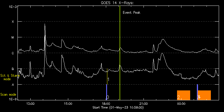 EIS Observation timeline overlay to GOES-Xray curve Code 1" 2" 40" 266" EIS Observations list for this event: STUDY ACRONYM ID DATE OBSERVED DESCRIPTION NOAA# TARGET 0 PRY_slot_contextLITE | 86062 | 2023/05/01 18:02:19 | Pointing Monitoring | | Active Region TIMELINE ID DATE OBSERVED FITS FILE XCEN (+W/-E) YCEN (+N/-S) DUR ----------------------------------------------------------------------------------------------------------------- 86062 | 2023/05/01 18:02:19.000 | eis_l0_20230501_180219.fits.gz | 0.68 | -194.77 | 2m56s 1 XRT_synop_AIA | 86063 | 2023/05/01 18:05:33 | Pointing Monitoring | | Quiet Sun TIMELINE ID DATE OBSERVED FITS FILE XCEN (+W/-E) YCEN (+N/-S) DUR ----------------------------------------------------------------------------------------------------------------- 86063 | 2023/05/01 18:05:33.000 | eis_l0_20230501_180533.fits.gz | 0.43 | -207.00 | 11s 2 HPW021VEL260x512v2 | 86059 | 2023/05/01 23:40:19 | Active region studies | 3289 | Active Region TIMELINE ID DATE OBSERVED FITS FILE XCEN (+W/-E) YCEN (+N/-S) DUR ----------------------------------------------------------------------------------------------------------------- 86059 | 2023/05/01 23:40:19.000 | eis_l0_20230501_234019.fits.gz | -51.60 | 175.83 | 1h0m45s 3 PRY_slot_context_v4 | 86060 | 2023/05/02 01:14:19 | Active region studies | | Active Region TIMELINE ID DATE OBSERVED FITS FILE XCEN (+W/-E) YCEN (+N/-S) DUR ----------------------------------------------------------------------------------------------------------------- 86060 | 2023/05/02 01:14:19.000 | eis_l0_20230502_011419.fits.gz | -37.84 | 187.75 | 4m11s 4 Atlas_60 | 86061 | 2023/05/02 01:18:55 | Active region studies | | Quiet Sun TIMELINE ID DATE OBSERVED FITS FILE XCEN (+W/-E) YCEN (+N/-S) DUR ----------------------------------------------------------------------------------------------------------------- 86061 | 2023/05/02 01:18:55.000 | eis_l0_20230502_011855.fits.gz | -37.64 | 351.75 | 1h1m40s : Check study information : Download file : View thumbnails For this event, also check for: