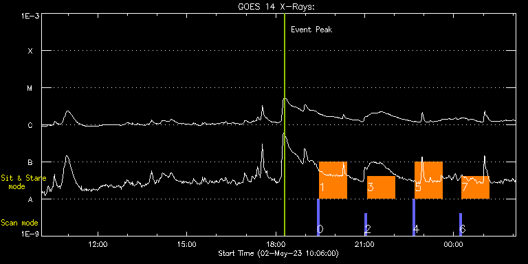 EIS Observation timeline overlay to GOES-Xray curve