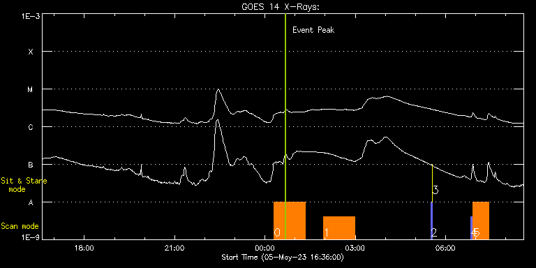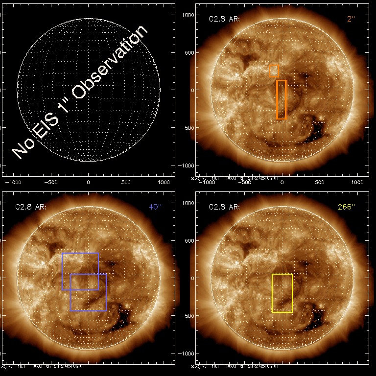EIS Observation timeline overlay to GOES-Xray curve Code 1" 2" 40" 266" EIS Observations list for this event: STUDY ACRONYM ID DATE OBSERVED DESCRIPTION NOAA# TARGET 0 Large_CH_Map | 86122 | 2023/05/06 00:18:13 | HOP 393 - cycle 24/25 equatorial trans | | Quiet Sun TIMELINE ID DATE OBSERVED FITS FILE XCEN (+W/-E) YCEN (+N/-S) DUR ----------------------------------------------------------------------------------------------------------------- 86122 | 2023/05/06 00:18:13.000 | eis_l0_20230506_001813.fits.gz | -12.44 | -132.59 | 1h1m53s 1 Large_CH_Map | 86147 | 2023/05/06 01:57:12 | HOP 393 - cycle 24/25 equatorial trans | | Quiet Sun TIMELINE ID DATE OBSERVED FITS FILE XCEN (+W/-E) YCEN (+N/-S) DUR ----------------------------------------------------------------------------------------------------------------- 86147 | 2023/05/06 01:57:12.000 | eis_l0_20230506_015712.fits.gz | 2.85 | -132.51 | 1h1m53s 2 PRY_slot_contextLITE | 86127 | 2023/05/06 05:30:18 | Pointing Monitoring | | Active Region TIMELINE ID DATE OBSERVED FITS FILE XCEN (+W/-E) YCEN (+N/-S) DUR ----------------------------------------------------------------------------------------------------------------- 86127 | 2023/05/06 05:30:18.000 | eis_l0_20230506_053018.fits.gz | 0.76 | -194.92 | 2m56s 3 XRT_synop_AIA | 86128 | 2023/05/06 05:33:33 | Pointing Monitoring | | Quiet Sun TIMELINE ID DATE OBSERVED FITS FILE XCEN (+W/-E) YCEN (+N/-S) DUR ----------------------------------------------------------------------------------------------------------------- 86128 | 2023/05/06 05:33:33.000 | eis_l0_20230506_053333.fits.gz | 0.51 | -207.00 | 10s 4 PRY_slot_context_v4 | 86148 | 2023/05/06 06:50:26 | Major flare watch | 3293 | Active Region TIMELINE ID DATE OBSERVED FITS FILE XCEN (+W/-E) YCEN (+N/-S) DUR ----------------------------------------------------------------------------------------------------------------- 86148 | 2023/05/06 06:50:26.000 | eis_l0_20230506_065026.fits.gz | -106.34 | 85.75 | 4m11s 5 Atlas_30 | 86149 | 2023/05/06 06:55:03 | Major flare watch - spectral atlas | 3296 | Quiet Sun TIMELINE ID DATE OBSERVED FITS FILE XCEN (+W/-E) YCEN (+N/-S) DUR ----------------------------------------------------------------------------------------------------------------- 86149 | 2023/05/06 06:55:03.000 | eis_l0_20230506_065503.fits.gz | -105.88 | 249.51 | 31m39s : Check study information : Download file : View thumbnails For this event, also check for: