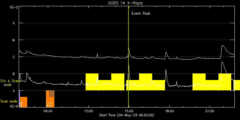 EIS Observation timeline overlay to GOES-Xray curve Code 1" 2" 40" 266" EIS Observations list for this event: STUDY ACRONYM ID DATE OBSERVED DESCRIPTION NOAA# TARGET 0 PRY_slot_context_v4 | 86148 | 2023/05/06 06:50:26 | Major flare watch | 3293 | Active Region TIMELINE ID DATE OBSERVED FITS FILE XCEN (+W/-E) YCEN (+N/-S) DUR ----------------------------------------------------------------------------------------------------------------- 86148 | 2023/05/06 06:50:26.000 | eis_l0_20230506_065026.fits.gz | -106.34 | 85.75 | 4m11s 1 Atlas_30 | 86149 | 2023/05/06 06:55:03 | Major flare watch - spectral atlas | 3296 | Quiet Sun TIMELINE ID DATE OBSERVED FITS FILE XCEN (+W/-E) YCEN (+N/-S) DUR ----------------------------------------------------------------------------------------------------------------- 86149 | 2023/05/06 06:55:03.000 | eis_l0_20230506_065503.fits.gz | -105.88 | 249.51 | 31m39s 2 HH_AR+FLR_RAS_N03 | 86120 | 2023/05/06 08:51:39 | HOP 401 - dynamics of flux cancellatio | 3296 | Active Region TIMELINE ID DATE OBSERVED FITS FILE XCEN (+W/-E) YCEN (+N/-S) DUR ----------------------------------------------------------------------------------------------------------------- 86120 | 2023/05/06 08:51:39.000 | eis_l0_20230506_085139.fits.gz | -87.33 | 219.44 | 13m18s 3 HH_Flare_60x152f | 86121 | 2023/05/06 09:05:01 | HOP 401 - dynamics of flux cancellatio | 3296 | Flare TIMELINE ID DATE OBSERVED FITS FILE XCEN (+W/-E) YCEN (+N/-S) DUR ----------------------------------------------------------------------------------------------------------------- 86121 | 2023/05/06 09:05:01.000 | eis_l0_20230506_090501.fits.gz | -88.64 | 263.59 | 2m49s 86121 | 2023/05/06 09:07:53.000 | eis_l0_20230506_090753.fits.gz | -88.18 | 263.52 | 2m48s 86121 | 2023/05/06 09:10:43.000 | eis_l0_20230506_091043.fits.gz | -87.72 | 263.52 | 2m48s 86121 | 2023/05/06 09:13:34.000 | eis_l0_20230506_091334.fits.gz | -87.33 | 263.52 | 2m48s 86121 | 2023/05/06 09:16:25.000 | eis_l0_20230506_091625.fits.gz | -86.87 | 263.44 | 2m48s 86121 | 2023/05/06 09:19:16.000 | eis_l0_20230506_091916.fits.gz | -86.40 | 263.36 | 2m47s 86121 | 2023/05/06 09:22:06.000 | eis_l0_20230506_092206.fits.gz | -86.02 | 263.36 | 2m47s 86121 | 2023/05/06 09:24:56.000 | eis_l0_20230506_092456.fits.gz | -85.55 | 263.44 | 2m47s 4 Flare266_Hunter01 | 86166 | 2023/05/06 11:47:33 | Flare watch | 3297 | Flare TIMELINE ID DATE OBSERVED FITS FILE XCEN (+W/-E) YCEN (+N/-S) DUR ----------------------------------------------------------------------------------------------------------------- 86166 | 2023/05/06 11:47:33.000 | eis_l0_20230506_114733.fits.gz | -256.70 | 210.96 | 56m23s 86166 | 2023/05/06 12:44:48.000 | eis_l0_20230506_124448.fits.gz | -248.59 | 210.89 | 56m22s 86166 | 2023/05/06 13:42:02.000 | eis_l0_20230506_134202.fits.gz | -240.32 | 210.89 | 56m23s 5 Flare266_Hunter01 | 86199 | 2023/05/06 14:48:40 | Flare watch | 3296 | Flare TIMELINE ID DATE OBSERVED FITS FILE XCEN (+W/-E) YCEN (+N/-S) DUR ----------------------------------------------------------------------------------------------------------------- 86199 | 2023/05/06 14:48:40.000 | eis_l0_20230506_144840.fits.gz | -230.74 | 211.12 | 56m23s 86199 | 2023/05/06 15:45:55.000 | eis_l0_20230506_154555.fits.gz | -222.55 | 211.04 | 56m22s 86199 | 2023/05/06 16:43:09.000 | eis_l0_20230506_164309.fits.gz | -214.37 | 211.27 | 56m23s 6 Flare266_Hunter01 | 86200 | 2023/05/06 19:44:13 | Flare watch | 3296 | Flare TIMELINE ID DATE OBSERVED FITS FILE XCEN (+W/-E) YCEN (+N/-S) DUR ----------------------------------------------------------------------------------------------------------------- 86200 | 2023/05/06 19:44:13.000 | eis_l0_20230506_194413.fits.gz | -188.18 | 211.50 | 56m22s 86200 | 2023/05/06 20:41:27.000 | eis_l0_20230506_204127.fits.gz | -179.84 | 211.27 | 56m23s 86200 | 2023/05/06 21:38:42.000 | eis_l0_20230506_213842.fits.gz | -171.49 | 211.43 | 56m22s 7 Flare266_Hunter01 | 86201 | 2023/05/06 22:45:13 | Flare watch | 3296 | Flare TIMELINE ID DATE OBSERVED FITS FILE XCEN (+W/-E) YCEN (+N/-S) DUR ----------------------------------------------------------------------------------------------------------------- 86201 | 2023/05/06 22:45:13.000 | eis_l0_20230506_224513.fits.gz | -161.84 | 211.35 | 56m22s 86201 | 2023/05/06 23:42:27.000 | eis_l0_20230506_234227.fits.gz | -153.50 | 211.35 | 56m23s 86201 | 2023/05/07 00:39:42.000 | eis_l0_20230507_003942.fits.gz | -145.08 | 211.43 | 56m22s : Check study information : Download file : View thumbnails For this event, also check for: