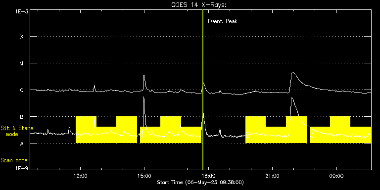 EIS Observation timeline overlay to GOES-Xray curve Code 1" 2" 40" 266" EIS Observations list for this event: STUDY ACRONYM ID DATE OBSERVED DESCRIPTION NOAA# TARGET 0 Flare266_Hunter01 | 86166 | 2023/05/06 11:47:33 | Flare watch | 3297 | Flare TIMELINE ID DATE OBSERVED FITS FILE XCEN (+W/-E) YCEN (+N/-S) DUR ----------------------------------------------------------------------------------------------------------------- 86166 | 2023/05/06 11:47:33.000 | eis_l0_20230506_114733.fits.gz | -256.70 | 210.96 | 56m23s 86166 | 2023/05/06 12:44:48.000 | eis_l0_20230506_124448.fits.gz | -248.59 | 210.89 | 56m22s 86166 | 2023/05/06 13:42:02.000 | eis_l0_20230506_134202.fits.gz | -240.32 | 210.89 | 56m23s 1 Flare266_Hunter01 | 86199 | 2023/05/06 14:48:40 | Flare watch | 3296 | Flare TIMELINE ID DATE OBSERVED FITS FILE XCEN (+W/-E) YCEN (+N/-S) DUR ----------------------------------------------------------------------------------------------------------------- 86199 | 2023/05/06 14:48:40.000 | eis_l0_20230506_144840.fits.gz | -230.74 | 211.12 | 56m23s 86199 | 2023/05/06 15:45:55.000 | eis_l0_20230506_154555.fits.gz | -222.55 | 211.04 | 56m22s 86199 | 2023/05/06 16:43:09.000 | eis_l0_20230506_164309.fits.gz | -214.37 | 211.27 | 56m23s 2 Flare266_Hunter01 | 86200 | 2023/05/06 19:44:13 | Flare watch | 3296 | Flare TIMELINE ID DATE OBSERVED FITS FILE XCEN (+W/-E) YCEN (+N/-S) DUR ----------------------------------------------------------------------------------------------------------------- 86200 | 2023/05/06 19:44:13.000 | eis_l0_20230506_194413.fits.gz | -188.18 | 211.50 | 56m22s 86200 | 2023/05/06 20:41:27.000 | eis_l0_20230506_204127.fits.gz | -179.84 | 211.27 | 56m23s 86200 | 2023/05/06 21:38:42.000 | eis_l0_20230506_213842.fits.gz | -171.49 | 211.43 | 56m22s 3 Flare266_Hunter01 | 86201 | 2023/05/06 22:45:13 | Flare watch | 3296 | Flare TIMELINE ID DATE OBSERVED FITS FILE XCEN (+W/-E) YCEN (+N/-S) DUR ----------------------------------------------------------------------------------------------------------------- 86201 | 2023/05/06 22:45:13.000 | eis_l0_20230506_224513.fits.gz | -161.84 | 211.35 | 56m22s 86201 | 2023/05/06 23:42:27.000 | eis_l0_20230506_234227.fits.gz | -153.50 | 211.35 | 56m23s 86201 | 2023/05/07 00:39:42.000 | eis_l0_20230507_003942.fits.gz | -145.08 | 211.43 | 56m22s : Check study information : Download file : View thumbnails For this event, also check for:
