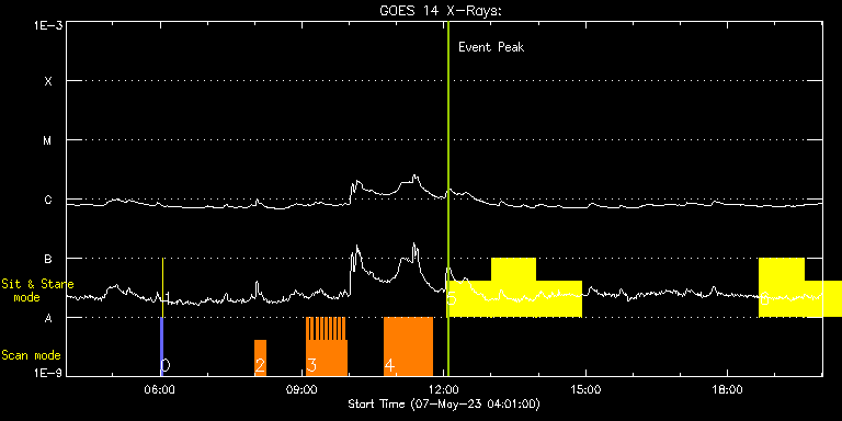 EIS Observation timeline overlay to GOES-Xray curve Code 1" 2" 40" 266" EIS Observations list for this event: STUDY ACRONYM ID DATE OBSERVED DESCRIPTION NOAA# TARGET 0 PRY_slot_contextLITE | 86160 | 2023/05/07 06:00:19 | Pointing Monitoring | 3294 | Active Region TIMELINE ID DATE OBSERVED FITS FILE XCEN (+W/-E) YCEN (+N/-S) DUR ----------------------------------------------------------------------------------------------------------------- 86160 | 2023/05/07 06:00:19.000 | eis_l0_20230507_060019.fits.gz | 0.76 | -194.92 | 2m57s 1 XRT_synop_AIA | 86161 | 2023/05/07 06:03:34 | Pointing Monitoring | 3294 | Quiet Sun TIMELINE ID DATE OBSERVED FITS FILE XCEN (+W/-E) YCEN (+N/-S) DUR ----------------------------------------------------------------------------------------------------------------- 86161 | 2023/05/07 06:03:34.000 | eis_l0_20230507_060334.fits.gz | 0.51 | -207.00 | 10s 2 HH_AR+FLR_RAS_N03 | 86154 | 2023/05/07 08:00:19 | HOP 401 (with SST and IRIS - Dynamics | 3297 | Active Region TIMELINE ID DATE OBSERVED FITS FILE XCEN (+W/-E) YCEN (+N/-S) DUR ----------------------------------------------------------------------------------------------------------------- 86154 | 2023/05/07 08:00:19.000 | eis_l0_20230507_080019.fits.gz | -80.73 | 241.35 | 13m19s 3 HH_Flare_60x152f | 86155 | 2023/05/07 09:06:10 | HOP 401 (with SST and IRIS - Dynamics | | Flare TIMELINE ID DATE OBSERVED FITS FILE XCEN (+W/-E) YCEN (+N/-S) DUR ----------------------------------------------------------------------------------------------------------------- 86155 | 2023/05/07 09:06:10.000 | eis_l0_20230507_090610.fits.gz | -70.92 | 285.27 | 2m48s 86155 | 2023/05/07 09:09:01.000 | eis_l0_20230507_090901.fits.gz | -70.54 | 285.27 | 2m48s 86155 | 2023/05/07 09:11:52.000 | eis_l0_20230507_091152.fits.gz | -70.15 | 285.20 | 2m49s 86155 | 2023/05/07 09:14:44.000 | eis_l0_20230507_091444.fits.gz | -69.76 | 285.35 | 2m48s 86155 | 2023/05/07 09:17:35.000 | eis_l0_20230507_091735.fits.gz | -69.30 | 285.20 | 2m48s 86155 | 2023/05/07 09:20:26.000 | eis_l0_20230507_092026.fits.gz | -68.91 | 285.27 | 2m47s 86155 | 2023/05/07 09:23:16.000 | eis_l0_20230507_092316.fits.gz | -68.45 | 285.20 | 2m48s 86155 | 2023/05/07 09:26:07.000 | eis_l0_20230507_092607.fits.gz | -68.07 | 285.20 | 2m48s 86155 | 2023/05/07 09:28:58.000 | eis_l0_20230507_092858.fits.gz | -67.68 | 285.20 | 2m48s 86155 | 2023/05/07 09:31:49.000 | eis_l0_20230507_093149.fits.gz | -67.22 | 285.20 | 2m48s 86155 | 2023/05/07 09:34:40.000 | eis_l0_20230507_093440.fits.gz | -66.83 | 285.20 | 2m48s 86155 | 2023/05/07 09:37:31.000 | eis_l0_20230507_093731.fits.gz | -66.44 | 285.27 | 2m47s 86155 | 2023/05/07 09:40:21.000 | eis_l0_20230507_094021.fits.gz | -65.90 | 285.20 | 2m48s 86155 | 2023/05/07 09:43:12.000 | eis_l0_20230507_094312.fits.gz | -65.52 | 285.20 | 2m48s 86155 | 2023/05/07 09:46:03.000 | eis_l0_20230507_094603.fits.gz | -65.05 | 285.12 | 2m48s 86155 | 2023/05/07 09:48:53.000 | eis_l0_20230507_094853.fits.gz | -64.67 | 285.20 | 2m48s 86155 | 2023/05/07 09:51:44.000 | eis_l0_20230507_095144.fits.gz | -64.20 | 285.12 | 2m48s 86155 | 2023/05/07 09:54:35.000 | eis_l0_20230507_095435.fits.gz | -63.89 | 285.12 | 2m48s 4 Atlas_60 | 86181 | 2023/05/07 10:44:40 | Active Region Studies | | Quiet Sun TIMELINE ID DATE OBSERVED FITS FILE XCEN (+W/-E) YCEN (+N/-S) DUR ----------------------------------------------------------------------------------------------------------------- 86181 | 2023/05/07 10:44:40.000 | eis_l0_20230507_104440.fits.gz | -56.40 | 281.27 | 1h1m40s 5 Flare266_Hunter01 | 86202 | 2023/05/07 12:03:33 | Flare watch | 3297 | Flare TIMELINE ID DATE OBSERVED FITS FILE XCEN (+W/-E) YCEN (+N/-S) DUR ----------------------------------------------------------------------------------------------------------------- 86202 | 2023/05/07 12:03:33.000 | eis_l0_20230507_120333.fits.gz | -44.58 | 211.04 | 56m22s 86202 | 2023/05/07 13:00:47.000 | eis_l0_20230507_130047.fits.gz | -36.16 | 211.04 | 56m22s 86202 | 2023/05/07 13:58:02.000 | eis_l0_20230507_135802.fits.gz | -27.74 | 211.27 | 56m22s 6 Flare266_Hunter01 | 86203 | 2023/05/07 18:40:40 | Flare watch | 3296 | Flare TIMELINE ID DATE OBSERVED FITS FILE XCEN (+W/-E) YCEN (+N/-S) DUR ----------------------------------------------------------------------------------------------------------------- 86203 | 2023/05/07 18:40:40.000 | eis_l0_20230507_184040.fits.gz | 13.98 | 210.81 | 56m22s 86203 | 2023/05/07 19:37:54.000 | eis_l0_20230507_193754.fits.gz | 22.40 | 210.50 | 56m22s 86203 | 2023/05/07 20:35:08.000 | eis_l0_20230507_203508.fits.gz | 30.89 | 210.58 | 56m23s : Check study information : Download file : View thumbnails For this event, also check for: