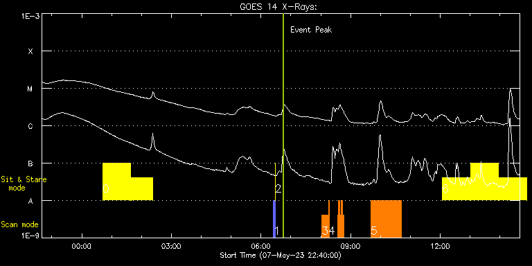 EIS Observation timeline overlay to GOES-Xray curve Code 1" 2" 40" 266" EIS Observations list for this event: STUDY ACRONYM ID DATE OBSERVED DESCRIPTION NOAA# TARGET 0 Flare266_Hunter01 | 86205 | 2023/05/08 00:42:12 | Flare watch | 3297 | Flare TIMELINE ID DATE OBSERVED FITS FILE XCEN (+W/-E) YCEN (+N/-S) DUR ----------------------------------------------------------------------------------------------------------------- 86205 | 2023/05/08 00:42:12.000 | eis_l0_20230508_004212.fits.gz | 67.20 | 209.80 | 56m22s 86205 | 2023/05/08 01:39:27.000 | eis_l0_20230508_013927.fits.gz | 76.39 | 209.80 | 43m1s 1 PRY_slot_contextLITE | 86162 | 2023/05/08 06:25:19 | Pointing Monitoring | 3294 | Active Region TIMELINE ID DATE OBSERVED FITS FILE XCEN (+W/-E) YCEN (+N/-S) DUR ----------------------------------------------------------------------------------------------------------------- 86162 | 2023/05/08 06:25:19.000 | eis_l0_20230508_062519.fits.gz | 0.76 | -194.92 | 2m56s 2 XRT_synop_AIA | 86163 | 2023/05/08 06:28:33 | Pointing Monitoring | 3294 | Quiet Sun TIMELINE ID DATE OBSERVED FITS FILE XCEN (+W/-E) YCEN (+N/-S) DUR ----------------------------------------------------------------------------------------------------------------- 86163 | 2023/05/08 06:28:33.000 | eis_l0_20230508_062833.fits.gz | 0.51 | -206.92 | 10s 3 HH_AR+FLR_RAS_N03 | 86156 | 2023/05/08 08:02:19 | HOP 401 (with SST and IRIS - Dynamics | 3297 | Active Region TIMELINE ID DATE OBSERVED FITS FILE XCEN (+W/-E) YCEN (+N/-S) DUR ----------------------------------------------------------------------------------------------------------------- 86156 | 2023/05/08 08:02:19.000 | eis_l0_20230508_080219.fits.gz | 131.89 | 234.80 | 13m19s 4 HH_Flare_60x152f | 86157 | 2023/05/08 08:15:42 | HOP 401 (with SST and IRIS - Dynamics | | Flare TIMELINE ID DATE OBSERVED FITS FILE XCEN (+W/-E) YCEN (+N/-S) DUR ----------------------------------------------------------------------------------------------------------------- 86157 | 2023/05/08 08:15:42.000 | eis_l0_20230508_081542.fits.gz | 132.74 | 278.88 | 2m9s 86157 | 2023/05/08 08:33:33.000 | eis_l0_20230508_083333.fits.gz | 135.29 | 278.72 | 2m2s 86157 | 2023/05/08 08:35:38.000 | eis_l0_20230508_083538.fits.gz | 135.52 | 278.80 | 2m48s 86157 | 2023/05/08 08:38:28.000 | eis_l0_20230508_083828.fits.gz | 135.99 | 278.72 | 2m48s 86157 | 2023/05/08 08:41:19.000 | eis_l0_20230508_084119.fits.gz | 126.10 | 279.03 | 2m48s 86157 | 2023/05/08 08:44:10.000 | eis_l0_20230508_084410.fits.gz | 126.10 | 279.03 | 2m48s 5 Atlas_60 | 86179 | 2023/05/08 09:40:43 | Active Region Studies | | Quiet Sun TIMELINE ID DATE OBSERVED FITS FILE XCEN (+W/-E) YCEN (+N/-S) DUR ----------------------------------------------------------------------------------------------------------------- 86179 | 2023/05/08 09:40:43.000 | eis_l0_20230508_094043.fits.gz | 145.72 | 274.57 | 1h1m39s 6 Flare266_Hunter01 | 86206 | 2023/05/08 12:03:33 | Flare watch | 3297 | Flare TIMELINE ID DATE OBSERVED FITS FILE XCEN (+W/-E) YCEN (+N/-S) DUR ----------------------------------------------------------------------------------------------------------------- 86206 | 2023/05/08 12:03:33.000 | eis_l0_20230508_120333.fits.gz | 166.39 | 208.10 | 56m22s 86206 | 2023/05/08 13:00:47.000 | eis_l0_20230508_130047.fits.gz | 174.73 | 207.95 | 56m23s 86206 | 2023/05/08 13:58:02.000 | eis_l0_20230508_135802.fits.gz | 182.92 | 207.72 | 56m22s : Check study information : Download file : View thumbnails For this event, also check for: