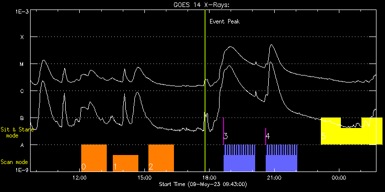 EIS Observation timeline overlay to GOES-Xray curve Code 1" 2" 40" 266" EIS Observations list for this event: STUDY ACRONYM ID DATE OBSERVED DESCRIPTION NOAA# TARGET 0 HOP81_new_study | 86216 | 2023/05/09 12:04:15 | HOP 81 (Polar Monitoring Campaign duri | | Coronal Hole TIMELINE ID DATE OBSERVED FITS FILE XCEN (+W/-E) YCEN (+N/-S) DUR ----------------------------------------------------------------------------------------------------------------- 86216 | 2023/05/09 12:04:15.000 | eis_l0_20230509_120415.fits.gz | -21.24 | 767.87 | 1h9m44s 1 HOP81_new_study | 86217 | 2023/05/09 13:32:44 | HOP 81 (Polar Monitoring Campaign duri | | Coronal Hole TIMELINE ID DATE OBSERVED FITS FILE XCEN (+W/-E) YCEN (+N/-S) DUR ----------------------------------------------------------------------------------------------------------------- 86217 | 2023/05/09 13:32:44.000 | eis_l0_20230509_133244.fits.gz | -20.91 | 767.95 | 1h9m45s 2 HOP81_new_study | 86218 | 2023/05/09 15:10:44 | HOP 81 (Polar Monitoring Campaign duri | | Coronal Hole TIMELINE ID DATE OBSERVED FITS FILE XCEN (+W/-E) YCEN (+N/-S) DUR ----------------------------------------------------------------------------------------------------------------- 86218 | 2023/05/09 15:10:44.000 | eis_l0_20230509_151044.fits.gz | -20.83 | 767.95 | 1h9m45s 3 Alignment_modify_v2 | 86214 | 2023/05/09 18:38:27 | Co-alignment N. Pole | | Quiet Sun TIMELINE ID DATE OBSERVED FITS FILE XCEN (+W/-E) YCEN (+N/-S) DUR ----------------------------------------------------------------------------------------------------------------- 86214 | 2023/05/09 18:38:27.000 | eis_l0_20230509_183827.fits.gz | 0.51 | 752.83 | 1m 86214 | 2023/05/09 18:39:53.000 | eis_l0_20230509_183953.fits.gz | 0.36 | 752.98 | 2m33s 86214 | 2023/05/09 18:43:00.000 | eis_l0_20230509_184300.fits.gz | 0.51 | 752.83 | 2m34s 86214 | 2023/05/09 18:46:08.000 | eis_l0_20230509_184608.fits.gz | 0.43 | 752.83 | 2m34s 86214 | 2023/05/09 18:49:15.000 | eis_l0_20230509_184915.fits.gz | 0.43 | 752.91 | 2m34s 86214 | 2023/05/09 18:52:23.000 | eis_l0_20230509_185223.fits.gz | 0.43 | 752.91 | 2m34s 86214 | 2023/05/09 18:55:30.000 | eis_l0_20230509_185530.fits.gz | 0.43 | 752.83 | 2m34s 86214 | 2023/05/09 18:58:38.000 | eis_l0_20230509_185838.fits.gz | 0.51 | 752.83 | 2m34s 86214 | 2023/05/09 19:01:45.000 | eis_l0_20230509_190145.fits.gz | 0.43 | 752.91 | 2m34s 86214 | 2023/05/09 19:04:53.000 | eis_l0_20230509_190453.fits.gz | 0.43 | 752.91 | 2m34s 86214 | 2023/05/09 19:08:00.000 | eis_l0_20230509_190800.fits.gz | 0.43 | 752.91 | 2m34s 86214 | 2023/05/09 19:11:08.000 | eis_l0_20230509_191108.fits.gz | 0.51 | 752.91 | 2m34s 86214 | 2023/05/09 19:14:15.000 | eis_l0_20230509_191415.fits.gz | 0.43 | 752.91 | 2m34s 86214 | 2023/05/09 19:17:23.000 | eis_l0_20230509_191723.fits.gz | 0.51 | 752.83 | 2m34s 86214 | 2023/05/09 19:20:30.000 | eis_l0_20230509_192030.fits.gz | 0.43 | 752.83 | 2m34s 86214 | 2023/05/09 19:23:38.000 | eis_l0_20230509_192338.fits.gz | 0.43 | 752.91 | 2m34s 86214 | 2023/05/09 19:26:45.000 | eis_l0_20230509_192645.fits.gz | 0.51 | 752.91 | 2m34s 86214 | 2023/05/09 19:29:53.000 | eis_l0_20230509_192953.fits.gz | 0.51 | 752.91 | 2m34s 86214 | 2023/05/09 19:33:00.000 | eis_l0_20230509_193300.fits.gz | 0.51 | 752.83 | 2m34s 86214 | 2023/05/09 19:36:08.000 | eis_l0_20230509_193608.fits.gz | 0.51 | 752.83 | 2m34s 86214 | 2023/05/09 19:39:15.000 | eis_l0_20230509_193915.fits.gz | 0.43 | 752.83 | 2m34s 86214 | 2023/05/09 19:42:23.000 | eis_l0_20230509_194223.fits.gz | 0.43 | 752.83 | 2m34s 86214 | 2023/05/09 19:45:30.000 | eis_l0_20230509_194530.fits.gz | 0.43 | 752.98 | 2m34s 86214 | 2023/05/09 19:48:38.000 | eis_l0_20230509_194838.fits.gz | 0.43 | 753.06 | 2m34s 86214 | 2023/05/09 19:51:45.000 | eis_l0_20230509_195145.fits.gz | 0.51 | 752.98 | 2m34s 86214 | 2023/05/09 19:54:53.000 | eis_l0_20230509_195453.fits.gz | 0.51 | 752.83 | 2m34s 86214 | 2023/05/09 19:58:00.000 | eis_l0_20230509_195800.fits.gz | 0.43 | 752.83 | 2m34s 86214 | 2023/05/09 20:01:08.000 | eis_l0_20230509_200108.fits.gz | 0.43 | 753.06 | 2m34s 86214 | 2023/05/09 20:04:15.000 | eis_l0_20230509_200415.fits.gz | 0.51 | 752.98 | 2m34s 4 Alignment_modify_v2 | 86215 | 2023/05/09 20:35:21 | Co-alignment E. Limb | | Quiet Sun TIMELINE ID DATE OBSERVED FITS FILE XCEN (+W/-E) YCEN (+N/-S) DUR ----------------------------------------------------------------------------------------------------------------- 86215 | 2023/05/09 20:35:21.000 | eis_l0_20230509_203521.fits.gz | -9829.03 | -10169.70 | 1m 86215 | 2023/05/09 20:36:46.000 | eis_l0_20230509_203646.fits.gz | -9858.98 | -10169.70 | 2m34s 86215 | 2023/05/09 20:39:54.000 | eis_l0_20230509_203954.fits.gz | -9858.98 | -10169.70 | 2m34s 86215 | 2023/05/09 20:43:01.000 | eis_l0_20230509_204301.fits.gz | -9858.98 | -10169.70 | 2m34s 86215 | 2023/05/09 20:46:09.000 | eis_l0_20230509_204609.fits.gz | -9858.98 | -10169.70 | 2m34s 86215 | 2023/05/09 20:49:16.000 | eis_l0_20230509_204916.fits.gz | -9858.98 | -10169.70 | 2m34s 86215 | 2023/05/09 20:52:24.000 | eis_l0_20230509_205224.fits.gz | -9858.98 | -10169.70 | 2m34s 86215 | 2023/05/09 20:55:31.000 | eis_l0_20230509_205531.fits.gz | -9858.98 | -10169.70 | 2m34s 86215 | 2023/05/09 20:58:39.000 | eis_l0_20230509_205839.fits.gz | -9858.98 | -10169.70 | 2m34s 86215 | 2023/05/09 21:01:46.000 | eis_l0_20230509_210146.fits.gz | -9858.98 | -10169.70 | 2m34s 86215 | 2023/05/09 21:04:54.000 | eis_l0_20230509_210454.fits.gz | -9858.98 | -10169.70 | 2m33s 86215 | 2023/05/09 21:08:01.000 | eis_l0_20230509_210801.fits.gz | -9858.98 | -10169.70 | 2m34s 86215 | 2023/05/09 21:11:09.000 | eis_l0_20230509_211109.fits.gz | -9858.98 | -10169.70 | 2m33s 86215 | 2023/05/09 21:14:16.000 | eis_l0_20230509_211416.fits.gz | -9858.98 | -10169.70 | 2m34s 86215 | 2023/05/09 21:17:24.000 | eis_l0_20230509_211724.fits.gz | -9858.98 | -10169.70 | 2m34s 86215 | 2023/05/09 21:20:31.000 | eis_l0_20230509_212031.fits.gz | -9858.98 | -10169.70 | 2m34s 86215 | 2023/05/09 21:23:39.000 | eis_l0_2023050