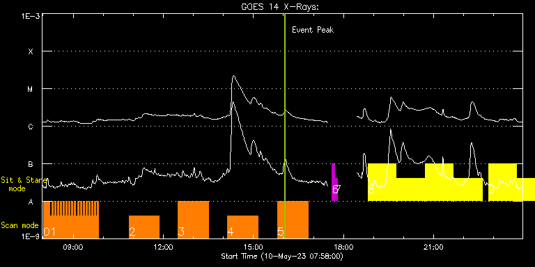 EIS Observation timeline overlay to GOES-Xray curve Code 1" 2" 40" 266" EIS Observations list for this event: STUDY ACRONYM ID DATE OBSERVED DESCRIPTION NOAA# TARGET 0 HH_AR+FLR_RAS_N03 | 86219 | 2023/05/10 08:00:21 | HOP 401 (with SST and IRIS - Dynamics | 3297 | Active Region TIMELINE ID DATE OBSERVED FITS FILE XCEN (+W/-E) YCEN (+N/-S) DUR ----------------------------------------------------------------------------------------------------------------- 86219 | 2023/05/10 08:00:21.000 | eis_l0_20230510_080021.fits.gz | 572.70 | 207.07 | 13m18s 1 HH_Flare_60x152f | 86220 | 2023/05/10 08:14:11 | HOP 401 (with SST and IRIS - Dynamics | | Flare TIMELINE ID DATE OBSERVED FITS FILE XCEN (+W/-E) YCEN (+N/-S) DUR ----------------------------------------------------------------------------------------------------------------- 86220 | 2023/05/10 08:14:11.000 | eis_l0_20230510_081411.fits.gz | 573.92 | 251.07 | 2m48s 86220 | 2023/05/10 08:17:02.000 | eis_l0_20230510_081702.fits.gz | 574.30 | 250.99 | 2m48s 86220 | 2023/05/10 08:19:53.000 | eis_l0_20230510_081953.fits.gz | 574.53 | 251.07 | 2m48s 86220 | 2023/05/10 08:22:44.000 | eis_l0_20230510_082244.fits.gz | 574.84 | 251.07 | 2m48s 86220 | 2023/05/10 08:25:35.000 | eis_l0_20230510_082535.fits.gz | 575.15 | 250.99 | 2m48s 86220 | 2023/05/10 08:28:26.000 | eis_l0_20230510_082826.fits.gz | 575.54 | 251.07 | 2m48s 86220 | 2023/05/10 08:31:17.000 | eis_l0_20230510_083117.fits.gz | 575.85 | 251.07 | 2m48s 86220 | 2023/05/10 08:34:07.000 | eis_l0_20230510_083407.fits.gz | 576.23 | 250.92 | 2m49s 86220 | 2023/05/10 08:36:59.000 | eis_l0_20230510_083659.fits.gz | 576.54 | 250.84 | 2m48s 86220 | 2023/05/10 08:39:50.000 | eis_l0_20230510_083950.fits.gz | 576.85 | 250.92 | 2m48s 86220 | 2023/05/10 08:42:40.000 | eis_l0_20230510_084240.fits.gz | 577.08 | 250.99 | 2m49s 86220 | 2023/05/10 08:45:32.000 | eis_l0_20230510_084532.fits.gz | 577.47 | 250.99 | 2m47s 86220 | 2023/05/10 08:48:22.000 | eis_l0_20230510_084822.fits.gz | 577.78 | 250.92 | 2m48s 86220 | 2023/05/10 08:51:12.000 | eis_l0_20230510_085112.fits.gz | 578.01 | 250.76 | 2m48s 86220 | 2023/05/10 08:54:03.000 | eis_l0_20230510_085403.fits.gz | 578.40 | 250.76 | 2m48s 86220 | 2023/05/10 08:56:54.000 | eis_l0_20230510_085654.fits.gz | 578.71 | 250.84 | 2m47s 86220 | 2023/05/10 08:59:44.000 | eis_l0_20230510_085944.fits.gz | 579.02 | 250.68 | 2m48s 86220 | 2023/05/10 09:02:35.000 | eis_l0_20230510_090235.fits.gz | 579.32 | 250.84 | 2m48s 86220 | 2023/05/10 09:05:26.000 | eis_l0_20230510_090526.fits.gz | 579.63 | 250.84 | 2m48s 86220 | 2023/05/10 09:08:17.000 | eis_l0_20230510_090817.fits.gz | 580.10 | 250.84 | 2m47s 86220 | 2023/05/10 09:11:07.000 | eis_l0_20230510_091107.fits.gz | 580.41 | 250.76 | 2m48s 86220 | 2023/05/10 09:13:58.000 | eis_l0_20230510_091358.fits.gz | 580.71 | 250.68 | 2m48s 86220 | 2023/05/10 09:16:48.000 | eis_l0_20230510_091648.fits.gz | 581.10 | 250.61 | 2m49s 86220 | 2023/05/10 09:19:39.000 | eis_l0_20230510_091939.fits.gz | 581.26 | 250.76 | 2m48s 86220 | 2023/05/10 09:22:30.000 | eis_l0_20230510_092230.fits.gz | 581.64 | 250.68 | 2m47s 86220 | 2023/05/10 09:25:20.000 | eis_l0_20230510_092520.fits.gz | 581.95 | 250.61 | 2m49s 86220 | 2023/05/10 09:28:11.000 | eis_l0_20230510_092811.fits.gz | 582.26 | 250.61 | 2m48s 86220 | 2023/05/10 09:31:02.000 | eis_l0_20230510_093102.fits.gz | 582.57 | 250.53 | 2m48s 86220 | 2023/05/10 09:33:53.000 | eis_l0_20230510_093353.fits.gz | 582.95 | 250.53 | 2m48s 86220 | 2023/05/10 09:36:43.000 | eis_l0_20230510_093643.fits.gz | 583.19 | 250.53 | 2m48s 86220 | 2023/05/10 09:39:34.000 | eis_l0_20230510_093934.fits.gz | 583.49 | 250.61 | 2m48s 86220 | 2023/05/10 09:42:25.000 | eis_l0_20230510_094225.fits.gz | 583.73 | 250.61 | 2m48s 86220 | 2023/05/10 09:45:16.000 | eis_l0_20230510_094516.fits.gz | 584.19 | 250.45 | 2m48s 86220 | 2023/05/10 09:48:07.000 | eis_l0_20230510_094807.fits.gz | 584.42 | 250.53 | 2m48s 2 HPW021VEL260x512v2 | 86226 | 2023/05/10 10:51:14 | Active Region Studies | 3294 | Active Region TIMELINE ID DATE OBSERVED FITS FILE XCEN (+W/-E) YCEN (+N/-S) DUR ----------------------------------------------------------------------------------------------------------------- 86226 | 2023/05/10 10:51:14.000 | eis_l0_20230510_105114.fits.gz | 591.78 | 70.14 | 1h0m44s 3 HPW021VEL260x512v2 | 86227 | 2023/05/10 12:29:14 | Active Region Studies | 3294 | Active Region TIMELINE ID DATE OBSERVED FITS FILE XCEN (+W/-E) YCEN (+N/-S) DUR ----------------------------------------------------------------------------------------------------------------- 86227 | 2023/05/10 12:29:14.000 | eis_l0_20230510_122914.fits.gz | 602.59 | 67.45 | 1h0m44s 4 Atlas_60 | 86228 | 2023/05/10 14:07:44 | Active Region Studies | | Quiet Sun TIMELINE ID DATE OBSERVED FITS FILE XCEN (+W/-E) YCEN (+N/-S) DUR ----------------------------------------------------------------------------------------------------------------- 86228 | 2023/05/10 14:07:44.000 | eis_l0_20230510_140744.fits.gz | 613.25 | 242.75 | 1h1m39s 5 HPW021VEL260x512v2 | 86229 | 2023/05/10 15:48:13 | Active Region Studies | 3294 | Active Region TIMELINE ID DATE OBSERVED FITS FILE XCEN (+W/-E) YCEN (+N/-S) DUR ----------------------------------------------------------------------------------------------------------------- 86229 | 2023/05/10 15:48:13.000 | eis_l0_20230510_154813.fits.gz | 624.24 | 65.98 | 1h0m45s 6 regcal081 | 86235 | 2023/05/10 17:37:11 | Dark exposures, CCD bottom rows (150s | | Engineering TIMELINE ID DATE OBSERVED FITS FILE XCEN (+W/-E) YCEN (+N/-S) DUR ----------------------------------------------------------------------------------------------------------------- 86235 | 2023/05/10 17:37:11.000 | eis_l0_20230510_173711.fits.gz | 649.99 | -602.79 | 5m2s 7 regcal082 | 86236 | 2023/05/10 17:42:40 | Dark exposures, top CCD rows (150s exp | | Engineering TIMELINE ID DATE OBSERVED FITS FILE XCEN (+W/-E) YCEN (+N/-S) DUR --------------------------------------------------------------------------------