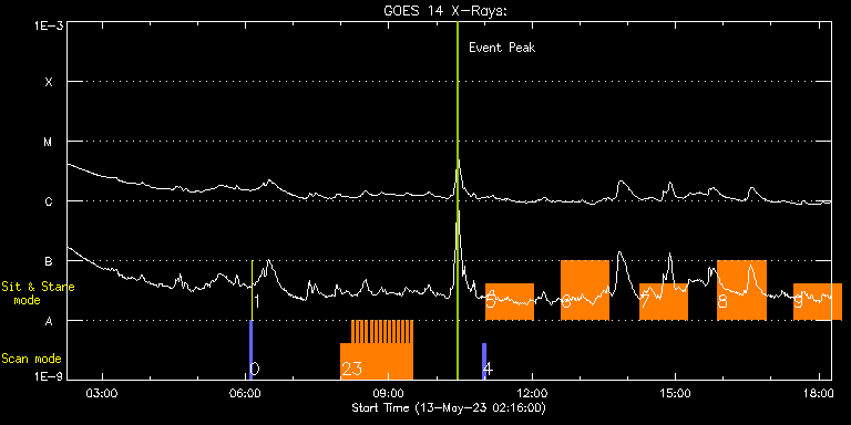 EIS Observation timeline overlay to GOES-Xray curve Code 1" 2" 40" 266" EIS Observations list for this event: STUDY ACRONYM ID DATE OBSERVED DESCRIPTION NOAA# TARGET 0 PRY_slot_contextLITE | 86243 | 2023/05/13 06:05:19 | Pointing Monitoring | | Active Region TIMELINE ID DATE OBSERVED FITS FILE XCEN (+W/-E) YCEN (+N/-S) DUR ----------------------------------------------------------------------------------------------------------------- 86243 | 2023/05/13 06:05:19.000 | eis_l0_20230513_060519.fits.gz | 0.76 | -194.92 | 2m56s 1 XRT_synop_AIA | 86244 | 2023/05/13 06:08:34 | Pointing Monitoring | | Quiet Sun TIMELINE ID DATE OBSERVED FITS FILE XCEN (+W/-E) YCEN (+N/-S) DUR ----------------------------------------------------------------------------------------------------------------- 86244 | 2023/05/13 06:08:34.000 | eis_l0_20230513_060834.fits.gz | 0.43 | -206.92 | 10s 2 HH_AR+FLR_RAS_N03 | 86250 | 2023/05/13 08:00:20 | HOP 401 (with SST and IRIS - Dynamics | 3297 | Active Region TIMELINE ID DATE OBSERVED FITS FILE XCEN (+W/-E) YCEN (+N/-S) DUR ----------------------------------------------------------------------------------------------------------------- 86250 | 2023/05/13 08:00:20.000 | eis_l0_20230513_080020.fits.gz | 796.09 | 92.10 | 13m18s 3 HH_Flare_60x152f | 86251 | 2023/05/13 08:13:43 | HOP 401 (with SST and IRIS - Dynamics | | Flare TIMELINE ID DATE OBSERVED FITS FILE XCEN (+W/-E) YCEN (+N/-S) DUR ----------------------------------------------------------------------------------------------------------------- 86251 | 2023/05/13 08:13:43.000 | eis_l0_20230513_081343.fits.gz | 797.09 | 135.94 | 2m48s 86251 | 2023/05/13 08:16:34.000 | eis_l0_20230513_081634.fits.gz | 797.24 | 135.94 | 2m47s 86251 | 2023/05/13 08:19:24.000 | eis_l0_20230513_081924.fits.gz | 797.48 | 136.02 | 2m48s 86251 | 2023/05/13 08:22:15.000 | eis_l0_20230513_082215.fits.gz | 797.71 | 135.94 | 2m49s 86251 | 2023/05/13 08:25:07.000 | eis_l0_20230513_082507.fits.gz | 797.94 | 135.94 | 2m48s 86251 | 2023/05/13 08:27:58.000 | eis_l0_20230513_082758.fits.gz | 798.09 | 135.87 | 2m49s 86251 | 2023/05/13 08:30:50.000 | eis_l0_20230513_083050.fits.gz | 798.33 | 135.87 | 2m48s 86251 | 2023/05/13 08:33:40.000 | eis_l0_20230513_083340.fits.gz | 798.56 | 135.79 | 2m49s 86251 | 2023/05/13 08:36:31.000 | eis_l0_20230513_083631.fits.gz | 798.79 | 135.87 | 2m48s 86251 | 2023/05/13 08:39:22.000 | eis_l0_20230513_083922.fits.gz | 799.02 | 135.79 | 2m47s 86251 | 2023/05/13 08:42:12.000 | eis_l0_20230513_084212.fits.gz | 799.25 | 135.79 | 2m48s 86251 | 2023/05/13 08:45:03.000 | eis_l0_20230513_084503.fits.gz | 799.41 | 135.79 | 2m48s 86251 | 2023/05/13 08:47:54.000 | eis_l0_20230513_084754.fits.gz | 799.64 | 135.71 | 2m47s 86251 | 2023/05/13 08:50:44.000 | eis_l0_20230513_085044.fits.gz | 799.79 | 135.87 | 2m49s 86251 | 2023/05/13 08:53:35.000 | eis_l0_20230513_085335.fits.gz | 800.10 | 135.71 | 2m49s 86251 | 2023/05/13 08:56:27.000 | eis_l0_20230513_085627.fits.gz | 800.34 | 135.48 | 2m47s 86251 | 2023/05/13 08:59:17.000 | eis_l0_20230513_085917.fits.gz | 800.49 | 135.63 | 2m48s 86251 | 2023/05/13 09:02:08.000 | eis_l0_20230513_090208.fits.gz | 800.64 | 135.63 | 2m48s 86251 | 2023/05/13 09:04:59.000 | eis_l0_20230513_090459.fits.gz | 800.80 | 135.56 | 2m48s 86251 | 2023/05/13 09:07:50.000 | eis_l0_20230513_090750.fits.gz | 801.03 | 135.56 | 2m48s 86251 | 2023/05/13 09:10:41.000 | eis_l0_20230513_091041.fits.gz | 801.26 | 135.63 | 2m48s 86251 | 2023/05/13 09:13:31.000 | eis_l0_20230513_091331.fits.gz | 801.49 | 135.63 | 2m48s 86251 | 2023/05/13 09:16:22.000 | eis_l0_20230513_091622.fits.gz | 801.73 | 135.63 | 2m48s 86251 | 2023/05/13 09:19:13.000 | eis_l0_20230513_091913.fits.gz | 801.96 | 135.56 | 2m48s 86251 | 2023/05/13 09:22:03.000 | eis_l0_20230513_092203.fits.gz | 802.11 | 135.48 | 2m48s 86251 | 2023/05/13 09:24:54.000 | eis_l0_20230513_092454.fits.gz | 802.42 | 135.40 | 2m49s 86251 | 2023/05/13 09:27:46.000 | eis_l0_20230513_092746.fits.gz | 802.58 | 135.40 | 2m47s 4 PRY_slot_contextLITE | 86289 | 2023/05/13 10:58:20 | Context images for flare sit-and-stare | 3294 | Active Region TIMELINE ID DATE OBSERVED FITS FILE XCEN (+W/-E) YCEN (+N/-S) DUR ----------------------------------------------------------------------------------------------------------------- 86289 | 2023/05/13 10:58:20.000 | eis_l0_20230513_105820.fits.gz | 887.05 | 66.93 | 2m57s 5 Flare_SNS_v2 | 86290 | 2023/05/13 11:01:42 | Sit-and-stare off limb flare observati | | Flare TIMELINE ID DATE OBSERVED FITS FILE XCEN (+W/-E) YCEN (+N/-S) DUR ----------------------------------------------------------------------------------------------------------------- 86290 | 2023/05/13 11:01:42.000 | eis_l0_20230513_110142.fits.gz | 981.41 | 334.92 | 1h0m20s 6 Flare_SNS_v2 | 86291 | 2023/05/13 12:36:14 | Sit-and-stare off limb flare observati | | Flare TIMELINE ID DATE OBSERVED FITS FILE XCEN (+W/-E) YCEN (+N/-S) DUR ----------------------------------------------------------------------------------------------------------------- 86291 | 2023/05/13 12:36:14.000 | eis_l0_20230513_123614.fits.gz | 981.66 | 334.92 | 1h0m20s 7 Flare_SNS_v2 | 86292 | 2023/05/13 14:14:44 | Sit-and-stare off limb flare observati | | Flare TIMELINE ID DATE OBSERVED FITS FILE XCEN (+W/-E) YCEN (+N/-S) DUR ----------------------------------------------------------------------------------------------------------------- 86292 | 2023/05/13 14:14:44.000 | eis_l0_20230513_141444.fits.gz | 981.66 | 335.00 | 1h0m20s 8 Flare_SNS_v2 | 86293 | 2023/05/13 15:53:14 | Sit-and-stare off limb flare observati | | Flare TIMELINE ID DATE OBSERVED FITS FILE XCEN (+W/-E) YCEN (+N/-S) DUR ----------------------------------------------------------------------------------------------------------------- 86293 | 2023/05/13 15:53:14.000 | eis_l0_20230513_155314.fits.gz | 981.66 | 335.00 | 1h0m20s 9 Flare_SNS_v2 | 86294 | 2023/05/13 17:28:14 | Sit-and-stare off limb flare observati | | Flare TIMELINE ID DATE OBSERVED FITS FILE XCEN (
