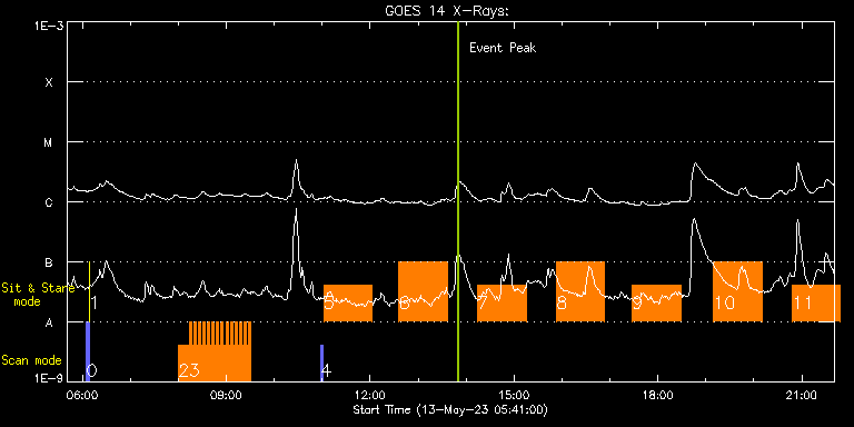 EIS Observation timeline overlay to GOES-Xray curve Code 1" 2" 40" 266" EIS Observations list for this event: STUDY ACRONYM ID DATE OBSERVED DESCRIPTION NOAA# TARGET 0 PRY_slot_contextLITE | 86243 | 2023/05/13 06:05:19 | Pointing Monitoring | | Active Region TIMELINE ID DATE OBSERVED FITS FILE XCEN (+W/-E) YCEN (+N/-S) DUR ----------------------------------------------------------------------------------------------------------------- 86243 | 2023/05/13 06:05:19.000 | eis_l0_20230513_060519.fits.gz | 0.76 | -194.92 | 2m56s 1 XRT_synop_AIA | 86244 | 2023/05/13 06:08:34 | Pointing Monitoring | | Quiet Sun TIMELINE ID DATE OBSERVED FITS FILE XCEN (+W/-E) YCEN (+N/-S) DUR ----------------------------------------------------------------------------------------------------------------- 86244 | 2023/05/13 06:08:34.000 | eis_l0_20230513_060834.fits.gz | 0.43 | -206.92 | 10s 2 HH_AR+FLR_RAS_N03 | 86250 | 2023/05/13 08:00:20 | HOP 401 (with SST and IRIS - Dynamics | 3297 | Active Region TIMELINE ID DATE OBSERVED FITS FILE XCEN (+W/-E) YCEN (+N/-S) DUR ----------------------------------------------------------------------------------------------------------------- 86250 | 2023/05/13 08:00:20.000 | eis_l0_20230513_080020.fits.gz | 796.09 | 92.10 | 13m18s 3 HH_Flare_60x152f | 86251 | 2023/05/13 08:13:43 | HOP 401 (with SST and IRIS - Dynamics | | Flare TIMELINE ID DATE OBSERVED FITS FILE XCEN (+W/-E) YCEN (+N/-S) DUR ----------------------------------------------------------------------------------------------------------------- 86251 | 2023/05/13 08:13:43.000 | eis_l0_20230513_081343.fits.gz | 797.09 | 135.94 | 2m48s 86251 | 2023/05/13 08:16:34.000 | eis_l0_20230513_081634.fits.gz | 797.24 | 135.94 | 2m47s 86251 | 2023/05/13 08:19:24.000 | eis_l0_20230513_081924.fits.gz | 797.48 | 136.02 | 2m48s 86251 | 2023/05/13 08:22:15.000 | eis_l0_20230513_082215.fits.gz | 797.71 | 135.94 | 2m49s 86251 | 2023/05/13 08:25:07.000 | eis_l0_20230513_082507.fits.gz | 797.94 | 135.94 | 2m48s 86251 | 2023/05/13 08:27:58.000 | eis_l0_20230513_082758.fits.gz | 798.09 | 135.87 | 2m49s 86251 | 2023/05/13 08:30:50.000 | eis_l0_20230513_083050.fits.gz | 798.33 | 135.87 | 2m48s 86251 | 2023/05/13 08:33:40.000 | eis_l0_20230513_083340.fits.gz | 798.56 | 135.79 | 2m49s 86251 | 2023/05/13 08:36:31.000 | eis_l0_20230513_083631.fits.gz | 798.79 | 135.87 | 2m48s 86251 | 2023/05/13 08:39:22.000 | eis_l0_20230513_083922.fits.gz | 799.02 | 135.79 | 2m47s 86251 | 2023/05/13 08:42:12.000 | eis_l0_20230513_084212.fits.gz | 799.25 | 135.79 | 2m48s 86251 | 2023/05/13 08:45:03.000 | eis_l0_20230513_084503.fits.gz | 799.41 | 135.79 | 2m48s 86251 | 2023/05/13 08:47:54.000 | eis_l0_20230513_084754.fits.gz | 799.64 | 135.71 | 2m47s 86251 | 2023/05/13 08:50:44.000 | eis_l0_20230513_085044.fits.gz | 799.79 | 135.87 | 2m49s 86251 | 2023/05/13 08:53:35.000 | eis_l0_20230513_085335.fits.gz | 800.10 | 135.71 | 2m49s 86251 | 2023/05/13 08:56:27.000 | eis_l0_20230513_085627.fits.gz | 800.34 | 135.48 | 2m47s 86251 | 2023/05/13 08:59:17.000 | eis_l0_20230513_085917.fits.gz | 800.49 | 135.63 | 2m48s 86251 | 2023/05/13 09:02:08.000 | eis_l0_20230513_090208.fits.gz | 800.64 | 135.63 | 2m48s 86251 | 2023/05/13 09:04:59.000 | eis_l0_20230513_090459.fits.gz | 800.80 | 135.56 | 2m48s 86251 | 2023/05/13 09:07:50.000 | eis_l0_20230513_090750.fits.gz | 801.03 | 135.56 | 2m48s 86251 | 2023/05/13 09:10:41.000 | eis_l0_20230513_091041.fits.gz | 801.26 | 135.63 | 2m48s 86251 | 2023/05/13 09:13:31.000 | eis_l0_20230513_091331.fits.gz | 801.49 | 135.63 | 2m48s 86251 | 2023/05/13 09:16:22.000 | eis_l0_20230513_091622.fits.gz | 801.73 | 135.63 | 2m48s 86251 | 2023/05/13 09:19:13.000 | eis_l0_20230513_091913.fits.gz | 801.96 | 135.56 | 2m48s 86251 | 2023/05/13 09:22:03.000 | eis_l0_20230513_092203.fits.gz | 802.11 | 135.48 | 2m48s 86251 | 2023/05/13 09:24:54.000 | eis_l0_20230513_092454.fits.gz | 802.42 | 135.40 | 2m49s 86251 | 2023/05/13 09:27:46.000 | eis_l0_20230513_092746.fits.gz | 802.58 | 135.40 | 2m47s 4 PRY_slot_contextLITE | 86289 | 2023/05/13 10:58:20 | Context images for flare sit-and-stare | 3294 | Active Region TIMELINE ID DATE OBSERVED FITS FILE XCEN (+W/-E) YCEN (+N/-S) DUR ----------------------------------------------------------------------------------------------------------------- 86289 | 2023/05/13 10:58:20.000 | eis_l0_20230513_105820.fits.gz | 887.05 | 66.93 | 2m57s 5 Flare_SNS_v2 | 86290 | 2023/05/13 11:01:42 | Sit-and-stare off limb flare observati | | Flare TIMELINE ID DATE OBSERVED FITS FILE XCEN (+W/-E) YCEN (+N/-S) DUR ----------------------------------------------------------------------------------------------------------------- 86290 | 2023/05/13 11:01:42.000 | eis_l0_20230513_110142.fits.gz | 981.41 | 334.92 | 1h0m20s 6 Flare_SNS_v2 | 86291 | 2023/05/13 12:36:14 | Sit-and-stare off limb flare observati | | Flare TIMELINE ID DATE OBSERVED FITS FILE XCEN (+W/-E) YCEN (+N/-S) DUR ----------------------------------------------------------------------------------------------------------------- 86291 | 2023/05/13 12:36:14.000 | eis_l0_20230513_123614.fits.gz | 981.66 | 334.92 | 1h0m20s 7 Flare_SNS_v2 | 86292 | 2023/05/13 14:14:44 | Sit-and-stare off limb flare observati | | Flare TIMELINE ID DATE OBSERVED FITS FILE XCEN (+W/-E) YCEN (+N/-S) DUR ----------------------------------------------------------------------------------------------------------------- 86292 | 2023/05/13 14:14:44.000 | eis_l0_20230513_141444.fits.gz | 981.66 | 335.00 | 1h0m20s 8 Flare_SNS_v2 | 86293 | 2023/05/13 15:53:14 | Sit-and-stare off limb flare observati | | Flare TIMELINE ID DATE OBSERVED FITS FILE XCEN (+W/-E) YCEN (+N/-S) DUR ----------------------------------------------------------------------------------------------------------------- 86293 | 2023/05/13 15:53:14.000 | eis_l0_20230513_155314.fits.gz | 981.66 | 335.00 | 1h0m20s 9 Flare_SNS_v2 | 86294 | 2023/05/13 17:28:14 | Sit-and-stare off limb flare observati | | Flare TIMELINE ID DATE OBSERVED FITS FILE XCEN (