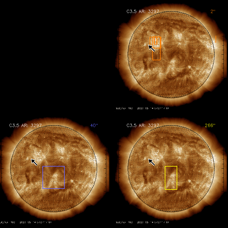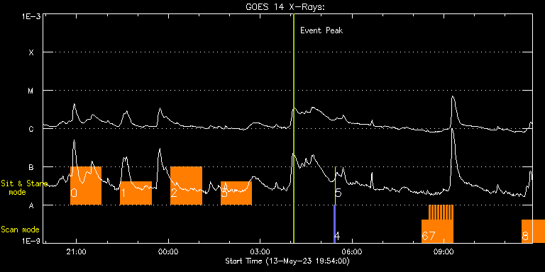 EIS Observation timeline overlay to GOES-Xray curve Code 1" 2" 40" 266" EIS Observations list for this event: STUDY ACRONYM ID DATE OBSERVED DESCRIPTION NOAA# TARGET 0 Flare_SNS_v2 | 86296 | 2023/05/13 20:48:14 | Sit-and-stare off limb flare observati | | Flare TIMELINE ID DATE OBSERVED FITS FILE XCEN (+W/-E) YCEN (+N/-S) DUR ----------------------------------------------------------------------------------------------------------------- 86296 | 2023/05/13 20:48:14.000 | eis_l0_20230513_204814.fits.gz | 981.66 | 335.00 | 1h0m20s 1 Flare_SNS_v2 | 86297 | 2023/05/13 22:26:14 | Sit-and-stare off limb flare observati | | Flare TIMELINE ID DATE OBSERVED FITS FILE XCEN (+W/-E) YCEN (+N/-S) DUR ----------------------------------------------------------------------------------------------------------------- 86297 | 2023/05/13 22:26:14.000 | eis_l0_20230513_222614.fits.gz | 981.66 | 335.00 | 1h0m20s 2 Flare_SNS_v2 | 86298 | 2023/05/14 00:04:44 | Sit-and-stare off limb flare observati | | Flare TIMELINE ID DATE OBSERVED FITS FILE XCEN (+W/-E) YCEN (+N/-S) DUR ----------------------------------------------------------------------------------------------------------------- 86298 | 2023/05/14 00:04:44.000 | eis_l0_20230514_000444.fits.gz | 981.66 | 335.00 | 1h0m20s 3 Flare_SNS_v2 | 86299 | 2023/05/14 01:43:14 | Sit-and-stare off limb flare observati | | Flare TIMELINE ID DATE OBSERVED FITS FILE XCEN (+W/-E) YCEN (+N/-S) DUR ----------------------------------------------------------------------------------------------------------------- 86299 | 2023/05/14 01:43:14.000 | eis_l0_20230514_014314.fits.gz | 981.66 | 334.92 | 1h0m20s 4 PRY_slot_contextLITE | 86268 | 2023/05/14 05:23:50 | Pointing Monitoring | | Active Region TIMELINE ID DATE OBSERVED FITS FILE XCEN (+W/-E) YCEN (+N/-S) DUR ----------------------------------------------------------------------------------------------------------------- 86268 | 2023/05/14 05:23:50.000 | eis_l0_20230514_052350.fits.gz | 0.76 | -195.08 | 2m56s 5 XRT_synop_AIA | 86269 | 2023/05/14 05:27:05 | Pointing Monitoring | | Quiet Sun TIMELINE ID DATE OBSERVED FITS FILE XCEN (+W/-E) YCEN (+N/-S) DUR ----------------------------------------------------------------------------------------------------------------- 86269 | 2023/05/14 05:27:05.000 | eis_l0_20230514_052705.fits.gz | 0.36 | -206.92 | 10s 6 HH_AR+FLR_RAS_N03 | 86281 | 2023/05/14 08:16:21 | HOP 401 (with SST and IRIS - Dynamics | | Active Region TIMELINE ID DATE OBSERVED FITS FILE XCEN (+W/-E) YCEN (+N/-S) DUR ----------------------------------------------------------------------------------------------------------------- 86281 | 2023/05/14 08:16:21.000 | eis_l0_20230514_081621.fits.gz | -342.54 | 258.26 | 13m18s 7 HH_Flare_60x152f | 86282 | 2023/05/14 08:30:11 | HOP 401 (with SST and IRIS - Dynamics | | Flare TIMELINE ID DATE OBSERVED FITS FILE XCEN (+W/-E) YCEN (+N/-S) DUR ----------------------------------------------------------------------------------------------------------------- 86282 | 2023/05/14 08:30:11.000 | eis_l0_20230514_083011.fits.gz | -340.69 | 302.18 | 2m48s 86282 | 2023/05/14 08:33:02.000 | eis_l0_20230514_083302.fits.gz | -340.38 | 302.26 | 2m48s 86282 | 2023/05/14 08:35:53.000 | eis_l0_20230514_083553.fits.gz | -339.99 | 302.26 | 2m48s 86282 | 2023/05/14 08:38:44.000 | eis_l0_20230514_083844.fits.gz | -339.61 | 302.26 | 2m48s 86282 | 2023/05/14 08:41:35.000 | eis_l0_20230514_084135.fits.gz | -339.22 | 302.34 | 2m48s 86282 | 2023/05/14 08:44:25.000 | eis_l0_20230514_084425.fits.gz | -338.91 | 302.26 | 2m48s 86282 | 2023/05/14 08:47:16.000 | eis_l0_20230514_084716.fits.gz | -338.45 | 302.26 | 2m47s 86282 | 2023/05/14 08:50:06.000 | eis_l0_20230514_085006.fits.gz | -338.14 | 302.34 | 2m48s 86282 | 2023/05/14 08:52:57.000 | eis_l0_20230514_085257.fits.gz | -337.75 | 302.34 | 2m48s 86282 | 2023/05/14 08:55:47.000 | eis_l0_20230514_085547.fits.gz | -337.21 | 302.18 | 2m48s 86282 | 2023/05/14 08:58:38.000 | eis_l0_20230514_085838.fits.gz | -336.90 | 302.26 | 2m48s 86282 | 2023/05/14 09:01:29.000 | eis_l0_20230514_090129.fits.gz | -336.52 | 302.26 | 2m47s 86282 | 2023/05/14 09:04:19.000 | eis_l0_20230514_090419.fits.gz | -336.21 | 302.26 | 2m48s 86282 | 2023/05/14 09:07:10.000 | eis_l0_20230514_090710.fits.gz | -335.82 | 302.34 | 2m48s 86282 | 2023/05/14 09:10:01.000 | eis_l0_20230514_091001.fits.gz | -335.36 | 302.26 | 2m48s 86282 | 2023/05/14 09:12:52.000 | eis_l0_20230514_091252.fits.gz | -334.90 | 302.34 | 2m48s 86282 | 2023/05/14 09:15:43.000 | eis_l0_20230514_091543.fits.gz | -334.59 | 302.26 | 2m48s 8 HPW021VEL260x512v2 | 86300 | 2023/05/14 11:33:14 | Active region studies - diagnostic ras | | Active Region TIMELINE ID DATE OBSERVED FITS FILE XCEN (+W/-E) YCEN (+N/-S) DUR ----------------------------------------------------------------------------------------------------------------- 86300 | 2023/05/14 11:33:14.000 | eis_l0_20230514_113314.fits.gz | -318.72 | 132.57 | 1h0m44s : Check study information : Download file : View thumbnails For this event, also check for:
