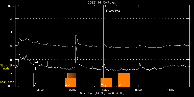 EIS Observation timeline overlay to GOES-Xray curve Code 1" 2" 40" 266" EIS Observations list for this event: STUDY ACRONYM ID DATE OBSERVED DESCRIPTION NOAA# TARGET 0 PRY_slot_contextLITE | 86268 | 2023/05/14 05:23:50 | Pointing Monitoring | | Active Region TIMELINE ID DATE OBSERVED FITS FILE XCEN (+W/-E) YCEN (+N/-S) DUR ----------------------------------------------------------------------------------------------------------------- 86268 | 2023/05/14 05:23:50.000 | eis_l0_20230514_052350.fits.gz | 0.76 | -195.08 | 2m56s 1 XRT_synop_AIA | 86269 | 2023/05/14 05:27:05 | Pointing Monitoring | | Quiet Sun TIMELINE ID DATE OBSERVED FITS FILE XCEN (+W/-E) YCEN (+N/-S) DUR ----------------------------------------------------------------------------------------------------------------- 86269 | 2023/05/14 05:27:05.000 | eis_l0_20230514_052705.fits.gz | 0.36 | -206.92 | 10s 2 HH_AR+FLR_RAS_N03 | 86281 | 2023/05/14 08:16:21 | HOP 401 (with SST and IRIS - Dynamics | | Active Region TIMELINE ID DATE OBSERVED FITS FILE XCEN (+W/-E) YCEN (+N/-S) DUR ----------------------------------------------------------------------------------------------------------------- 86281 | 2023/05/14 08:16:21.000 | eis_l0_20230514_081621.fits.gz | -342.54 | 258.26 | 13m18s 3 HH_Flare_60x152f | 86282 | 2023/05/14 08:30:11 | HOP 401 (with SST and IRIS - Dynamics | | Flare TIMELINE ID DATE OBSERVED FITS FILE XCEN (+W/-E) YCEN (+N/-S) DUR ----------------------------------------------------------------------------------------------------------------- 86282 | 2023/05/14 08:30:11.000 | eis_l0_20230514_083011.fits.gz | -340.69 | 302.18 | 2m48s 86282 | 2023/05/14 08:33:02.000 | eis_l0_20230514_083302.fits.gz | -340.38 | 302.26 | 2m48s 86282 | 2023/05/14 08:35:53.000 | eis_l0_20230514_083553.fits.gz | -339.99 | 302.26 | 2m48s 86282 | 2023/05/14 08:38:44.000 | eis_l0_20230514_083844.fits.gz | -339.61 | 302.26 | 2m48s 86282 | 2023/05/14 08:41:35.000 | eis_l0_20230514_084135.fits.gz | -339.22 | 302.34 | 2m48s 86282 | 2023/05/14 08:44:25.000 | eis_l0_20230514_084425.fits.gz | -338.91 | 302.26 | 2m48s 86282 | 2023/05/14 08:47:16.000 | eis_l0_20230514_084716.fits.gz | -338.45 | 302.26 | 2m47s 86282 | 2023/05/14 08:50:06.000 | eis_l0_20230514_085006.fits.gz | -338.14 | 302.34 | 2m48s 86282 | 2023/05/14 08:52:57.000 | eis_l0_20230514_085257.fits.gz | -337.75 | 302.34 | 2m48s 86282 | 2023/05/14 08:55:47.000 | eis_l0_20230514_085547.fits.gz | -337.21 | 302.18 | 2m48s 86282 | 2023/05/14 08:58:38.000 | eis_l0_20230514_085838.fits.gz | -336.90 | 302.26 | 2m48s 86282 | 2023/05/14 09:01:29.000 | eis_l0_20230514_090129.fits.gz | -336.52 | 302.26 | 2m47s 86282 | 2023/05/14 09:04:19.000 | eis_l0_20230514_090419.fits.gz | -336.21 | 302.26 | 2m48s 86282 | 2023/05/14 09:07:10.000 | eis_l0_20230514_090710.fits.gz | -335.82 | 302.34 | 2m48s 86282 | 2023/05/14 09:10:01.000 | eis_l0_20230514_091001.fits.gz | -335.36 | 302.26 | 2m48s 86282 | 2023/05/14 09:12:52.000 | eis_l0_20230514_091252.fits.gz | -334.90 | 302.34 | 2m48s 86282 | 2023/05/14 09:15:43.000 | eis_l0_20230514_091543.fits.gz | -334.59 | 302.26 | 2m48s 4 HPW021VEL260x512v2 | 86300 | 2023/05/14 11:33:14 | Active region studies - diagnostic ras | | Active Region TIMELINE ID DATE OBSERVED FITS FILE XCEN (+W/-E) YCEN (+N/-S) DUR ----------------------------------------------------------------------------------------------------------------- 86300 | 2023/05/14 11:33:14.000 | eis_l0_20230514_113314.fits.gz | -318.72 | 132.57 | 1h0m44s 5 Atlas_60 | 86301 | 2023/05/14 13:11:14 | Active region studies - spectral atlas | | Quiet Sun TIMELINE ID DATE OBSERVED FITS FILE XCEN (+W/-E) YCEN (+N/-S) DUR ----------------------------------------------------------------------------------------------------------------- 86301 | 2023/05/14 13:11:14.000 | eis_l0_20230514_131114.fits.gz | -305.35 | 308.64 | 1h1m39s : Check study information : Download file : View thumbnails For this event, also check for:
