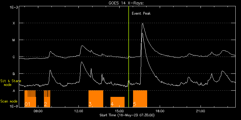 EIS Observation timeline overlay to GOES-Xray curve Code 1" 2" 40" 266" EIS Observations list for this event: STUDY ACRONYM ID DATE OBSERVED DESCRIPTION NOAA# TARGET 0 HH_AR+FLR_RAS_N03 | 86285 | 2023/05/16 08:00:19 | HOP 401 (with SST and IRIS - Dynamics | 3308 | Active Region TIMELINE ID DATE OBSERVED FITS FILE XCEN (+W/-E) YCEN (+N/-S) DUR ----------------------------------------------------------------------------------------------------------------- 86285 | 2023/05/16 08:00:19.000 | eis_l0_20230516_080019.fits.gz | 62.39 | 257.64 | 13m18s 1 HH_Flare_60x152f | 86286 | 2023/05/16 08:13:42 | HOP 401 (with SST and IRIS - Dynamics | | Flare TIMELINE ID DATE OBSERVED FITS FILE XCEN (+W/-E) YCEN (+N/-S) DUR ----------------------------------------------------------------------------------------------------------------- 86286 | 2023/05/16 08:13:42.000 | eis_l0_20230516_081342.fits.gz | 64.32 | 301.56 | 2m48s 86286 | 2023/05/16 08:16:33.000 | eis_l0_20230516_081633.fits.gz | 64.71 | 301.49 | 2m49s 86286 | 2023/05/16 08:19:24.000 | eis_l0_20230516_081924.fits.gz | 65.09 | 301.56 | 2m49s 86286 | 2023/05/16 08:22:16.000 | eis_l0_20230516_082216.fits.gz | 65.56 | 301.56 | 2m48s 86286 | 2023/05/16 08:25:06.000 | eis_l0_20230516_082506.fits.gz | 65.94 | 301.56 | 2m49s 86286 | 2023/05/16 08:27:58.000 | eis_l0_20230516_082758.fits.gz | 66.41 | 301.56 | 2m47s 86286 | 2023/05/16 08:30:48.000 | eis_l0_20230516_083048.fits.gz | 66.79 | 301.49 | 2m48s 86286 | 2023/05/16 08:33:39.000 | eis_l0_20230516_083339.fits.gz | 67.18 | 301.49 | 2m48s 86286 | 2023/05/16 08:36:30.000 | eis_l0_20230516_083630.fits.gz | 67.64 | 301.41 | 2m47s 86286 | 2023/05/16 08:39:20.000 | eis_l0_20230516_083920.fits.gz | 67.95 | 301.49 | 2m48s 86286 | 2023/05/16 08:42:11.000 | eis_l0_20230516_084211.fits.gz | 68.49 | 301.49 | 2m48s 86286 | 2023/05/16 08:45:02.000 | eis_l0_20230516_084502.fits.gz | 68.88 | 301.49 | 2m48s 86286 | 2023/05/16 08:47:53.000 | eis_l0_20230516_084753.fits.gz | 69.26 | 301.49 | 2m48s 2 HH_Flare_60x152f | 86288 | 2023/05/16 09:26:43 | HOP 401 (with SSR and IRIS - Dynamics | | Flare TIMELINE ID DATE OBSERVED FITS FILE XCEN (+W/-E) YCEN (+N/-S) DUR ----------------------------------------------------------------------------------------------------------------- 86288 | 2023/05/16 09:26:43.000 | eis_l0_20230516_092643.fits.gz | 72.08 | 311.41 | 2m48s 86288 | 2023/05/16 09:29:33.000 | eis_l0_20230516_092933.fits.gz | 72.47 | 311.33 | 2m48s 86288 | 2023/05/16 09:32:24.000 | eis_l0_20230516_093224.fits.gz | 72.85 | 311.41 | 2m48s 86288 | 2023/05/16 09:35:15.000 | eis_l0_20230516_093515.fits.gz | 73.32 | 311.41 | 2m48s 86288 | 2023/05/16 09:38:06.000 | eis_l0_20230516_093806.fits.gz | 73.70 | 311.49 | 2m48s 86288 | 2023/05/16 09:40:57.000 | eis_l0_20230516_094057.fits.gz | 74.09 | 311.41 | 2m48s 86288 | 2023/05/16 09:43:48.000 | eis_l0_20230516_094348.fits.gz | 74.47 | 311.33 | 2m48s 86288 | 2023/05/16 09:46:39.000 | eis_l0_20230516_094639.fits.gz | 74.86 | 311.33 | 2m48s 86288 | 2023/05/16 09:49:29.000 | eis_l0_20230516_094929.fits.gz | 75.25 | 311.41 | 2m48s 86288 | 2023/05/16 09:52:20.000 | eis_l0_20230516_095220.fits.gz | 75.71 | 311.33 | 15s 3 DHB_007_v3 | 86320 | 2023/05/16 12:43:14 | Very large FOV scan of both AR 13305. | 3305 | Active Region TIMELINE ID DATE OBSERVED FITS FILE XCEN (+W/-E) YCEN (+N/-S) DUR ----------------------------------------------------------------------------------------------------------------- 86320 | 2023/05/16 12:43:14.000 | eis_l0_20230516_124314.fits.gz | 97.04 | 3.35 | 1h4m53s 4 HPW021VEL260x512v2 | 86319 | 2023/05/16 14:21:44 | Active region studies - diagnostic ras | 3308 | Active Region TIMELINE ID DATE OBSERVED FITS FILE XCEN (+W/-E) YCEN (+N/-S) DUR ----------------------------------------------------------------------------------------------------------------- 86319 | 2023/05/16 14:21:44.000 | eis_l0_20230516_142144.fits.gz | 119.28 | 7.19 | 1h0m45s 5 Atlas_60 | 86321 | 2023/05/16 16:01:13 | Active region studies - spectral atlas | | Quiet Sun TIMELINE ID DATE OBSERVED FITS FILE XCEN (+W/-E) YCEN (+N/-S) DUR ----------------------------------------------------------------------------------------------------------------- 86321 | 2023/05/16 16:01:13.000 | eis_l0_20230516_160113.fits.gz | 80.87 | 180.96 | 1h1m40s : Check study information : Download file : View thumbnails For this event, also check for:
