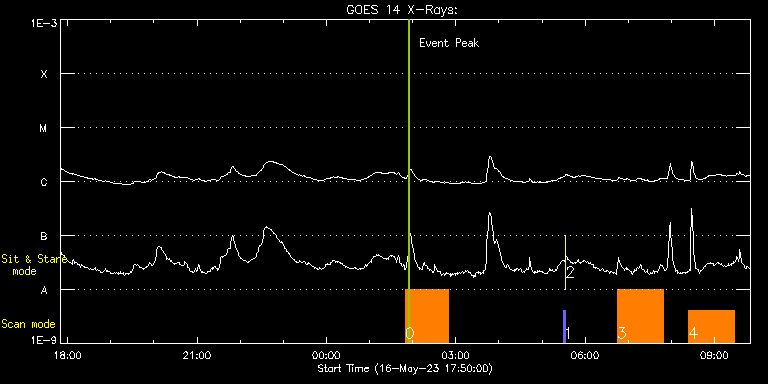 EIS Observation timeline overlay to GOES-Xray curve Code 1" 2" 40" 266" EIS Observations list for this event: STUDY ACRONYM ID DATE OBSERVED DESCRIPTION NOAA# TARGET 0 HPW021VEL260x512v2 | 86325 | 2023/05/17 01:49:44 | Active region studies - diagnostic ras | 3308 | Active Region TIMELINE ID DATE OBSERVED FITS FILE XCEN (+W/-E) YCEN (+N/-S) DUR ----------------------------------------------------------------------------------------------------------------- 86325 | 2023/05/17 01:49:44.000 | eis_l0_20230517_014944.fits.gz | 220.78 | 5.34 | 1h0m45s 1 PRY_slot_contextLITE | 86305 | 2023/05/17 05:29:50 | Pointing Monitoring | 3307 | Active Region TIMELINE ID DATE OBSERVED FITS FILE XCEN (+W/-E) YCEN (+N/-S) DUR ----------------------------------------------------------------------------------------------------------------- 86305 | 2023/05/17 05:29:50.000 | eis_l0_20230517_052950.fits.gz | 0.68 | -195.23 | 2m56s 2 XRT_synop_AIA | 86306 | 2023/05/17 05:33:05 | Pointing Monitoring | 3307 | Quiet Sun TIMELINE ID DATE OBSERVED FITS FILE XCEN (+W/-E) YCEN (+N/-S) DUR ----------------------------------------------------------------------------------------------------------------- 86306 | 2023/05/17 05:33:05.000 | eis_l0_20230517_053305.fits.gz | 0.43 | -207.00 | 10s 3 DHB_007_v2 | 86314 | 2023/05/17 06:44:50 | AR filaments form along the magnetic n | 3308 | Active Region TIMELINE ID DATE OBSERVED FITS FILE XCEN (+W/-E) YCEN (+N/-S) DUR ----------------------------------------------------------------------------------------------------------------- 86314 | 2023/05/17 06:44:50.000 | eis_l0_20230517_064450.fits.gz | 283.06 | 75.65 | 1h3m57s 4 DHB_007_v2 | 86315 | 2023/05/17 08:23:41 | AR filaments form along the magnetic n | 3308 | Active Region TIMELINE ID DATE OBSERVED FITS FILE XCEN (+W/-E) YCEN (+N/-S) DUR ----------------------------------------------------------------------------------------------------------------- 86315 | 2023/05/17 08:23:41.000 | eis_l0_20230517_082341.fits.gz | 296.73 | 75.27 | 1h3m57s : Check study information : Download file : View thumbnails For this event, also check for: