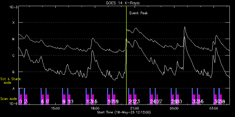 EIS Observation timeline overlay to GOES-Xray curve Code 1" 2" 40" 266" EIS Observations list for this event: STUDY ACRONYM ID DATE OBSERVED DESCRIPTION NOAA# TARGET 0 PRY_slot_contextLITE | 86334 | 2023/05/18 12:14:21 | Synoptic SOT latitudinal scan. | | Active Region TIMELINE ID DATE OBSERVED FITS FILE XCEN (+W/-E) YCEN (+N/-S) DUR ----------------------------------------------------------------------------------------------------------------- 86334 | 2023/05/18 12:14:21.000 | eis_l0_20230518_121421.fits.gz | -9868.96 | -10103.70 | 2m56s 1 SK_DEEP_5x512_SLIT1 | 86335 | 2023/05/18 12:17:28 | Synoptic SOT latitudinal scan. | | Quiet Sun TIMELINE ID DATE OBSERVED FITS FILE XCEN (+W/-E) YCEN (+N/-S) DUR ----------------------------------------------------------------------------------------------------------------- 86335 | 2023/05/18 12:17:28.000 | eis_l0_20230518_121728.fits.gz | -9869.46 | -10115.70 | 10m8s 2 PRY_slot_contextLITE | 86336 | 2023/05/18 12:37:35 | Synoptic SOT latitudinal scan. | | Active Region TIMELINE ID DATE OBSERVED FITS FILE XCEN (+W/-E) YCEN (+N/-S) DUR ----------------------------------------------------------------------------------------------------------------- 86336 | 2023/05/18 12:37:35.000 | eis_l0_20230518_123735.fits.gz | -17.49 | -1043.10 | 2m56s 3 SK_DEEP_5x512_SLIT1 | 86337 | 2023/05/18 12:40:43 | Synoptic SOT latitudinal scan. | | Quiet Sun TIMELINE ID DATE OBSERVED FITS FILE XCEN (+W/-E) YCEN (+N/-S) DUR ----------------------------------------------------------------------------------------------------------------- 86337 | 2023/05/18 12:40:43.000 | eis_l0_20230518_124043.fits.gz | -17.99 | -1055.02 | 10m7s 4 PRY_slot_contextLITE | 86338 | 2023/05/18 13:53:04 | Synoptic SOT latitudinal scan. | | Active Region TIMELINE ID DATE OBSERVED FITS FILE XCEN (+W/-E) YCEN (+N/-S) DUR ----------------------------------------------------------------------------------------------------------------- 86338 | 2023/05/18 13:53:04.000 | eis_l0_20230518_135304.fits.gz | -17.49 | -942.91 | 2m57s 5 SK_DEEP_5x512_SLIT1 | 86339 | 2023/05/18 13:56:12 | Synoptic SOT latitudinal scan. | | Quiet Sun TIMELINE ID DATE OBSERVED FITS FILE XCEN (+W/-E) YCEN (+N/-S) DUR ----------------------------------------------------------------------------------------------------------------- 86339 | 2023/05/18 13:56:12.000 | eis_l0_20230518_135612.fits.gz | -18.06 | -954.98 | 10m8s 6 PRY_slot_contextLITE | 86340 | 2023/05/18 14:16:04 | Synoptic SOT latitudinal scan. | | Active Region TIMELINE ID DATE OBSERVED FITS FILE XCEN (+W/-E) YCEN (+N/-S) DUR ----------------------------------------------------------------------------------------------------------------- 86340 | 2023/05/18 14:16:04.000 | eis_l0_20230518_141604.fits.gz | -17.56 | -842.87 | 2m56s 7 SK_DEEP_5x512_SLIT1 | 86341 | 2023/05/18 14:19:12 | Synoptic SOT latitudinal scan. | | Quiet Sun TIMELINE ID DATE OBSERVED FITS FILE XCEN (+W/-E) YCEN (+N/-S) DUR ----------------------------------------------------------------------------------------------------------------- 86341 | 2023/05/18 14:19:12.000 | eis_l0_20230518_141912.fits.gz | -17.99 | -854.87 | 10m8s 8 PRY_slot_contextLITE | 86342 | 2023/05/18 15:31:04 | Synoptic SOT latitudinal scan. | | Active Region TIMELINE ID DATE OBSERVED FITS FILE XCEN (+W/-E) YCEN (+N/-S) DUR ----------------------------------------------------------------------------------------------------------------- 86342 | 2023/05/18 15:31:04.000 | eis_l0_20230518_153104.fits.gz | -17.49 | -742.76 | 2m56s 9 SK_DEEP_5x512_SLIT1 | 86343 | 2023/05/18 15:34:12 | Synoptic SOT latitudinal scan. | | Quiet Sun TIMELINE ID DATE OBSERVED FITS FILE XCEN (+W/-E) YCEN (+N/-S) DUR ----------------------------------------------------------------------------------------------------------------- 86343 | 2023/05/18 15:34:12.000 | eis_l0_20230518_153412.fits.gz | -17.99 | -754.91 | 10m7s 10 PRY_slot_contextLITE | 86344 | 2023/05/18 15:54:04 | Synoptic SOT latitudinal scan. | | Active Region TIMELINE ID DATE OBSERVED FITS FILE XCEN (+W/-E) YCEN (+N/-S) DUR ----------------------------------------------------------------------------------------------------------------- 86344 | 2023/05/18 15:54:04.000 | eis_l0_20230518_155404.fits.gz | -17.49 | -642.72 | 2m56s 11 SK_DEEP_5x512_SLIT1 | 86345 | 2023/05/18 15:57:12 | Synoptic SOT latitudinal scan. | | Quiet Sun TIMELINE ID DATE OBSERVED FITS FILE XCEN (+W/-E) YCEN (+N/-S) DUR ----------------------------------------------------------------------------------------------------------------- 86345 | 2023/05/18 15:57:12.000 | eis_l0_20230518_155712.fits.gz | -17.99 | -654.72 | 10m8s 12 PRY_slot_contextLITE | 86346 | 2023/05/18 17:18:34 | Synoptic SOT latitudinal scan. | | Active Region TIMELINE ID DATE OBSERVED FITS FILE XCEN (+W/-E) YCEN (+N/-S) DUR ----------------------------------------------------------------------------------------------------------------- 86346 | 2023/05/18 17:18:34.000 | eis_l0_20230518_171834.fits.gz | -17.49 | -543.00 | 2m56s 13 SK_DEEP_5x512_SLIT1 | 86347 | 2023/05/18 17:21:42 | Synoptic SOT latitudinal scan. | | Quiet Sun TIMELINE ID DATE OBSERVED FITS FILE XCEN (+W/-E) YCEN (+N/-S) DUR ----------------------------------------------------------------------------------------------------------------- 86347 | 2023/05/18 17:21:42.000 | eis_l0_20230518_172142.fits.gz | -18.06 | -555.00 | 10m8s 14 PRY_slot_contextLITE | 86348 | 2023/05/18 17:41:34 | Synoptic SOT latitudinal scan. | | Active Region TIMELINE ID DATE OBSERVED FITS FILE XCEN (+W/-E) YCEN (+N/-S) DUR ----------------------------------------------------------------------------------------------------------------- 86348 | 2023/05/18 17:41:34.000 | eis_l0_20230518_174134.fits.gz | -17.49 | -442.96 | 2m57s 15 SK_DEEP_5x512_SLIT1 | 86349 | 2023/05/18 17:44:42 | Synoptic SOT latitudinal scan. | | Quiet Sun TIMELINE ID DATE OBSERVED FITS FILE XCEN (+W/-E) YCEN (+N/-S) DUR ------------------------------------------------