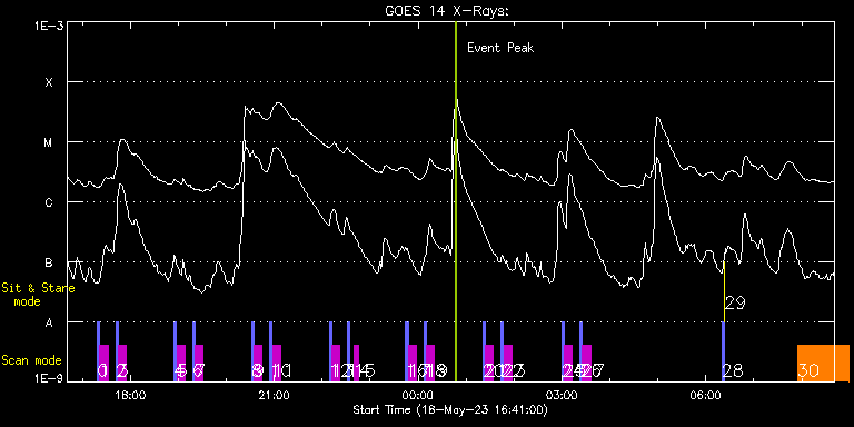 EIS Observation timeline overlay to GOES-Xray curve Code 1" 2" 40" 266" EIS Observations list for this event: STUDY ACRONYM ID DATE OBSERVED DESCRIPTION NOAA# TARGET 0 PRY_slot_contextLITE | 86346 | 2023/05/18 17:18:34 | Synoptic SOT latitudinal scan. | | Active Region TIMELINE ID DATE OBSERVED FITS FILE XCEN (+W/-E) YCEN (+N/-S) DUR ----------------------------------------------------------------------------------------------------------------- 86346 | 2023/05/18 17:18:34.000 | eis_l0_20230518_171834.fits.gz | -17.49 | -543.00 | 2m56s 1 SK_DEEP_5x512_SLIT1 | 86347 | 2023/05/18 17:21:42 | Synoptic SOT latitudinal scan. | | Quiet Sun TIMELINE ID DATE OBSERVED FITS FILE XCEN (+W/-E) YCEN (+N/-S) DUR ----------------------------------------------------------------------------------------------------------------- 86347 | 2023/05/18 17:21:42.000 | eis_l0_20230518_172142.fits.gz | -18.06 | -555.00 | 10m8s 2 PRY_slot_contextLITE | 86348 | 2023/05/18 17:41:34 | Synoptic SOT latitudinal scan. | | Active Region TIMELINE ID DATE OBSERVED FITS FILE XCEN (+W/-E) YCEN (+N/-S) DUR ----------------------------------------------------------------------------------------------------------------- 86348 | 2023/05/18 17:41:34.000 | eis_l0_20230518_174134.fits.gz | -17.49 | -442.96 | 2m57s 3 SK_DEEP_5x512_SLIT1 | 86349 | 2023/05/18 17:44:42 | Synoptic SOT latitudinal scan. | | Quiet Sun TIMELINE ID DATE OBSERVED FITS FILE XCEN (+W/-E) YCEN (+N/-S) DUR ----------------------------------------------------------------------------------------------------------------- 86349 | 2023/05/18 17:44:42.000 | eis_l0_20230518_174442.fits.gz | -18.06 | -454.96 | 10m8s 4 PRY_slot_contextLITE | 86350 | 2023/05/18 18:55:04 | Synoptic SOT latitudinal scan. | | Active Region TIMELINE ID DATE OBSERVED FITS FILE XCEN (+W/-E) YCEN (+N/-S) DUR ----------------------------------------------------------------------------------------------------------------- 86350 | 2023/05/18 18:55:04.000 | eis_l0_20230518_185504.fits.gz | -17.64 | -342.77 | 2m56s 5 SK_DEEP_5x512_SLIT1 | 86351 | 2023/05/18 18:58:12 | Synoptic SOT latitudinal scan. | | Quiet Sun TIMELINE ID DATE OBSERVED FITS FILE XCEN (+W/-E) YCEN (+N/-S) DUR ----------------------------------------------------------------------------------------------------------------- 86351 | 2023/05/18 18:58:12.000 | eis_l0_20230518_185812.fits.gz | -18.14 | -354.85 | 10m8s 6 PRY_slot_contextLITE | 86352 | 2023/05/18 19:18:04 | Synoptic SOT latitudinal scan. | 3307 | Active Region TIMELINE ID DATE OBSERVED FITS FILE XCEN (+W/-E) YCEN (+N/-S) DUR ----------------------------------------------------------------------------------------------------------------- 86352 | 2023/05/18 19:18:04.000 | eis_l0_20230518_191804.fits.gz | -17.49 | -242.74 | 2m57s 7 SK_DEEP_5x512_SLIT1 | 86353 | 2023/05/18 19:21:12 | Synoptic SOT latitudinal scan. | | Quiet Sun TIMELINE ID DATE OBSERVED FITS FILE XCEN (+W/-E) YCEN (+N/-S) DUR ----------------------------------------------------------------------------------------------------------------- 86353 | 2023/05/18 19:21:12.000 | eis_l0_20230518_192112.fits.gz | -18.06 | -254.74 | 10m8s 8 PRY_slot_contextLITE | 86354 | 2023/05/18 20:31:34 | Synoptic SOT latitudinal scan. | 3307 | Active Region TIMELINE ID DATE OBSERVED FITS FILE XCEN (+W/-E) YCEN (+N/-S) DUR ----------------------------------------------------------------------------------------------------------------- 86354 | 2023/05/18 20:31:34.000 | eis_l0_20230518_203134.fits.gz | -17.49 | -152.74 | 2m56s 9 SK_DEEP_5x512_SLIT1 | 86355 | 2023/05/18 20:34:42 | Synoptic SOT latitudinal scan. | | Quiet Sun TIMELINE ID DATE OBSERVED FITS FILE XCEN (+W/-E) YCEN (+N/-S) DUR ----------------------------------------------------------------------------------------------------------------- 86355 | 2023/05/18 20:34:42.000 | eis_l0_20230518_203442.fits.gz | -17.99 | -164.82 | 10m7s 10 PRY_slot_contextLITE | 86356 | 2023/05/18 20:54:34 | Synoptic SOT latitudinal scan. | 3307 | Active Region TIMELINE ID DATE OBSERVED FITS FILE XCEN (+W/-E) YCEN (+N/-S) DUR ----------------------------------------------------------------------------------------------------------------- 86356 | 2023/05/18 20:54:34.000 | eis_l0_20230518_205434.fits.gz | -17.49 | -53.09 | 2m56s 11 SK_DEEP_5x512_SLIT1 | 86357 | 2023/05/18 20:57:42 | Synoptic SOT latitudinal scan. | | Quiet Sun TIMELINE ID DATE OBSERVED FITS FILE XCEN (+W/-E) YCEN (+N/-S) DUR ----------------------------------------------------------------------------------------------------------------- 86357 | 2023/05/18 20:57:42.000 | eis_l0_20230518_205742.fits.gz | -17.99 | -65.17 | 10m8s 12 PRY_slot_contextLITE | 86358 | 2023/05/18 22:09:04 | Synoptic SOT latitudinal scan. | 3307 | Active Region TIMELINE ID DATE OBSERVED FITS FILE XCEN (+W/-E) YCEN (+N/-S) DUR ----------------------------------------------------------------------------------------------------------------- 86358 | 2023/05/18 22:09:04.000 | eis_l0_20230518_220904.fits.gz | -17.49 | 47.02 | 2m56s 13 SK_DEEP_5x512_SLIT1 | 86359 | 2023/05/18 22:12:12 | Synoptic SOT latitudinal scan. | | Quiet Sun TIMELINE ID DATE OBSERVED FITS FILE XCEN (+W/-E) YCEN (+N/-S) DUR ----------------------------------------------------------------------------------------------------------------- 86359 | 2023/05/18 22:12:12.000 | eis_l0_20230518_221212.fits.gz | -18.06 | 35.02 | 10m8s 14 PRY_slot_contextLITE | 86360 | 2023/05/18 22:32:04 | Synoptic SOT latitudinal scan. | 3307 | Active Region TIMELINE ID DATE OBSERVED FITS FILE XCEN (+W/-E) YCEN (+N/-S) DUR ----------------------------------------------------------------------------------------------------------------- 86360 | 2023/05/18 22:32:04.000 | eis_l0_20230518_223204.fits.gz | -17.49 | 147.06 | 2m56s 15 SK_DEEP_5x512_SLIT1 | 86361 | 2023/05/18 22:39:16 | Synoptic SOT latitudinal scan. | | Quiet Sun TIMELINE ID DATE OBSERVED FITS FILE XCEN (+W/-E) YCEN (+N/-S) DUR ----------------------------------------