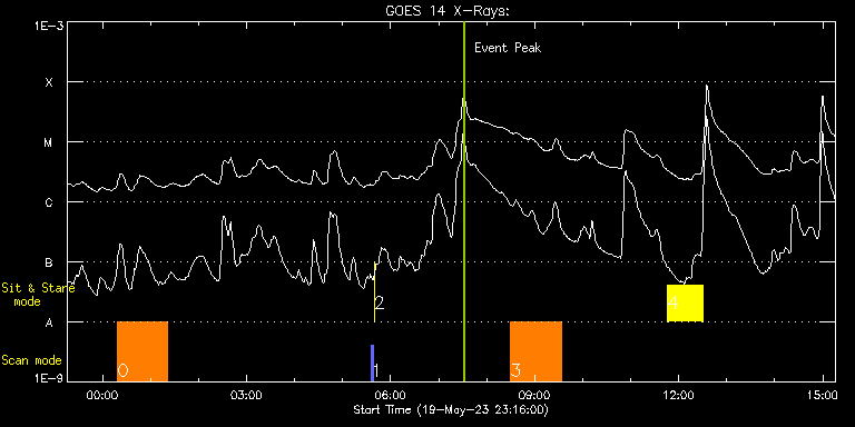 EIS Observation timeline overlay to GOES-Xray curve Code 1" 2" 40" 266" EIS Observations list for this event: STUDY ACRONYM ID DATE OBSERVED DESCRIPTION NOAA# TARGET 0 Large_CH_Map | 86329 | 2023/05/20 00:19:14 | Cycle 24/25 equatorial transition. | | Quiet Sun TIMELINE ID DATE OBSERVED FITS FILE XCEN (+W/-E) YCEN (+N/-S) DUR ----------------------------------------------------------------------------------------------------------------- 86329 | 2023/05/20 00:19:14.000 | eis_l0_20230520_001914.fits.gz | -16.77 | -175.08 | 1h1m52s 1 PRY_slot_contextLITE | 86332 | 2023/05/20 05:36:19 | Pointing Monitoring | | Active Region TIMELINE ID DATE OBSERVED FITS FILE XCEN (+W/-E) YCEN (+N/-S) DUR ----------------------------------------------------------------------------------------------------------------- 86332 | 2023/05/20 05:36:19.000 | eis_l0_20230520_053619.fits.gz | 0.68 | -195.00 | 2m57s 2 XRT_synop_AIA | 86333 | 2023/05/20 05:39:34 | Pointing Monitoring | | Quiet Sun TIMELINE ID DATE OBSERVED FITS FILE XCEN (+W/-E) YCEN (+N/-S) DUR ----------------------------------------------------------------------------------------------------------------- 86333 | 2023/05/20 05:39:34.000 | eis_l0_20230520_053934.fits.gz | 0.43 | -207.00 | 10s 3 DHB_007_v2 | 86328 | 2023/05/20 08:29:50 | AR filaments form along the magnetic n | 3302 | Active Region TIMELINE ID DATE OBSERVED FITS FILE XCEN (+W/-E) YCEN (+N/-S) DUR ----------------------------------------------------------------------------------------------------------------- 86328 | 2023/05/20 08:29:50.000 | eis_l0_20230520_082950.fits.gz | 773.97 | 54.26 | 1h3m57s 4 Flare266_Hunter01 | 86394 | 2023/05/20 11:46:34 | Flare watch | 3311 | Flare TIMELINE ID DATE OBSERVED FITS FILE XCEN (+W/-E) YCEN (+N/-S) DUR ----------------------------------------------------------------------------------------------------------------- 86394 | 2023/05/20 11:46:34.000 | eis_l0_20230520_114634.fits.gz | -769.90 | 228.51 | 43m59s : Check study information : Download file : View thumbnails For this event, also check for: