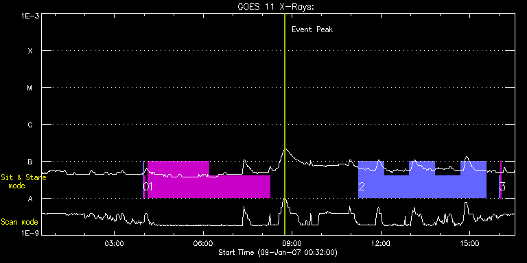 EIS Observation timeline overlay to GOES-Xray curve Code 1" 2" 40" 266" EIS Observations list for this event: STUDY ACRONYM ID DATE OBSERVED DESCRIPTION NOAA# TARGET 0 SYNOP001 | 496 | 2007/01/09 03:57:34 | SYNOP001_40arcsec_1arcsec_30s_90s | | Quiet Sun TIMELINE ID DATE OBSERVED FITS FILE XCEN (+W/-E) YCEN (+N/-S) DUR ----------------------------------------------------------------------------------------------------------------- 496 | 2007/01/09 03:57:34.000 | eis_l0_20070109_035734.fits.gz | -109.19 | -36.80 | 2m1s 496 | 2007/01/09 03:59:49.000 | eis_l0_20070109_035949.fits.gz | -128.91 | -36.68 | 2m1s 1 JTM005 | 497 | 2007/01/09 04:07:12 | JTM005_120exp_512y_60s_slit1_ss | | Quiet Sun TIMELINE ID DATE OBSERVED FITS FILE XCEN (+W/-E) YCEN (+N/-S) DUR ----------------------------------------------------------------------------------------------------------------- 497 | 2007/01/09 04:07:12.000 | eis_l0_20070109_040712.fits.gz | 703.03 | -87.55 | 2h3m46s 497 | 2007/01/09 06:11:01.000 | eis_l0_20070109_061101.fits.gz | 716.30 | -88.32 | 2h3m47s 2 HPW005_QS_SLOT_060m | 499 | 2007/01/09 11:15:04 | HPW005_QS_SLOT_060m | | Quiet Sun TIMELINE ID DATE OBSERVED FITS FILE XCEN (+W/-E) YCEN (+N/-S) DUR ----------------------------------------------------------------------------------------------------------------- 499 | 2007/01/09 11:15:04.000 | eis_l0_20070109_111504.fits.gz | -1069.20 | -36.88 | 51m33s 499 | 2007/01/09 12:06:43.000 | eis_l0_20070109_120643.fits.gz | -1069.22 | -36.80 | 51m33s 499 | 2007/01/09 12:58:21.000 | eis_l0_20070109_125821.fits.gz | -1069.22 | -36.68 | 51m33s 499 | 2007/01/09 13:49:59.000 | eis_l0_20070109_134959.fits.gz | -1069.22 | -36.68 | 51m33s 499 | 2007/01/09 14:41:37.000 | eis_l0_20070109_144137.fits.gz | -1069.24 | -36.80 | 51m33s 3 SYNOP001 | 500 | 2007/01/09 16:00:12 | SYNOP001_40arcsec_1arcsec_30s_90s | | Quiet Sun TIMELINE ID DATE OBSERVED FITS FILE XCEN (+W/-E) YCEN (+N/-S) DUR ----------------------------------------------------------------------------------------------------------------- 500 | 2007/01/09 16:00:12.000 | eis_l0_20070109_160012.fits.gz | -109.02 | -36.72 | 2m1s 500 | 2007/01/09 16:02:27.000 | eis_l0_20070109_160227.fits.gz | -128.76 | -36.76 | 2m2s : Check study information : Download file : View thumbnails For this event, also check for: