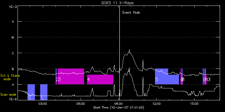 EIS Observation timeline overlay to GOES-Xray curve