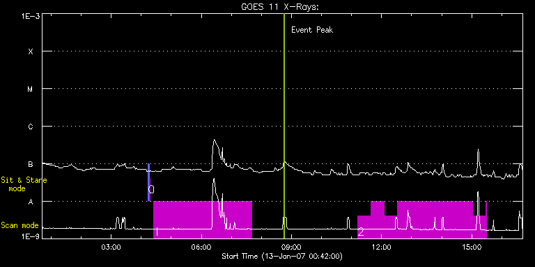 EIS Observation timeline overlay to GOES-Xray curve Code 1" 2" 40" 266" EIS Observations list for this event: STUDY ACRONYM ID DATE OBSERVED DESCRIPTION NOAA# TARGET 0 SYNOP001 | 591 | 2007/01/13 04:14:03 | SYNOP001_40arcsec_1arcsec_30s_90s | | Quiet Sun TIMELINE ID DATE OBSERVED FITS FILE XCEN (+W/-E) YCEN (+N/-S) DUR ----------------------------------------------------------------------------------------------------------------- 591 | 2007/01/13 04:14:03.000 | eis_l0_20070113_041403.fits.gz | -109.13 | -36.76 | 2m2s 591 | 2007/01/13 04:16:19.000 | eis_l0_20070113_041619.fits.gz | -128.85 | -36.80 | 2m1s 1 HPW001_FULLCCD_RAST | 592 | 2007/01/13 04:25:12 | HPW001_FULLCCD_RAST_128x128_90S_SLIT1 | 937 | Quiet Sun TIMELINE ID DATE OBSERVED FITS FILE XCEN (+W/-E) YCEN (+N/-S) DUR ----------------------------------------------------------------------------------------------------------------- 592 | 2007/01/13 04:25:12.000 | eis_l0_20070113_042512.fits.gz | 791.55 | -138.07 | 3h15m20s 2 HH_AR+FLR_RAS_N01 | 593 | 2007/01/13 11:12:13 | HH_AR+FLR_RAS_N01 (EWxNS=240"x240", 5. | 933 | Active Region TIMELINE ID DATE OBSERVED FITS FILE XCEN (+W/-E) YCEN (+N/-S) DUR ----------------------------------------------------------------------------------------------------------------- 593 | 2007/01/13 11:12:13.000 | eis_l0_20070113_111213.fits.gz | 938.47 | -143.63 | 26m16s 593 | 2007/01/13 11:38:32.000 | eis_l0_20070113_113832.fits.gz | 938.43 | -143.63 | 26m15s 593 | 2007/01/13 12:04:50.000 | eis_l0_20070113_120450.fits.gz | 938.38 | -143.55 | 26m16s 593 | 2007/01/13 12:31:08.000 | eis_l0_20070113_123108.fits.gz | 938.40 | -143.59 | 2h30m21s 593 | 2007/01/13 15:01:32.000 | eis_l0_20070113_150132.fits.gz | 938.43 | -143.63 | 26m15s 593 | 2007/01/13 15:27:50.000 | eis_l0_20070113_152750.fits.gz | 1050.75 | -143.71 | 1m36s : Check study information : Download file : View thumbnails For this event, also check for: