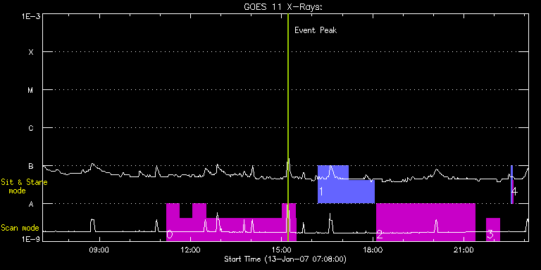 EIS Observation timeline overlay to GOES-Xray curve Code 1" 2" 40" 266" EIS Observations list for this event: STUDY ACRONYM ID DATE OBSERVED DESCRIPTION NOAA# TARGET 0 HH_AR+FLR_RAS_N01 | 593 | 2007/01/13 11:12:13 | HH_AR+FLR_RAS_N01 (EWxNS=240"x240", 5. | 933 | Active Region TIMELINE ID DATE OBSERVED FITS FILE XCEN (+W/-E) YCEN (+N/-S) DUR ----------------------------------------------------------------------------------------------------------------- 593 | 2007/01/13 11:12:13.000 | eis_l0_20070113_111213.fits.gz | 938.47 | -143.63 | 26m16s 593 | 2007/01/13 11:38:32.000 | eis_l0_20070113_113832.fits.gz | 938.43 | -143.63 | 26m15s 593 | 2007/01/13 12:04:50.000 | eis_l0_20070113_120450.fits.gz | 938.38 | -143.55 | 26m16s 593 | 2007/01/13 12:31:08.000 | eis_l0_20070113_123108.fits.gz | 938.40 | -143.59 | 2h30m21s 593 | 2007/01/13 15:01:32.000 | eis_l0_20070113_150132.fits.gz | 938.43 | -143.63 | 26m15s 593 | 2007/01/13 15:27:50.000 | eis_l0_20070113_152750.fits.gz | 1050.75 | -143.71 | 1m36s 1 HPW005_QS_SLOT_060m | 595 | 2007/01/13 16:12:13 | HPW005_QS_SLOT_060m | | Quiet Sun TIMELINE ID DATE OBSERVED FITS FILE XCEN (+W/-E) YCEN (+N/-S) DUR ----------------------------------------------------------------------------------------------------------------- 595 | 2007/01/13 16:12:13.000 | eis_l0_20070113_161213.fits.gz | -109.11 | -982.04 | 59m35s 595 | 2007/01/13 17:11:53.000 | eis_l0_20070113_171153.fits.gz | -109.09 | -981.81 | 51m33s 2 HPW001_FULLCCD_RAST | 596 | 2007/01/13 18:07:20 | HPW001_FULLCCD_RAST_128x128_90S_SLIT1 | | Quiet Sun TIMELINE ID DATE OBSERVED FITS FILE XCEN (+W/-E) YCEN (+N/-S) DUR ----------------------------------------------------------------------------------------------------------------- 596 | 2007/01/13 18:07:20.000 | eis_l0_20070113_180720.fits.gz | 4.01 | -981.69 | 3h15m19s 3 HH_AR+FLR_RAS_N01 | 597 | 2007/01/13 21:45:12 | HH_AR+FLR_RAS_N01 (EWxNS=240"x240", 5. | | Active Region TIMELINE ID DATE OBSERVED FITS FILE XCEN (+W/-E) YCEN (+N/-S) DUR ----------------------------------------------------------------------------------------------------------------- 597 | 2007/01/13 21:45:12.000 | eis_l0_20070113_214512.fits.gz | 4.99 | -981.81 | 26m17s 4 SYNOP001 | 598 | 2007/01/13 22:33:35 | SYNOP001_40arcsec_1arcsec_30s_90s | | Quiet Sun TIMELINE ID DATE OBSERVED FITS FILE XCEN (+W/-E) YCEN (+N/-S) DUR ----------------------------------------------------------------------------------------------------------------- 598 | 2007/01/13 22:33:35.000 | eis_l0_20070113_223335.fits.gz | 22.64 | -36.72 | 2m1s 598 | 2007/01/13 22:35:50.000 | eis_l0_20070113_223550.fits.gz | 2.88 | -36.76 | 2m2s : Check study information : Download file : View thumbnails For this event, also check for:
