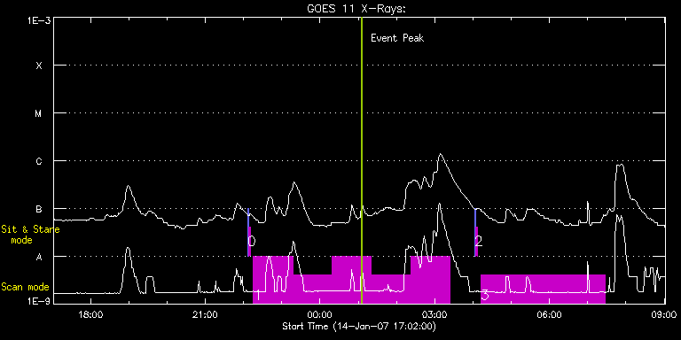 EIS Observation timeline overlay to GOES-Xray curve