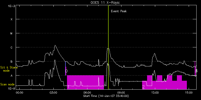 EIS Observation timeline overlay to GOES-Xray curve Code 1" 2" 40" 266" EIS Observations list for this event: STUDY ACRONYM ID DATE OBSERVED DESCRIPTION NOAA# TARGET 0 SYNOP001 | 611 | 2007/01/15 04:02:33 | SYNOP001_40arcsec_1arcsec_30s_90s | | Quiet Sun TIMELINE ID DATE OBSERVED FITS FILE XCEN (+W/-E) YCEN (+N/-S) DUR ----------------------------------------------------------------------------------------------------------------- 611 | 2007/01/15 04:02:33.000 | eis_l0_20070115_040233.fits.gz | 22.66 | -36.72 | 2m2s 611 | 2007/01/15 04:04:49.000 | eis_l0_20070115_040449.fits.gz | 3.00 | -36.88 | 2m1s 1 HPW001_FULLCCD_RAST | 612 | 2007/01/15 04:12:12 | HPW001_FULLCCD_RAST_128x128_90S_SLIT1 | | Quiet Sun TIMELINE ID DATE OBSERVED FITS FILE XCEN (+W/-E) YCEN (+N/-S) DUR ----------------------------------------------------------------------------------------------------------------- 612 | 2007/01/15 04:12:12.000 | eis_l0_20070115_041212.fits.gz | 396.10 | -287.58 | 3h15m20s 2 HH_AR+FLR_RAS_N01 | 613 | 2007/01/15 10:52:11 | HH_AR+FLR_RAS_N01 (EWxNS=240"x240", 5. | 938 | Active Region TIMELINE ID DATE OBSERVED FITS FILE XCEN (+W/-E) YCEN (+N/-S) DUR ----------------------------------------------------------------------------------------------------------------- 613 | 2007/01/15 10:52:11.000 | eis_l0_20070115_105211.fits.gz | -636.70 | 71.04 | 26m17s 613 | 2007/01/15 11:18:31.000 | eis_l0_20070115_111831.fits.gz | -633.59 | 71.16 | 26m15s 613 | 2007/01/15 11:44:49.000 | eis_l0_20070115_114449.fits.gz | -630.43 | 71.39 | 26m18s 613 | 2007/01/15 12:11:10.000 | eis_l0_20070115_121110.fits.gz | -627.26 | 71.58 | 26m16s 613 | 2007/01/15 12:37:29.000 | eis_l0_20070115_123729.fits.gz | -624.07 | 71.81 | 26m15s 613 | 2007/01/15 13:03:47.000 | eis_l0_20070115_130347.fits.gz | -620.93 | 72.08 | 26m16s 613 | 2007/01/15 13:30:06.000 | eis_l0_20070115_133006.fits.gz | -617.72 | 72.36 | 26m18s 613 | 2007/01/15 13:56:27.000 | eis_l0_20070115_135627.fits.gz | -614.51 | 72.66 | 26m15s 613 | 2007/01/15 14:22:44.000 | eis_l0_20070115_142244.fits.gz | -611.23 | 72.74 | 26m16s 3 regcal071 | 614 | 2007/01/15 15:31:10 | Dark exposures, CCD bottom rows | | Engineering TIMELINE ID DATE OBSERVED FITS FILE XCEN (+W/-E) YCEN (+N/-S) DUR ----------------------------------------------------------------------------------------------------------------- 614 | 2007/01/15 15:31:10.000 | eis_l0_20070115_153110.fits.gz | -594.38 | -180.56 | 2m2s 4 regcal072 | 615 | 2007/01/15 15:34:10 | Dark exposures, top CCD rows | | Engineering TIMELINE ID DATE OBSERVED FITS FILE XCEN (+W/-E) YCEN (+N/-S) DUR ----------------------------------------------------------------------------------------------------------------- 615 | 2007/01/15 15:34:10.000 | eis_l0_20070115_153410.fits.gz | -593.97 | 330.51 | 2m2s : Check study information : Download file : View thumbnails For this event, also check for: