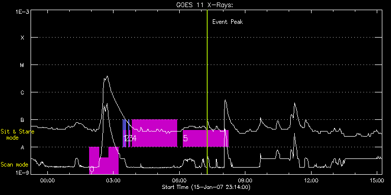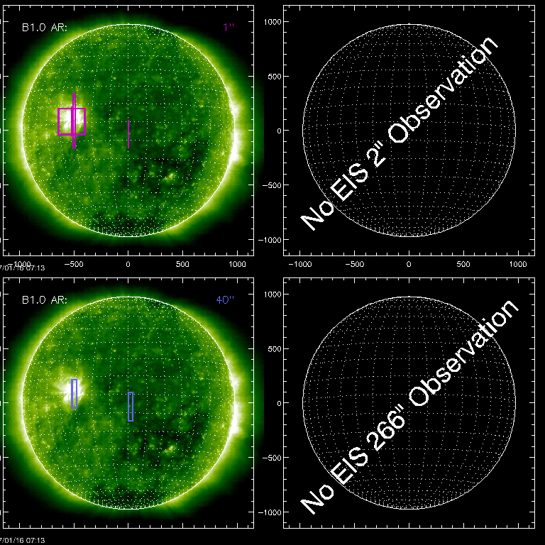EIS Observation timeline overlay to GOES-Xray curve Code 1" 2" 40" 266" EIS Observations list for this event: STUDY ACRONYM ID DATE OBSERVED DESCRIPTION NOAA# TARGET 0 HH_AR+FLR_RAS_N01 | 626 | 2007/01/16 01:54:11 | HH_AR+FLR_RAS_N01 (EWxNS=240"x240", 5. | 938 | Active Region TIMELINE ID DATE OBSERVED FITS FILE XCEN (+W/-E) YCEN (+N/-S) DUR ----------------------------------------------------------------------------------------------------------------- 626 | 2007/01/16 01:54:11.000 | eis_l0_20070116_015411.fits.gz | -522.99 | 79.65 | 26m16s 626 | 2007/01/16 02:20:30.000 | eis_l0_20070116_022030.fits.gz | -519.44 | 79.84 | 26m16s 626 | 2007/01/16 02:46:49.000 | eis_l0_20070116_024649.fits.gz | -515.87 | 80.08 | 26m16s 1 SYNOP001 | 627 | 2007/01/16 03:25:33 | SYNOP001_40arcsec_1arcsec_30s_90s | | Quiet Sun TIMELINE ID DATE OBSERVED FITS FILE XCEN (+W/-E) YCEN (+N/-S) DUR ----------------------------------------------------------------------------------------------------------------- 627 | 2007/01/16 03:25:33.000 | eis_l0_20070116_032533.fits.gz | -494.69 | 79.27 | 2m1s 627 | 2007/01/16 03:27:48.000 | eis_l0_20070116_032748.fits.gz | -514.12 | 80.31 | 2m2s 2 SYNOP001 | 628 | 2007/01/16 03:30:33 | SYNOP001_40arcsec_1arcsec_30s_90s | | Quiet Sun TIMELINE ID DATE OBSERVED FITS FILE XCEN (+W/-E) YCEN (+N/-S) DUR ----------------------------------------------------------------------------------------------------------------- 628 | 2007/01/16 03:30:33.000 | eis_l0_20070116_033033.fits.gz | -494.09 | 80.38 | 2m1s 628 | 2007/01/16 03:32:48.000 | eis_l0_20070116_033248.fits.gz | -513.46 | 79.31 | 2m2s 3 SYNOP001 | 629 | 2007/01/16 03:40:33 | SYNOP001_40arcsec_1arcsec_30s_90s | | Quiet Sun TIMELINE ID DATE OBSERVED FITS FILE XCEN (+W/-E) YCEN (+N/-S) DUR ----------------------------------------------------------------------------------------------------------------- 629 | 2007/01/16 03:40:33.000 | eis_l0_20070116_034033.fits.gz | 22.73 | -36.80 | 2m1s 629 | 2007/01/16 03:42:48.000 | eis_l0_20070116_034248.fits.gz | 3.01 | -36.80 | 2m1s 4 JTM005 | 630 | 2007/01/16 03:50:11 | JTM005_120exp_512y_60s_slit1_ss | | Quiet Sun TIMELINE ID DATE OBSERVED FITS FILE XCEN (+W/-E) YCEN (+N/-S) DUR ----------------------------------------------------------------------------------------------------------------- 630 | 2007/01/16 03:50:11.000 | eis_l0_20070116_035011.fits.gz | -502.90 | 80.65 | 2h3m45s 5 JTM005 | 631 | 2007/01/16 06:10:11 | JTM005_120exp_512y_60s_slit1_ss | | Quiet Sun TIMELINE ID DATE OBSERVED FITS FILE XCEN (+W/-E) YCEN (+N/-S) DUR ----------------------------------------------------------------------------------------------------------------- 631 | 2007/01/16 06:10:11.000 | eis_l0_20070116_061011.fits.gz | -483.74 | 81.74 | 2h3m46s : Check study information : Download file : View thumbnails For this event, also check for: