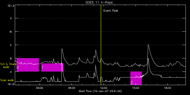 EIS Observation timeline overlay to GOES-Xray curve Code 1" 2" 40" 266" EIS Observations list for this event: STUDY ACRONYM ID DATE OBSERVED DESCRIPTION NOAA# TARGET 0 JTM005 | 630 | 2007/01/16 03:50:11 | JTM005_120exp_512y_60s_slit1_ss | | Quiet Sun TIMELINE ID DATE OBSERVED FITS FILE XCEN (+W/-E) YCEN (+N/-S) DUR ----------------------------------------------------------------------------------------------------------------- 630 | 2007/01/16 03:50:11.000 | eis_l0_20070116_035011.fits.gz | -502.90 | 80.65 | 2h3m45s 1 JTM005 | 631 | 2007/01/16 06:10:11 | JTM005_120exp_512y_60s_slit1_ss | | Quiet Sun TIMELINE ID DATE OBSERVED FITS FILE XCEN (+W/-E) YCEN (+N/-S) DUR ----------------------------------------------------------------------------------------------------------------- 631 | 2007/01/16 06:10:11.000 | eis_l0_20070116_061011.fits.gz | -483.74 | 81.74 | 2h3m46s 2 HH_QS_RAS_N01 | 634 | 2007/01/16 14:31:13 | HH_QS_RASTER (EWxNS=60"x120", 60sec ex | | Quiet Sun TIMELINE ID DATE OBSERVED FITS FILE XCEN (+W/-E) YCEN (+N/-S) DUR ----------------------------------------------------------------------------------------------------------------- 634 | 2007/01/16 14:31:13.000 | eis_l0_20070116_143113.fits.gz | -110.72 | -36.80 | 1h1m33s : Check study information : Download file : View thumbnails For this event, also check for:
