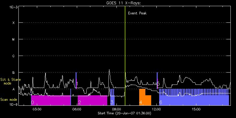 EIS Observation timeline overlay to GOES-Xray curve Code 1" 2" 40" 266" EIS Observations list for this event: STUDY ACRONYM ID DATE OBSERVED DESCRIPTION NOAA# TARGET 0 COMSCI_AR3 | 681 | 2007/01/20 02:32:33 | Accurate Measurement of Velocity Shift | 938 | Active Region TIMELINE ID DATE OBSERVED FITS FILE XCEN (+W/-E) YCEN (+N/-S) DUR ----------------------------------------------------------------------------------------------------------------- 681 | 2007/01/20 02:32:33.000 | eis_l0_20070120_023233.fits.gz | 364.70 | 118.44 | 1m8s 681 | 2007/01/20 02:33:52.000 | eis_l0_20070120_023352.fits.gz | 360.31 | 118.52 | 2h57m22s 681 | 2007/01/20 05:31:40.000 | eis_l0_20070120_053140.fits.gz | 362.86 | 118.83 | 1m8s 1 SYNOP001 | 672 | 2007/01/20 05:55:12 | SYNOP001_40arcsec_1arcsec_30s_90s | | Quiet Sun TIMELINE ID DATE OBSERVED FITS FILE XCEN (+W/-E) YCEN (+N/-S) DUR ----------------------------------------------------------------------------------------------------------------- 672 | 2007/01/20 05:55:12.000 | eis_l0_20070120_055512.fits.gz | 22.66 | -13.88 | 2m1s 672 | 2007/01/20 05:57:27.000 | eis_l0_20070120_055727.fits.gz | 3.01 | -13.80 | 2m2s 2 HPW004_QS_RAST_120m | 679 | 2007/01/20 06:05:12 | HPW004_QS_RAST_120m | | Quiet Sun TIMELINE ID DATE OBSERVED FITS FILE XCEN (+W/-E) YCEN (+N/-S) DUR ----------------------------------------------------------------------------------------------------------------- 679 | 2007/01/20 06:05:12.000 | eis_l0_20070120_060512.fits.gz | -15.07 | -37.19 | 2h12m 3 HPW007_QS_SLOTW_v2 | 680 | 2007/01/20 08:31:33 | HPW007_QS_SLOTW_060m_v2 | | Quiet Sun TIMELINE ID DATE OBSERVED FITS FILE XCEN (+W/-E) YCEN (+N/-S) DUR ----------------------------------------------------------------------------------------------------------------- 680 | 2007/01/20 08:31:33.000 | eis_l0_20070120_083133.fits.gz | 16.55 | -36.76 | 3m4s 680 | 2007/01/20 08:34:42.000 | eis_l0_20070120_083442.fits.gz | 17.08 | -36.88 | 3m4s 680 | 2007/01/20 08:37:51.000 | eis_l0_20070120_083751.fits.gz | 17.56 | -36.99 | 3m4s 680 | 2007/01/20 08:41:00.000 | eis_l0_20070120_084100.fits.gz | 18.02 | -36.95 | 3m4s 680 | 2007/01/20 08:44:09.000 | eis_l0_20070120_084409.fits.gz | 18.54 | -36.95 | 3m4s 680 | 2007/01/20 08:47:18.000 | eis_l0_20070120_084718.fits.gz | 19.04 | -36.88 | 3m4s 4 PRY_loop_footpoints | 682 | 2007/01/20 10:42:35 | Cool lines for study of loop footpoint | | Active Region TIMELINE ID DATE OBSERVED FITS FILE XCEN (+W/-E) YCEN (+N/-S) DUR ----------------------------------------------------------------------------------------------------------------- 682 | 2007/01/20 10:42:35.000 | eis_l0_20070120_104235.fits.gz | 321.17 | 144.55 | 26m17s 682 | 2007/01/20 11:08:56.000 | eis_l0_20070120_110856.fits.gz | 324.86 | 144.21 | 26m17s 5 SYNOP001 | 684 | 2007/01/20 12:02:20 | SYNOP001_40arcsec_1arcsec_30s_90s | | Quiet Sun TIMELINE ID DATE OBSERVED FITS FILE XCEN (+W/-E) YCEN (+N/-S) DUR ----------------------------------------------------------------------------------------------------------------- 684 | 2007/01/20 12:02:20.000 | eis_l0_20070120_120220.fits.gz | 22.62 | -13.88 | 2m1s 684 | 2007/01/20 12:04:35.000 | eis_l0_20070120_120435.fits.gz | 3.01 | -13.88 | 2m2s 6 HPW007_QS_SLOTW_060m | 685 | 2007/01/20 12:12:34 | HPW007_QS_SLOTW_060m | | Quiet Sun TIMELINE ID DATE OBSERVED FITS FILE XCEN (+W/-E) YCEN (+N/-S) DUR ----------------------------------------------------------------------------------------------------------------- 685 | 2007/01/20 12:12:34.000 | eis_l0_20070120_121234.fits.gz | 63.42 | -982.00 | 3m4s 685 | 2007/01/20 12:15:43.000 | eis_l0_20070120_121543.fits.gz | 63.38 | -981.73 | 3m4s 685 | 2007/01/20 12:18:52.000 | eis_l0_20070120_121852.fits.gz | 63.42 | -981.85 | 3m4s 685 | 2007/01/20 12:22:01.000 | eis_l0_20070120_122201.fits.gz | 63.36 | -981.77 | 3m4s 685 | 2007/01/20 12:25:10.000 | eis_l0_20070120_122510.fits.gz | 63.40 | -981.77 | 3m4s 685 | 2007/01/20 12:28:19.000 | eis_l0_20070120_122819.fits.gz | 63.38 | -981.69 | 3m4s 685 | 2007/01/20 12:31:28.000 | eis_l0_20070120_123128.fits.gz | 63.44 | -981.77 | 3m4s 685 | 2007/01/20 12:34:38.000 | eis_l0_20070120_123438.fits.gz | 63.42 | -981.77 | 3m3s 685 | 2007/01/20 12:37:47.000 | eis_l0_20070120_123747.fits.gz | 63.48 | -981.69 | 3m4s 685 | 2007/01/20 12:40:56.000 | eis_l0_20070120_124056.fits.gz | 63.42 | -981.77 | 3m4s 685 | 2007/01/20 12:44:05.000 | eis_l0_20070120_124405.fits.gz | 63.42 | -981.77 | 3m4s 685 | 2007/01/20 12:47:14.000 | eis_l0_20070120_124714.fits.gz | 63.38 | -981.77 | 3m4s 685 | 2007/01/20 12:50:23.000 | eis_l0_20070120_125023.fits.gz | 63.34 | -981.77 | 3m4s 685 | 2007/01/20 12:53:32.000 | eis_l0_20070120_125332.fits.gz | 63.40 | -981.73 | 3m4s 685 | 2007/01/20 12:56:41.000 | eis_l0_20070120_125641.fits.gz | 63.32 | -981.65 | 3m4s 685 | 2007/01/20 12:59:50.000 | eis_l0_20070120_125950.fits.gz | 63.36 | -981.65 | 3m4s 685 | 2007/01/20 13:03:00.000 | eis_l0_20070120_130300.fits.gz | 63.38 | -981.77 | 3m4s 685 | 2007/01/20 13:06:09.000 | eis_l0_20070120_130609.fits.gz | 63.36 | -981.77 | 3m4s 685 | 2007/01/20 13:09:18.000 | eis_l0_20070120_130918.fits.gz | 63.42 | -981.77 | 3m4s 685 | 2007/01/20 13:12:27.000 | eis_l0_20070120_131227.fits.gz | 63.42 | -981.77 | 3m4s 685 | 2007/01/20 13:15:36.000 | eis_l0_20070120_131536.fits.gz | 63.38 | -981.77 | 3m4s 685 | 2007/01/20 13:18:45.000 | eis_l0_20070120_131845.fits.gz | 63.38 | -981.77 | 3m4s 685 | 2007/01/20 13:21:54.000 | eis_l0_20070120_132154.fits.gz | 63.28 | -981.77 | 3m4s 685 | 2007/01/20 13:25:03.000 | eis_l0_20070120_132503.fits.gz | 63.38 | -981.77 | 3m4s 685 | 2007/01/20 13:28:12.000 | eis_l0_20070120_132812.fits.gz | 63.42 | -981.77 | 3m4s 685 | 2007/01/20 13:31:21.000 | eis_l0_20070120_133121.fits.gz | 63.38 | -981.69 | 3m4s 685 | 2007/01/20 13:34:30.000 | eis_l0_20070120_133430.fits.gz | 63.38 | -981.77 | 3m4s 685 | 2007/01/20 13:37:39.000 | eis_l0_20070120_133739.fits.gz | 63.42 | -981.69 | 3m4s 685 | 2007/01/20 13:40:49.000 | eis_l0_20070120_134