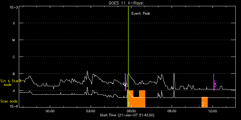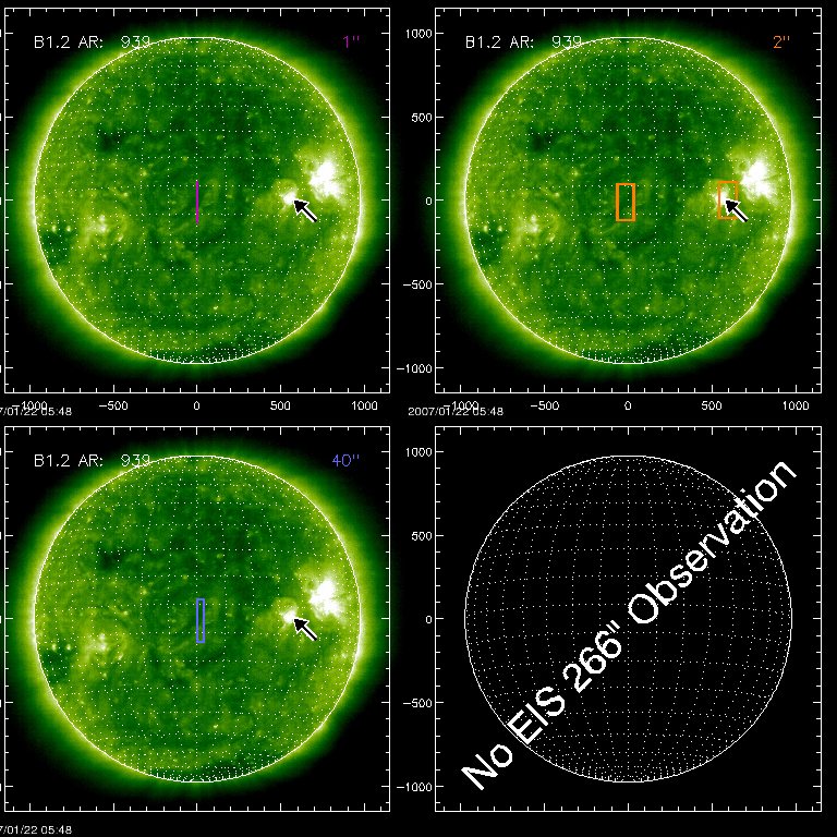 EIS Observation timeline overlay to GOES-Xray curve Code 1" 2" 40" 266" EIS Observations list for this event: STUDY ACRONYM ID DATE OBSERVED DESCRIPTION NOAA# TARGET 0 SYNOP001 | 695 | 2007/01/22 05:32:33 | SYNOP001_40arcsec_1arcsec_30s_90s | | Quiet Sun TIMELINE ID DATE OBSERVED FITS FILE XCEN (+W/-E) YCEN (+N/-S) DUR ----------------------------------------------------------------------------------------------------------------- 695 | 2007/01/22 05:32:33.000 | eis_l0_20070122_053233.fits.gz | 22.64 | -13.92 | 2m1s 695 | 2007/01/22 05:34:48.000 | eis_l0_20070122_053448.fits.gz | 2.98 | -13.88 | 2m2s 1 PRY_loop_footpoints | 698 | 2007/01/22 05:42:26 | Cool lines for study of loop footpoint | | Active Region TIMELINE ID DATE OBSERVED FITS FILE XCEN (+W/-E) YCEN (+N/-S) DUR ----------------------------------------------------------------------------------------------------------------- 698 | 2007/01/22 05:42:26.000 | eis_l0_20070122_054226.fits.gz | -16.69 | -14.22 | 26m17s 698 | 2007/01/22 06:08:47.000 | eis_l0_20070122_060847.fits.gz | -12.56 | -14.03 | 26m18s 698 | 2007/01/22 06:35:08.000 | eis_l0_20070122_063508.fits.gz | -8.44 | -13.95 | 26m18s 2 PRY_loop_footpoints | 699 | 2007/01/22 11:12:12 | Cool lines for study of loop footpoint | | Active Region TIMELINE ID DATE OBSERVED FITS FILE XCEN (+W/-E) YCEN (+N/-S) DUR ----------------------------------------------------------------------------------------------------------------- 699 | 2007/01/22 11:12:12.000 | eis_l0_20070122_111212.fits.gz | 598.61 | -1.67 | 26m17s 3 SYNOP001 | 700 | 2007/01/22 12:04:19 | SYNOP001_40arcsec_1arcsec_30s_90s | | Quiet Sun TIMELINE ID DATE OBSERVED FITS FILE XCEN (+W/-E) YCEN (+N/-S) DUR ----------------------------------------------------------------------------------------------------------------- 700 | 2007/01/22 12:04:19.000 | eis_l0_20070122_120419.fits.gz | 22.66 | -13.88 | 2m2s 700 | 2007/01/22 12:06:35.000 | eis_l0_20070122_120635.fits.gz | 2.90 | -13.84 | 2m1s : Check study information : Download file : View thumbnails For this event, also check for: