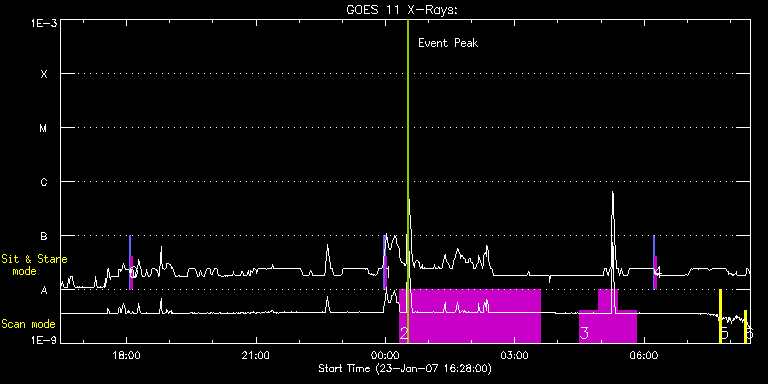 EIS Observation timeline overlay to GOES-Xray curve Code 1" 2" 40" 266" EIS Observations list for this event: STUDY ACRONYM ID DATE OBSERVED DESCRIPTION NOAA# TARGET 0 SYNOP001 | 714 | 2007/01/23 18:03:35 | SYNOP001_40arcsec_1arcsec_30s_90s | | Quiet Sun TIMELINE ID DATE OBSERVED FITS FILE XCEN (+W/-E) YCEN (+N/-S) DUR ----------------------------------------------------------------------------------------------------------------- 714 | 2007/01/23 18:03:35.000 | eis_l0_20070123_180335.fits.gz | -109.11 | -36.76 | 2m1s 714 | 2007/01/23 18:05:50.000 | eis_l0_20070123_180550.fits.gz | -128.83 | -36.72 | 2m1s 1 SYNOP001 | 717 | 2007/01/23 23:57:42 | SYNOP001_40arcsec_1arcsec_30s_90s | | Quiet Sun TIMELINE ID DATE OBSERVED FITS FILE XCEN (+W/-E) YCEN (+N/-S) DUR ----------------------------------------------------------------------------------------------------------------- 717 | 2007/01/23 23:57:42.000 | eis_l0_20070123_235742.fits.gz | -109.17 | -36.84 | 2m2s 717 | 2007/01/23 23:59:58.000 | eis_l0_20070123_235958.fits.gz | -128.85 | -36.80 | 2m1s 2 HPW001_FULLCCD_RAST | 718 | 2007/01/24 00:20:13 | HPW001_FULLCCD_RAST_128x128_90S_SLIT1 | 939 | Quiet Sun TIMELINE ID DATE OBSERVED FITS FILE XCEN (+W/-E) YCEN (+N/-S) DUR ----------------------------------------------------------------------------------------------------------------- 718 | 2007/01/24 00:20:13.000 | eis_l0_20070124_002013.fits.gz | 822.49 | -40.28 | 3h15m20s 3 HH_AR+FLR_RAS_N01 | 722 | 2007/01/24 04:30:12 | HH_AR+FLR_RAS_N01 (EWxNS=240"x240", 5. | 939 | Active Region TIMELINE ID DATE OBSERVED FITS FILE XCEN (+W/-E) YCEN (+N/-S) DUR ----------------------------------------------------------------------------------------------------------------- 722 | 2007/01/24 04:30:12.000 | eis_l0_20070124_043012.fits.gz | 837.37 | -39.33 | 26m15s 722 | 2007/01/24 04:56:29.000 | eis_l0_20070124_045629.fits.gz | 839.54 | -39.68 | 26m17s 722 | 2007/01/24 05:22:48.000 | eis_l0_20070124_052248.fits.gz | 841.64 | -39.87 | 26m17s 4 SYNOP001 | 719 | 2007/01/24 06:12:33 | SYNOP001_40arcsec_1arcsec_30s_90s | | Quiet Sun TIMELINE ID DATE OBSERVED FITS FILE XCEN (+W/-E) YCEN (+N/-S) DUR ----------------------------------------------------------------------------------------------------------------- 719 | 2007/01/24 06:12:33.000 | eis_l0_20070124_061233.fits.gz | -109.13 | -36.72 | 2m2s 719 | 2007/01/24 06:14:49.000 | eis_l0_20070124_061449.fits.gz | -128.79 | -36.68 | 2m1s 5 HH_FOV_Alignment | 720 | 2007/01/24 07:45:19 | Study for FOV alignment purpose with 2 | 939 | Quiet Sun TIMELINE ID DATE OBSERVED FITS FILE XCEN (+W/-E) YCEN (+N/-S) DUR ----------------------------------------------------------------------------------------------------------------- 720 | 2007/01/24 07:45:19.000 | eis_l0_20070124_074519.fits.gz | 844.39 | -64.61 | 2m39s 6 HH_FOV_Alignment | 721 | 2007/01/24 08:20:02 | Study for FOV alignment purpose with 2 | 939 | Quiet Sun TIMELINE ID DATE OBSERVED FITS FILE XCEN (+W/-E) YCEN (+N/-S) DUR ----------------------------------------------------------------------------------------------------------------- 721 | 2007/01/24 08:20:02.000 | eis_l0_20070124_082002.fits.gz | 976.98 | -65.19 | 2m39s : Check study information : Download file : View thumbnails For this event, also check for: