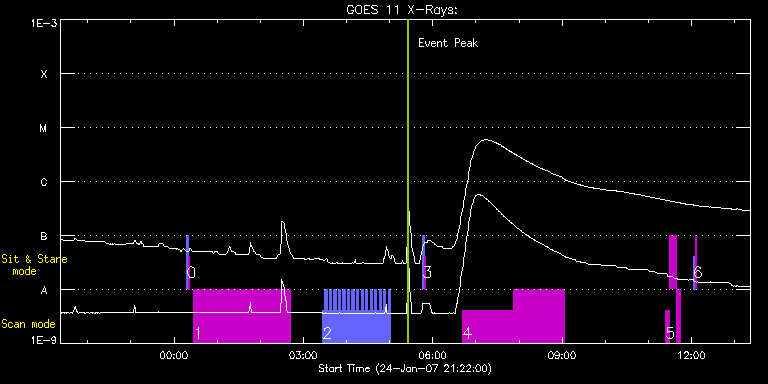 EIS Observation timeline overlay to GOES-Xray curve Code 1" 2" 40" 266" EIS Observations list for this event: STUDY ACRONYM ID DATE OBSERVED DESCRIPTION NOAA# TARGET 0 SYNOP001 | 732 | 2007/01/25 00:17:34 | SYNOP001_40arcsec_1arcsec_30s_90s | | Quiet Sun TIMELINE ID DATE OBSERVED FITS FILE XCEN (+W/-E) YCEN (+N/-S) DUR ----------------------------------------------------------------------------------------------------------------- 732 | 2007/01/25 00:17:34.000 | eis_l0_20070125_001734.fits.gz | 20.77 | -36.68 | 2m2s 732 | 2007/01/25 00:19:50.000 | eis_l0_20070125_001950.fits.gz | 1.17 | -36.80 | 2m1s 1 JTM002 | 733 | 2007/01/25 00:27:13 | JTM002_256x256_30s_slit1 | 939 | Quiet Sun TIMELINE ID DATE OBSERVED FITS FILE XCEN (+W/-E) YCEN (+N/-S) DUR ----------------------------------------------------------------------------------------------------------------- 733 | 2007/01/25 00:27:13.000 | eis_l0_20070125_002713.fits.gz | 1003.77 | 33.19 | 2h14m44s 2 HPW007_QS_SLOTW_060m | 734 | 2007/01/25 03:26:34 | HPW007_QS_SLOTW_060m | 939 | Quiet Sun TIMELINE ID DATE OBSERVED FITS FILE XCEN (+W/-E) YCEN (+N/-S) DUR ----------------------------------------------------------------------------------------------------------------- 734 | 2007/01/25 03:26:34.000 | eis_l0_20070125_032634.fits.gz | 1006.25 | 33.07 | 3m4s 734 | 2007/01/25 03:29:43.000 | eis_l0_20070125_032943.fits.gz | 1006.23 | 33.11 | 3m4s 734 | 2007/01/25 03:32:52.000 | eis_l0_20070125_033252.fits.gz | 1006.21 | 33.11 | 3m4s 734 | 2007/01/25 03:36:01.000 | eis_l0_20070125_033601.fits.gz | 1006.25 | 33.11 | 3m4s 734 | 2007/01/25 03:39:10.000 | eis_l0_20070125_033910.fits.gz | 1006.19 | 33.19 | 3m4s 734 | 2007/01/25 03:42:20.000 | eis_l0_20070125_034220.fits.gz | 1006.25 | 33.11 | 3m3s 734 | 2007/01/25 03:45:29.000 | eis_l0_20070125_034529.fits.gz | 1006.21 | 33.11 | 3m3s 734 | 2007/01/25 03:48:37.000 | eis_l0_20070125_034837.fits.gz | 1006.29 | 33.07 | 3m4s 734 | 2007/01/25 03:51:47.000 | eis_l0_20070125_035147.fits.gz | 1006.27 | 33.03 | 3m4s 734 | 2007/01/25 03:54:56.000 | eis_l0_20070125_035456.fits.gz | 1006.19 | 33.03 | 3m4s 734 | 2007/01/25 03:58:05.000 | eis_l0_20070125_035805.fits.gz | 1006.23 | 33.11 | 3m4s 734 | 2007/01/25 04:01:14.000 | eis_l0_20070125_040114.fits.gz | 1006.23 | 33.03 | 3m4s 734 | 2007/01/25 04:04:23.000 | eis_l0_20070125_040423.fits.gz | 1006.23 | 33.07 | 3m4s 734 | 2007/01/25 04:07:32.000 | eis_l0_20070125_040732.fits.gz | 1006.19 | 33.03 | 3m4s 734 | 2007/01/25 04:10:41.000 | eis_l0_20070125_041041.fits.gz | 1006.23 | 33.11 | 3m4s 734 | 2007/01/25 04:13:51.000 | eis_l0_20070125_041351.fits.gz | 1006.23 | 33.11 | 3m4s 734 | 2007/01/25 04:17:00.000 | eis_l0_20070125_041700.fits.gz | 1006.23 | 33.11 | 3m4s 734 | 2007/01/25 04:20:09.000 | eis_l0_20070125_042009.fits.gz | 1006.23 | 33.03 | 3m3s 734 | 2007/01/25 04:23:18.000 | eis_l0_20070125_042318.fits.gz | 1006.27 | 33.03 | 3m4s 734 | 2007/01/25 04:26:27.000 | eis_l0_20070125_042627.fits.gz | 1006.23 | 33.11 | 3m4s 734 | 2007/01/25 04:29:36.000 | eis_l0_20070125_042936.fits.gz | 1006.27 | 33.11 | 3m4s 734 | 2007/01/25 04:32:45.000 | eis_l0_20070125_043245.fits.gz | 1006.23 | 33.11 | 3m4s 734 | 2007/01/25 04:35:54.000 | eis_l0_20070125_043554.fits.gz | 1006.25 | 33.03 | 3m4s 734 | 2007/01/25 04:39:03.000 | eis_l0_20070125_043903.fits.gz | 1006.21 | 33.03 | 3m4s 734 | 2007/01/25 04:42:12.000 | eis_l0_20070125_044212.fits.gz | 1006.21 | 33.11 | 3m4s 734 | 2007/01/25 04:45:21.000 | eis_l0_20070125_044521.fits.gz | 1006.25 | 33.03 | 3m4s 734 | 2007/01/25 04:48:30.000 | eis_l0_20070125_044830.fits.gz | 1006.21 | 33.03 | 3m4s 734 | 2007/01/25 04:51:39.000 | eis_l0_20070125_045139.fits.gz | 1006.17 | 33.03 | 3m4s 734 | 2007/01/25 04:54:48.000 | eis_l0_20070125_045448.fits.gz | 1006.25 | 33.11 | 3m4s 734 | 2007/01/25 04:57:58.000 | eis_l0_20070125_045758.fits.gz | 1006.23 | 33.15 | 3m3s 3 SYNOP001 | 735 | 2007/01/25 05:46:13 | SYNOP001_40arcsec_1arcsec_30s_90s | | Quiet Sun TIMELINE ID DATE OBSERVED FITS FILE XCEN (+W/-E) YCEN (+N/-S) DUR ----------------------------------------------------------------------------------------------------------------- 735 | 2007/01/25 05:46:13.000 | eis_l0_20070125_054613.fits.gz | 20.83 | -36.88 | 2m1s 735 | 2007/01/25 05:48:28.000 | eis_l0_20070125_054828.fits.gz | 1.17 | -36.88 | 2m1s 4 GAD001_AR_rast | 736 | 2007/01/25 06:41:13 | GAD001_AR_rast | 939 | Active Region TIMELINE ID DATE OBSERVED FITS FILE XCEN (+W/-E) YCEN (+N/-S) DUR ----------------------------------------------------------------------------------------------------------------- 736 | 2007/01/25 06:41:13.000 | eis_l0_20070125_064113.fits.gz | 1003.71 | 33.19 | 1h10m40s 736 | 2007/01/25 07:51:56.000 | eis_l0_20070125_075156.fits.gz | 1003.73 | 32.99 | 1h10m41s 5 PRY_fast_dens | 737 | 2007/01/25 11:24:14 | High cadence sit-and-stare in ARs; 5s | 939 | Active Region TIMELINE ID DATE OBSERVED FITS FILE XCEN (+W/-E) YCEN (+N/-S) DUR ----------------------------------------------------------------------------------------------------------------- 737 | 2007/01/25 11:24:14.000 | eis_l0_20070125_112414.fits.gz | 944.59 | -73.90 | 4m29s 737 | 2007/01/25 11:28:46.000 | eis_l0_20070125_112846.fits.gz | 944.58 | -74.01 | 10m41s 737 | 2007/01/25 11:39:30.000 | eis_l0_20070125_113930.fits.gz | 945.17 | -74.09 | 4m28s 6 SYNOP001 | 738 | 2007/01/25 12:02:34 | SYNOP001_40arcsec_1arcsec_30s_90s | | Quiet Sun TIMELINE ID DATE OBSERVED FITS FILE XCEN (+W/-E) YCEN (+N/-S) DUR ----------------------------------------------------------------------------------------------------------------- 738 | 2007/01/25 12:02:34.000 | eis_l0_20070125_120234.fits.gz | 20.89 | -36.76 | 2m2s 738 | 2007/01/25 12:04:50.000 | eis_l0_20070125_120450.fits.gz | 1.15 | -36.88 | 2m2s : Check study information : Download file : View thumbnails For this event, also check for: