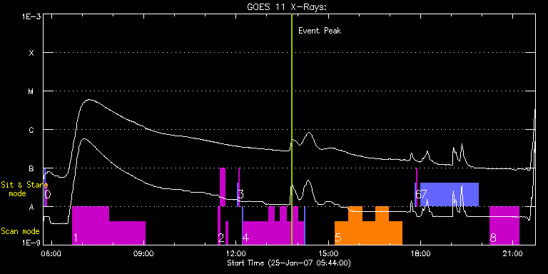 EIS Observation timeline overlay to GOES-Xray curve Code 1" 2" 40" 266" EIS Observations list for this event: STUDY ACRONYM ID DATE OBSERVED DESCRIPTION NOAA# TARGET 0 SYNOP001 | 735 | 2007/01/25 05:46:13 | SYNOP001_40arcsec_1arcsec_30s_90s | | Quiet Sun TIMELINE ID DATE OBSERVED FITS FILE XCEN (+W/-E) YCEN (+N/-S) DUR ----------------------------------------------------------------------------------------------------------------- 735 | 2007/01/25 05:46:13.000 | eis_l0_20070125_054613.fits.gz | 20.83 | -36.88 | 2m1s 735 | 2007/01/25 05:48:28.000 | eis_l0_20070125_054828.fits.gz | 1.17 | -36.88 | 2m1s 1 GAD001_AR_rast | 736 | 2007/01/25 06:41:13 | GAD001_AR_rast | 939 | Active Region TIMELINE ID DATE OBSERVED FITS FILE XCEN (+W/-E) YCEN (+N/-S) DUR ----------------------------------------------------------------------------------------------------------------- 736 | 2007/01/25 06:41:13.000 | eis_l0_20070125_064113.fits.gz | 1003.71 | 33.19 | 1h10m40s 736 | 2007/01/25 07:51:56.000 | eis_l0_20070125_075156.fits.gz | 1003.73 | 32.99 | 1h10m41s 2 PRY_fast_dens | 737 | 2007/01/25 11:24:14 | High cadence sit-and-stare in ARs; 5s | 939 | Active Region TIMELINE ID DATE OBSERVED FITS FILE XCEN (+W/-E) YCEN (+N/-S) DUR ----------------------------------------------------------------------------------------------------------------- 737 | 2007/01/25 11:24:14.000 | eis_l0_20070125_112414.fits.gz | 944.59 | -73.90 | 4m29s 737 | 2007/01/25 11:28:46.000 | eis_l0_20070125_112846.fits.gz | 944.58 | -74.01 | 10m41s 737 | 2007/01/25 11:39:30.000 | eis_l0_20070125_113930.fits.gz | 945.17 | -74.09 | 4m28s 3 SYNOP001 | 738 | 2007/01/25 12:02:34 | SYNOP001_40arcsec_1arcsec_30s_90s | | Quiet Sun TIMELINE ID DATE OBSERVED FITS FILE XCEN (+W/-E) YCEN (+N/-S) DUR ----------------------------------------------------------------------------------------------------------------- 738 | 2007/01/25 12:02:34.000 | eis_l0_20070125_120234.fits.gz | 20.89 | -36.76 | 2m2s 738 | 2007/01/25 12:04:50.000 | eis_l0_20070125_120450.fits.gz | 1.15 | -36.88 | 2m2s 4 COMSCI_AR2 | 739 | 2007/01/25 12:12:34 | Active Region Scan for Global Changes | 939 | Active Region TIMELINE ID DATE OBSERVED FITS FILE XCEN (+W/-E) YCEN (+N/-S) DUR ----------------------------------------------------------------------------------------------------------------- 739 | 2007/01/25 12:12:34.000 | eis_l0_20070125_121234.fits.gz | 980.65 | -74.59 | 1m8s 739 | 2007/01/25 12:13:53.000 | eis_l0_20070125_121353.fits.gz | 963.98 | -74.63 | 49m24s 739 | 2007/01/25 13:03:20.000 | eis_l0_20070125_130320.fits.gz | 948.38 | -74.32 | 11m33s 739 | 2007/01/25 13:14:56.000 | eis_l0_20070125_131456.fits.gz | 948.77 | -74.40 | 11m33s 739 | 2007/01/25 13:26:32.000 | eis_l0_20070125_132632.fits.gz | 949.19 | -74.56 | 11m34s 739 | 2007/01/25 13:38:08.000 | eis_l0_20070125_133808.fits.gz | 949.52 | -74.75 | 11m33s 739 | 2007/01/25 13:49:44.000 | eis_l0_20070125_134944.fits.gz | 949.96 | -74.90 | 11m34s 739 | 2007/01/25 14:01:20.000 | eis_l0_20070125_140120.fits.gz | 950.37 | -75.06 | 11m34s 739 | 2007/01/25 14:13:19.000 | eis_l0_20070125_141319.fits.gz | 982.37 | -75.25 | 1m8s 5 PRY_loop_footpoints | 740 | 2007/01/25 15:12:34 | Cool lines for study of loop footpoint | 939 | Active Region TIMELINE ID DATE OBSERVED FITS FILE XCEN (+W/-E) YCEN (+N/-S) DUR ----------------------------------------------------------------------------------------------------------------- 740 | 2007/01/25 15:12:34.000 | eis_l0_20070125_151234.fits.gz | 957.64 | -74.06 | 26m18s 740 | 2007/01/25 15:38:56.000 | eis_l0_20070125_153856.fits.gz | 958.57 | -74.49 | 26m17s 740 | 2007/01/25 16:05:17.000 | eis_l0_20070125_160517.fits.gz | 959.34 | -74.87 | 26m18s 740 | 2007/01/25 16:31:39.000 | eis_l0_20070125_163139.fits.gz | 960.15 | -75.26 | 26m17s 740 | 2007/01/25 16:57:59.000 | eis_l0_20070125_165759.fits.gz | 960.92 | -75.65 | 26m18s 6 SYNOP001 | 741 | 2007/01/25 17:49:20 | SYNOP001_40arcsec_1arcsec_30s_90s | | Quiet Sun TIMELINE ID DATE OBSERVED FITS FILE XCEN (+W/-E) YCEN (+N/-S) DUR ----------------------------------------------------------------------------------------------------------------- 741 | 2007/01/25 17:49:20.000 | eis_l0_20070125_174920.fits.gz | 20.85 | -36.72 | 2m2s 741 | 2007/01/25 17:51:36.000 | eis_l0_20070125_175136.fits.gz | 1.23 | -36.80 | 2m1s 7 HPW006_QS_SLOT_120m | 742 | 2007/01/25 17:59:34 | HPW006_QS_SLOT_120m | 939 | Quiet Sun TIMELINE ID DATE OBSERVED FITS FILE XCEN (+W/-E) YCEN (+N/-S) DUR ----------------------------------------------------------------------------------------------------------------- 742 | 2007/01/25 17:59:34.000 | eis_l0_20070125_175934.fits.gz | 977.09 | -92.53 | 1h53m27s 8 HPW008_FULLCCD_RAST | 743 | 2007/01/25 20:15:20 | HPW008_FULLCCD_RAST_128x128_25s_SLIT1 | 939 | Active Region TIMELINE ID DATE OBSERVED FITS FILE XCEN (+W/-E) YCEN (+N/-S) DUR ----------------------------------------------------------------------------------------------------------------- 743 | 2007/01/25 20:15:20.000 | eis_l0_20070125_201520.fits.gz | 962.61 | -64.54 | 56m40s : Check study information : Download file : View thumbnails For this event, also check for: