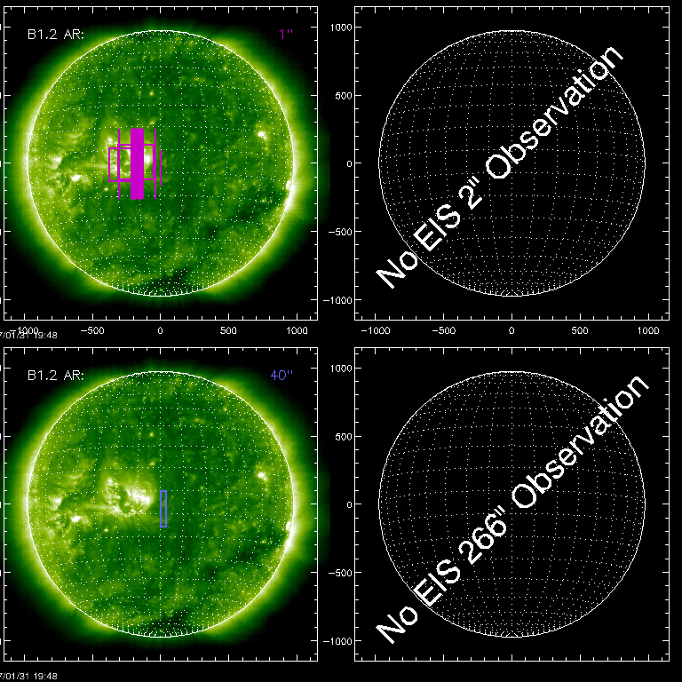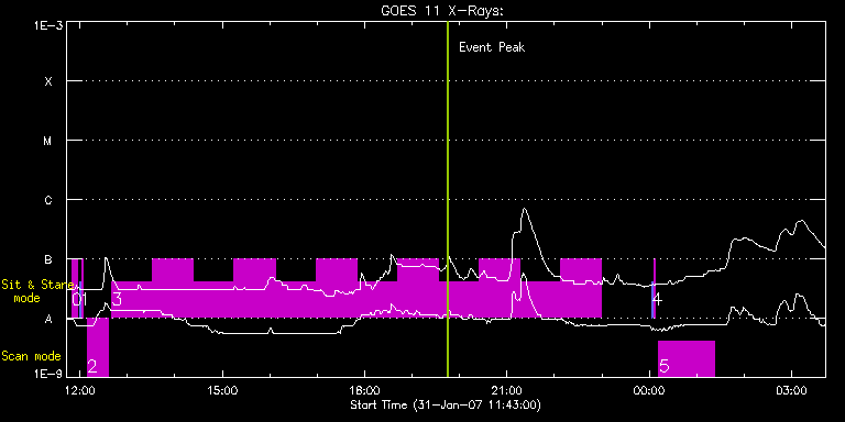EIS Observation timeline overlay to GOES-Xray curve Code 1" 2" 40" 266" EIS Observations list for this event: STUDY ACRONYM ID DATE OBSERVED DESCRIPTION NOAA# TARGET 0 regcal015 | 811 | 2007/01/31 11:49:42 | Dark current, hotpicels and column def | | Engineering TIMELINE ID DATE OBSERVED FITS FILE XCEN (+W/-E) YCEN (+N/-S) DUR ----------------------------------------------------------------------------------------------------------------- 811 | 2007/01/31 11:49:42.000 | eis_l0_20070131_114942.fits.gz | -303.52 | -9.22 | 7m47s 1 SYNOP001 | 812 | 2007/01/31 11:59:43 | SYNOP001_40arcsec_1arcsec_30s_90s | | Quiet Sun TIMELINE ID DATE OBSERVED FITS FILE XCEN (+W/-E) YCEN (+N/-S) DUR ----------------------------------------------------------------------------------------------------------------- 812 | 2007/01/31 11:59:43.000 | eis_l0_20070131_115943.fits.gz | 20.87 | -36.92 | 2m2s 812 | 2007/01/31 12:01:59.000 | eis_l0_20070131_120159.fits.gz | 1.21 | -36.76 | 2m1s 2 HH_AR+FLR_RAS_N01 | 813 | 2007/01/31 12:09:13 | HH_AR+FLR_RAS_N01 (EWxNS=240"x240", 5. | 940 | Active Region TIMELINE ID DATE OBSERVED FITS FILE XCEN (+W/-E) YCEN (+N/-S) DUR ----------------------------------------------------------------------------------------------------------------- 813 | 2007/01/31 12:09:13.000 | eis_l0_20070131_120913.fits.gz | -252.30 | -14.03 | 26m16s 3 HPW002_QS_SAS_060m | 814 | 2007/01/31 12:40:13 | HPW002_QS_SAS_060m | | Quiet Sun TIMELINE ID DATE OBSERVED FITS FILE XCEN (+W/-E) YCEN (+N/-S) DUR ----------------------------------------------------------------------------------------------------------------- 814 | 2007/01/31 12:40:13.000 | eis_l0_20070131_124013.fits.gz | -212.16 | -8.95 | 51m33s 814 | 2007/01/31 13:31:50.000 | eis_l0_20070131_133150.fits.gz | -204.40 | -8.60 | 51m33s 814 | 2007/01/31 14:23:27.000 | eis_l0_20070131_142327.fits.gz | -196.63 | -8.37 | 51m34s 814 | 2007/01/31 15:15:05.000 | eis_l0_20070131_151505.fits.gz | -188.85 | -8.03 | 51m34s 814 | 2007/01/31 16:06:43.000 | eis_l0_20070131_160643.fits.gz | -181.07 | -7.83 | 51m33s 814 | 2007/01/31 16:58:20.000 | eis_l0_20070131_165820.fits.gz | -173.24 | -7.45 | 51m33s 814 | 2007/01/31 17:49:58.000 | eis_l0_20070131_174958.fits.gz | -36.79 | -7.21 | 51m33s 814 | 2007/01/31 18:41:35.000 | eis_l0_20070131_184135.fits.gz | -157.52 | -6.91 | 51m33s 814 | 2007/01/31 19:33:12.000 | eis_l0_20070131_193312.fits.gz | -149.72 | -6.75 | 51m33s 814 | 2007/01/31 20:24:49.000 | eis_l0_20070131_202449.fits.gz | -141.82 | -6.36 | 51m34s 814 | 2007/01/31 21:16:27.000 | eis_l0_20070131_211627.fits.gz | -133.95 | -6.21 | 51m33s 814 | 2007/01/31 22:08:04.000 | eis_l0_20070131_220804.fits.gz | -126.01 | -5.90 | 51m33s 4 SYNOP001 | 815 | 2007/02/01 00:03:35 | SYNOP001_40arcsec_1arcsec_30s_90s | | Quiet Sun TIMELINE ID DATE OBSERVED FITS FILE XCEN (+W/-E) YCEN (+N/-S) DUR ----------------------------------------------------------------------------------------------------------------- 815 | 2007/02/01 00:03:35.000 | eis_l0_20070201_000335.fits.gz | 20.99 | -36.88 | 2m1s 815 | 2007/02/01 00:05:50.000 | eis_l0_20070201_000550.fits.gz | 1.21 | -36.76 | 2m2s 5 GAD001_AR_rast | 816 | 2007/02/01 00:12:12 | GAD001_AR_rast | 940 | Active Region TIMELINE ID DATE OBSERVED FITS FILE XCEN (+W/-E) YCEN (+N/-S) DUR ----------------------------------------------------------------------------------------------------------------- 816 | 2007/02/01 00:12:12.000 | eis_l0_20070201_001212.fits.gz | -178.52 | 6.68 | 1h10m42s : Check study information : Download file : View thumbnails For this event, also check for: