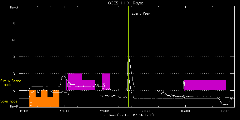 EIS Observation timeline overlay to GOES-Xray curve Code 1" 2" 40" 266" EIS Observations list for this event: STUDY ACRONYM ID DATE OBSERVED DESCRIPTION NOAA# TARGET 0 PRY_loop_footpoints | 905 | 2007/02/08 15:25:27 | Cool lines for study of loop footpoint | 940 | Active Region TIMELINE ID DATE OBSERVED FITS FILE XCEN (+W/-E) YCEN (+N/-S) DUR ----------------------------------------------------------------------------------------------------------------- 905 | 2007/02/08 15:25:27.000 | eis_l0_20070208_152527.fits.gz | 977.68 | -76.74 | 26m17s 905 | 2007/02/08 15:51:48.000 | eis_l0_20070208_155148.fits.gz | 977.62 | -76.62 | 26m17s 905 | 2007/02/08 16:18:09.000 | eis_l0_20070208_161809.fits.gz | 977.68 | -76.74 | 26m18s 905 | 2007/02/08 16:44:31.000 | eis_l0_20070208_164431.fits.gz | 977.70 | -76.74 | 26m17s 905 | 2007/02/08 17:10:52.000 | eis_l0_20070208_171052.fits.gz | 977.62 | -76.70 | 26m17s 1 SYNOP001 | 908 | 2007/02/08 18:06:20 | SYNOP001_40arcsec_1arcsec_30s_90s | | Quiet Sun TIMELINE ID DATE OBSERVED FITS FILE XCEN (+W/-E) YCEN (+N/-S) DUR ----------------------------------------------------------------------------------------------------------------- 908 | 2007/02/08 18:06:20.000 | eis_l0_20070208_180620.fits.gz | 20.83 | -13.68 | 2m1s 908 | 2007/02/08 18:08:35.000 | eis_l0_20070208_180835.fits.gz | 1.11 | -13.65 | 2m1s 2 HPW011_HR_AR_SAS | 906 | 2007/02/08 18:18:10 | HPW011_HR_AR_SAS_1x512_10s_SLIT1_18WIN | | Active Region TIMELINE ID DATE OBSERVED FITS FILE XCEN (+W/-E) YCEN (+N/-S) DUR ----------------------------------------------------------------------------------------------------------------- 906 | 2007/02/08 18:18:10.000 | eis_l0_20070208_181810.fits.gz | 1003.35 | -76.78 | 59m26s 906 | 2007/02/08 19:17:40.000 | eis_l0_20070208_191740.fits.gz | 1003.39 | -76.74 | 59m26s 3 JTM006 | 907 | 2007/02/08 20:48:12 | JTM006_120exp_512y_90s_slit1_ss | | Quiet Sun TIMELINE ID DATE OBSERVED FITS FILE XCEN (+W/-E) YCEN (+N/-S) DUR ----------------------------------------------------------------------------------------------------------------- 907 | 2007/02/08 20:48:12.000 | eis_l0_20070208_204812.fits.gz | 1002.87 | -76.65 | 35m12s 907 | 2007/02/09 02:55:51.000 | eis_l0_20070209_025551.fits.gz | 1002.89 | -76.74 | 3h3m45s : Check study information : Download file : View thumbnails For this event, also check for: