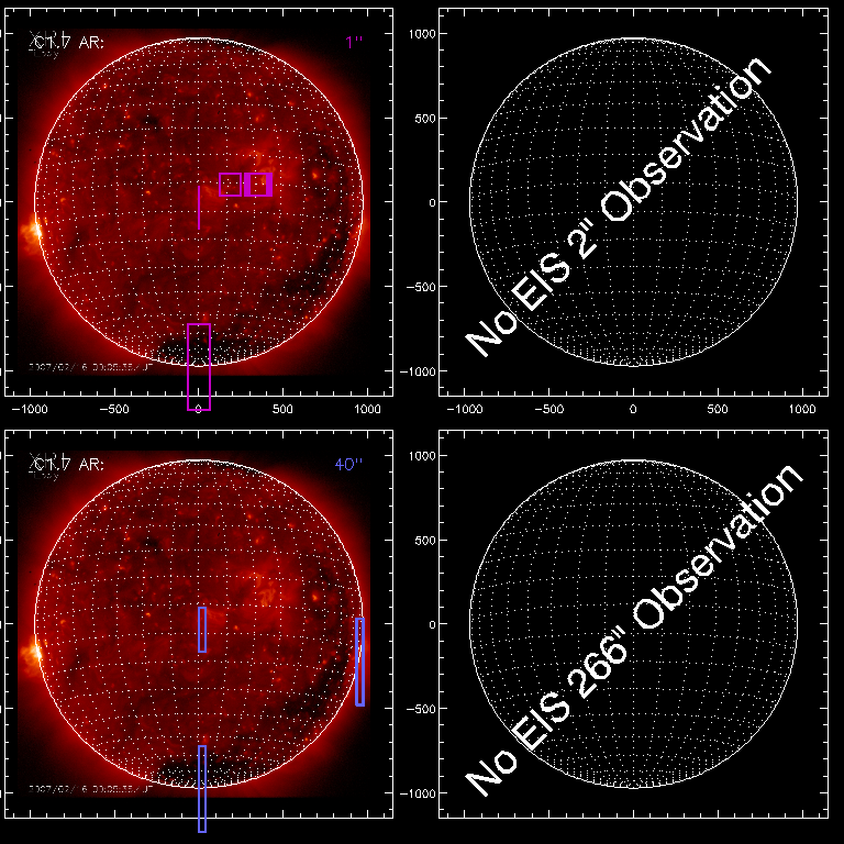 EIS Observation timeline overlay to GOES-Xray curve Code 1" 2" 40" 266" EIS Observations list for this event: STUDY ACRONYM ID DATE OBSERVED DESCRIPTION NOAA# TARGET 0 SYNOP001 | 1010 | 2007/02/15 17:51:34 | SYNOP001_40arcsec_1arcsec_30s_90s | | Quiet Sun TIMELINE ID DATE OBSERVED FITS FILE XCEN (+W/-E) YCEN (+N/-S) DUR ----------------------------------------------------------------------------------------------------------------- 1010 | 2007/02/15 17:51:34.000 | eis_l0_20070215_175134.fits.gz | 20.91 | -36.80 | 2m2s 1010 | 2007/02/15 17:53:50.000 | eis_l0_20070215_175350.fits.gz | 1.15 | -36.72 | 2m1s 1 HPW008_FULLCCD_RAST | 1011 | 2007/02/15 18:00:13 | HPW008_FULLCCD_RAST_128x128_25s_SLIT1 | | Active Region TIMELINE ID DATE OBSERVED FITS FILE XCEN (+W/-E) YCEN (+N/-S) DUR ----------------------------------------------------------------------------------------------------------------- 1011 | 2007/02/15 18:00:13.000 | eis_l0_20070215_180013.fits.gz | 340.36 | 101.55 | 1h20m40s 1011 | 2007/02/15 19:21:00.000 | eis_l0_20070215_192100.fits.gz | 353.36 | 101.09 | 1h36m32s 1011 | 2007/02/15 20:57:39.000 | eis_l0_20070215_205739.fits.gz | 367.14 | 100.43 | 1h30m52s 1011 | 2007/02/15 22:28:38.000 | eis_l0_20070215_222838.fits.gz | 188.51 | 99.62 | 1h36m19s 2 SYNOP001 | 1012 | 2007/02/16 00:05:34 | SYNOP001_40arcsec_1arcsec_30s_90s | | Quiet Sun TIMELINE ID DATE OBSERVED FITS FILE XCEN (+W/-E) YCEN (+N/-S) DUR ----------------------------------------------------------------------------------------------------------------- 1012 | 2007/02/16 00:05:34.000 | eis_l0_20070216_000534.fits.gz | 20.87 | -36.88 | 2m2s 1012 | 2007/02/16 00:07:50.000 | eis_l0_20070216_000750.fits.gz | 1.19 | -36.80 | 2m1s 3 VHH001_SLOT40_30M | 1013 | 2007/02/16 00:15:34 | 40 arcsec slot study for waves and spi | | Quiet Sun TIMELINE ID DATE OBSERVED FITS FILE XCEN (+W/-E) YCEN (+N/-S) DUR ----------------------------------------------------------------------------------------------------------------- 1013 | 2007/02/16 00:15:34.000 | eis_l0_20070216_001534.fits.gz | 20.95 | -981.77 | 26m33s 1013 | 2007/02/16 00:42:13.000 | eis_l0_20070216_004213.fits.gz | 20.91 | -981.69 | 26m33s 1013 | 2007/02/16 01:08:52.000 | eis_l0_20070216_010852.fits.gz | 20.87 | -981.69 | 26m32s 1013 | 2007/02/16 01:35:30.000 | eis_l0_20070216_013530.fits.gz | 20.91 | -981.69 | 26m33s 1013 | 2007/02/16 02:02:09.000 | eis_l0_20070216_020209.fits.gz | 20.87 | -981.73 | 26m33s 1013 | 2007/02/16 02:28:48.000 | eis_l0_20070216_022848.fits.gz | 20.91 | -981.62 | 26m33s 1013 | 2007/02/16 02:55:27.000 | eis_l0_20070216_025527.fits.gz | 20.91 | -981.77 | 26m33s 4 HPW004_QS_RAST_120m | 1014 | 2007/02/16 03:31:20 | HPW004_QS_RAST_120m | | Quiet Sun TIMELINE ID DATE OBSERVED FITS FILE XCEN (+W/-E) YCEN (+N/-S) DUR ----------------------------------------------------------------------------------------------------------------- 1014 | 2007/02/16 03:31:20.000 | eis_l0_20070216_033120.fits.gz | 2.15 | -981.77 | 2h12m2s 5 SYNOP001 | 1032 | 2007/02/16 06:03:35 | SYNOP001_40arcsec_1arcsec_30s_90s | | Quiet Sun TIMELINE ID DATE OBSERVED FITS FILE XCEN (+W/-E) YCEN (+N/-S) DUR ----------------------------------------------------------------------------------------------------------------- 1032 | 2007/02/16 06:03:35.000 | eis_l0_20070216_060335.fits.gz | 20.85 | -36.65 | 2m2s 1032 | 2007/02/16 06:05:51.000 | eis_l0_20070216_060551.fits.gz | 1.15 | -36.72 | 2m1s 6 VHH001_SLOT40_30M | 1016 | 2007/02/16 06:12:34 | 40 arcsec slot study for waves and spi | | Quiet Sun TIMELINE ID DATE OBSERVED FITS FILE XCEN (+W/-E) YCEN (+N/-S) DUR ----------------------------------------------------------------------------------------------------------------- 1016 | 2007/02/16 06:12:34.000 | eis_l0_20070216_061234.fits.gz | 955.24 | -224.98 | 26m33s 1016 | 2007/02/16 06:39:13.000 | eis_l0_20070216_063913.fits.gz | 955.91 | -225.52 | 26m33s 1016 | 2007/02/16 07:05:52.000 | eis_l0_20070216_070552.fits.gz | 956.57 | -225.82 | 26m33s 1016 | 2007/02/16 07:32:30.000 | eis_l0_20070216_073230.fits.gz | 957.21 | -226.44 | 26m33s 1016 | 2007/02/16 07:59:09.000 | eis_l0_20070216_075909.fits.gz | 957.84 | -226.83 | 26m33s 1016 | 2007/02/16 08:25:48.000 | eis_l0_20070216_082548.fits.gz | 958.48 | -227.37 | 26m33s 1016 | 2007/02/16 08:52:27.000 | eis_l0_20070216_085227.fits.gz | 959.12 | -227.83 | 26m32s 1016 | 2007/02/16 09:19:05.000 | eis_l0_20070216_091905.fits.gz | 959.70 | -228.22 | 26m33s : Check study information : Download file : View thumbnails For this event, also check for: