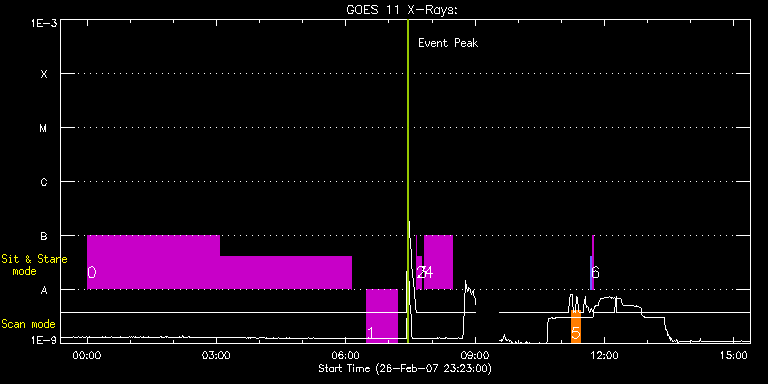 EIS Observation timeline overlay to GOES-Xray curve Code 1" 2" 40" 266" EIS Observations list for this event: STUDY ACRONYM ID DATE OBSERVED DESCRIPTION NOAA# TARGET 0 JTM006 | 1221 | 2007/02/27 00:00:12 | JTM006_120exp_512y_90s_slit1_ss | | Quiet Sun TIMELINE ID DATE OBSERVED FITS FILE XCEN (+W/-E) YCEN (+N/-S) DUR ----------------------------------------------------------------------------------------------------------------- 1221 | 2007/02/27 00:00:12.000 | eis_l0_20070227_000012.fits.gz | 392.99 | -169.74 | 3h3m46s 1221 | 2007/02/27 03:04:02.000 | eis_l0_20070227_030402.fits.gz | -11.79 | -36.07 | 3h3m46s 1 TW_AR110 | 1230 | 2007/02/27 06:28:12 | TW; active region study (1) | | Active Region TIMELINE ID DATE OBSERVED FITS FILE XCEN (+W/-E) YCEN (+N/-S) DUR ----------------------------------------------------------------------------------------------------------------- 1230 | 2007/02/27 06:28:12.000 | eis_l0_20070227_062812.fits.gz | 876.42 | -176.46 | 43m9s 2 regcal014 | 1214 | 2007/02/27 07:38:11 | ADC offset | | Engineering TIMELINE ID DATE OBSERVED FITS FILE XCEN (+W/-E) YCEN (+N/-S) DUR ----------------------------------------------------------------------------------------------------------------- 1214 | 2007/02/27 07:38:11.000 | eis_l0_20070227_073811.fits.gz | 905.14 | -177.54 | 3 regcal015 | 1215 | 2007/02/27 07:40:11 | Dark current, hot pixels and column de | | Engineering TIMELINE ID DATE OBSERVED FITS FILE XCEN (+W/-E) YCEN (+N/-S) DUR ----------------------------------------------------------------------------------------------------------------- 1215 | 2007/02/27 07:40:11.000 | eis_l0_20070227_074011.fits.gz | 905.39 | -177.66 | 4m25s 4 regcal016 | 1216 | 2007/02/27 07:49:11 | Dark current, hot pixels and column de | | Engineering TIMELINE ID DATE OBSERVED FITS FILE XCEN (+W/-E) YCEN (+N/-S) DUR ----------------------------------------------------------------------------------------------------------------- 1216 | 2007/02/27 07:49:11.000 | eis_l0_20070227_074911.fits.gz | 906.53 | -177.82 | 38m32s 5 HH_AR+FLR_RAS_N03 | 1233 | 2007/02/27 11:13:32 | HH_AR+FLR_RAS_N03 (EWxNS=240"x240", 5. | 944 | Active Region TIMELINE ID DATE OBSERVED FITS FILE XCEN (+W/-E) YCEN (+N/-S) DUR ----------------------------------------------------------------------------------------------------------------- 1233 | 2007/02/27 11:13:32.000 | eis_l0_20070227_111332.fits.gz | -261.95 | 23.36 | 13m7s 6 SYNOP001 | 1234 | 2007/02/27 11:40:24 | SYNOP001_40arcsec_1arcsec_30s_90s | | Quiet Sun TIMELINE ID DATE OBSERVED FITS FILE XCEN (+W/-E) YCEN (+N/-S) DUR ----------------------------------------------------------------------------------------------------------------- 1234 | 2007/02/27 11:40:24.000 | eis_l0_20070227_114024.fits.gz | 20.93 | 36.20 | 2m1s 1234 | 2007/02/27 11:42:39.000 | eis_l0_20070227_114239.fits.gz | 1.15 | 36.32 | 2m2s : Check study information : Download file : View thumbnails For this event, also check for: