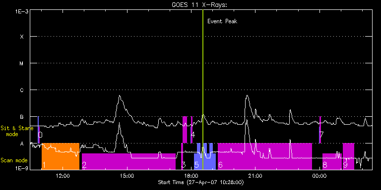 EIS Observation timeline overlay to GOES-Xray curve Code 1" 2" 40" 266" EIS Observations list for this event: STUDY ACRONYM ID DATE OBSERVED DESCRIPTION NOAA# TARGET 0 SYNOP001 | 2395 | 2007/04/27 10:50:13 | SYNOP001_40arcsec_1arcsec_30s_90s | | Quiet Sun TIMELINE ID DATE OBSERVED FITS FILE XCEN (+W/-E) YCEN (+N/-S) DUR ----------------------------------------------------------------------------------------------------------------- 2395 | 2007/04/27 10:50:13.000 | eis_l0_20070427_105013.fits.gz | 0.37 | 57.05 | 2m1s 2395 | 2007/04/27 10:52:28.000 | eis_l0_20070427_105228.fits.gz | 0.38 | 57.07 | 2m1s 1 fil_rast_s2 | 2397 | 2007/04/27 11:01:27 | Simple and quick 240 arcsec raster for | | Filament TIMELINE ID DATE OBSERVED FITS FILE XCEN (+W/-E) YCEN (+N/-S) DUR ----------------------------------------------------------------------------------------------------------------- 2397 | 2007/04/27 11:01:27.000 | eis_l0_20070427_110127.fits.gz | -772.77 | -391.82 | 1h43m59s 2 GAD002_AR_rast | 2399 | 2007/04/27 12:53:27 | GAD002_AR_rast | | Active Region TIMELINE ID DATE OBSERVED FITS FILE XCEN (+W/-E) YCEN (+N/-S) DUR ----------------------------------------------------------------------------------------------------------------- 2399 | 2007/04/27 12:53:27.000 | eis_l0_20070427_125327.fits.gz | -756.09 | -382.45 | 4h22m41s 3 PRY_fast_dens_v2 | 2400 | 2007/04/27 17:32:12 | High cadence sit-and-stare in ARs (imp | | Active Region TIMELINE ID DATE OBSERVED FITS FILE XCEN (+W/-E) YCEN (+N/-S) DUR ----------------------------------------------------------------------------------------------------------------- 2400 | 2007/04/27 17:32:12.000 | eis_l0_20070427_173212.fits.gz | -744.50 | -363.82 | 4m28s 2400 | 2007/04/27 17:36:43.000 | eis_l0_20070427_173643.fits.gz | -744.70 | -363.98 | 10m43s 4 SYNOP001 | 2401 | 2007/04/27 17:58:34 | SYNOP001_40arcsec_1arcsec_30s_90s | | Quiet Sun TIMELINE ID DATE OBSERVED FITS FILE XCEN (+W/-E) YCEN (+N/-S) DUR ----------------------------------------------------------------------------------------------------------------- 2401 | 2007/04/27 17:58:34.000 | eis_l0_20070427_175834.fits.gz | 0.59 | 57.21 | 2m1s 2401 | 2007/04/27 18:00:49.000 | eis_l0_20070427_180049.fits.gz | 0.41 | 57.19 | 2m1s 5 Slot_raster | 2402 | 2007/04/27 18:08:34 | Slot raster | 953 | Quiet Sun TIMELINE ID DATE OBSERVED FITS FILE XCEN (+W/-E) YCEN (+N/-S) DUR ----------------------------------------------------------------------------------------------------------------- 2402 | 2007/04/27 18:08:34.000 | eis_l0_20070427_180834.fits.gz | -720.87 | -311.03 | 8m28s 2402 | 2007/04/27 18:17:06.000 | eis_l0_20070427_181706.fits.gz | -720.12 | -310.45 | 8m29s 2402 | 2007/04/27 18:25:40.000 | eis_l0_20070427_182540.fits.gz | -719.31 | -310.02 | 8m28s 2402 | 2007/04/27 18:34:13.000 | eis_l0_20070427_183413.fits.gz | -718.46 | -309.57 | 8m29s 2402 | 2007/04/27 18:42:46.000 | eis_l0_20070427_184246.fits.gz | -717.73 | -309.13 | 8m28s 2402 | 2007/04/27 18:51:19.000 | eis_l0_20070427_185119.fits.gz | -716.93 | -308.77 | 8m28s 2402 | 2007/04/27 18:59:52.000 | eis_l0_20070427_185952.fits.gz | -716.13 | -308.27 | 8m28s 6 GAD002_AR_rast | 2403 | 2007/04/27 19:15:19 | GAD002_AR_rast | | Active Region TIMELINE ID DATE OBSERVED FITS FILE XCEN (+W/-E) YCEN (+N/-S) DUR ----------------------------------------------------------------------------------------------------------------- 2403 | 2007/04/27 19:15:19.000 | eis_l0_20070427_191519.fits.gz | -720.60 | -362.97 | 4h22m42s 7 SYNOP001 | 2404 | 2007/04/27 23:58:34 | SYNOP001_40arcsec_1arcsec_30s_90s | | Quiet Sun TIMELINE ID DATE OBSERVED FITS FILE XCEN (+W/-E) YCEN (+N/-S) DUR ----------------------------------------------------------------------------------------------------------------- 2404 | 2007/04/27 23:58:34.000 | eis_l0_20070427_235834.fits.gz | 0.52 | 57.18 | 2m1s 2404 | 2007/04/28 00:00:49.000 | eis_l0_20070428_000049.fits.gz | 0.54 | 57.20 | 2m2s 8 RED_SUM_EIS_RAST | 2405 | 2007/04/28 00:08:13 | AVERAGE DOPPLER SHIFT IN QS AND AR | | Quiet Sun TIMELINE ID DATE OBSERVED FITS FILE XCEN (+W/-E) YCEN (+N/-S) DUR ----------------------------------------------------------------------------------------------------------------- 2405 | 2007/04/28 00:08:13.000 | eis_l0_20070428_000813.fits.gz | 569.44 | 557.46 | 53m23s 9 RED_SUM_EIS_RAST | 2406 | 2007/04/28 01:06:12 | AVERAGE DOPPLER SHIFT IN QS AND AR | | Quiet Sun TIMELINE ID DATE OBSERVED FITS FILE XCEN (+W/-E) YCEN (+N/-S) DUR ----------------------------------------------------------------------------------------------------------------- 2406 | 2007/04/28 01:06:12.000 | eis_l0_20070428_010612.fits.gz | 658.75 | 446.36 | 30m30s : Check study information : Download file : View thumbnails For this event, also check for: