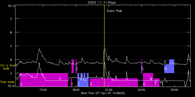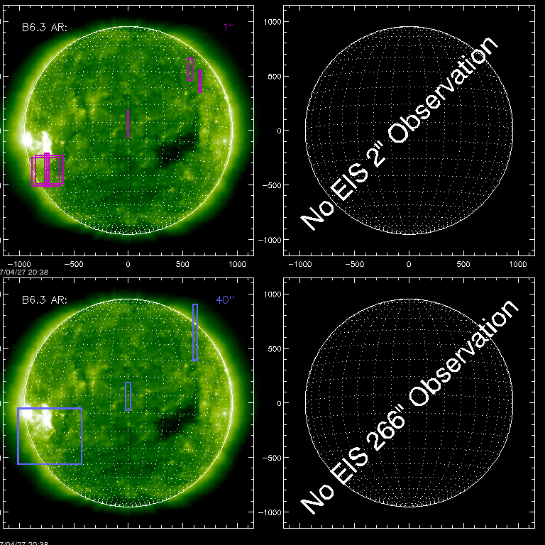 EIS Observation timeline overlay to GOES-Xray curve Code 1" 2" 40" 266" EIS Observations list for this event: STUDY ACRONYM ID DATE OBSERVED DESCRIPTION NOAA# TARGET 0 GAD002_AR_rast | 2399 | 2007/04/27 12:53:27 | GAD002_AR_rast | | Active Region TIMELINE ID DATE OBSERVED FITS FILE XCEN (+W/-E) YCEN (+N/-S) DUR ----------------------------------------------------------------------------------------------------------------- 2399 | 2007/04/27 12:53:27.000 | eis_l0_20070427_125327.fits.gz | -756.09 | -382.45 | 4h22m41s 1 PRY_fast_dens_v2 | 2400 | 2007/04/27 17:32:12 | High cadence sit-and-stare in ARs (imp | | Active Region TIMELINE ID DATE OBSERVED FITS FILE XCEN (+W/-E) YCEN (+N/-S) DUR ----------------------------------------------------------------------------------------------------------------- 2400 | 2007/04/27 17:32:12.000 | eis_l0_20070427_173212.fits.gz | -744.50 | -363.82 | 4m28s 2400 | 2007/04/27 17:36:43.000 | eis_l0_20070427_173643.fits.gz | -744.70 | -363.98 | 10m43s 2 SYNOP001 | 2401 | 2007/04/27 17:58:34 | SYNOP001_40arcsec_1arcsec_30s_90s | | Quiet Sun TIMELINE ID DATE OBSERVED FITS FILE XCEN (+W/-E) YCEN (+N/-S) DUR ----------------------------------------------------------------------------------------------------------------- 2401 | 2007/04/27 17:58:34.000 | eis_l0_20070427_175834.fits.gz | 0.59 | 57.21 | 2m1s 2401 | 2007/04/27 18:00:49.000 | eis_l0_20070427_180049.fits.gz | 0.41 | 57.19 | 2m1s 3 Slot_raster | 2402 | 2007/04/27 18:08:34 | Slot raster | 953 | Quiet Sun TIMELINE ID DATE OBSERVED FITS FILE XCEN (+W/-E) YCEN (+N/-S) DUR ----------------------------------------------------------------------------------------------------------------- 2402 | 2007/04/27 18:08:34.000 | eis_l0_20070427_180834.fits.gz | -720.87 | -311.03 | 8m28s 2402 | 2007/04/27 18:17:06.000 | eis_l0_20070427_181706.fits.gz | -720.12 | -310.45 | 8m29s 2402 | 2007/04/27 18:25:40.000 | eis_l0_20070427_182540.fits.gz | -719.31 | -310.02 | 8m28s 2402 | 2007/04/27 18:34:13.000 | eis_l0_20070427_183413.fits.gz | -718.46 | -309.57 | 8m29s 2402 | 2007/04/27 18:42:46.000 | eis_l0_20070427_184246.fits.gz | -717.73 | -309.13 | 8m28s 2402 | 2007/04/27 18:51:19.000 | eis_l0_20070427_185119.fits.gz | -716.93 | -308.77 | 8m28s 2402 | 2007/04/27 18:59:52.000 | eis_l0_20070427_185952.fits.gz | -716.13 | -308.27 | 8m28s 4 GAD002_AR_rast | 2403 | 2007/04/27 19:15:19 | GAD002_AR_rast | | Active Region TIMELINE ID DATE OBSERVED FITS FILE XCEN (+W/-E) YCEN (+N/-S) DUR ----------------------------------------------------------------------------------------------------------------- 2403 | 2007/04/27 19:15:19.000 | eis_l0_20070427_191519.fits.gz | -720.60 | -362.97 | 4h22m42s 5 SYNOP001 | 2404 | 2007/04/27 23:58:34 | SYNOP001_40arcsec_1arcsec_30s_90s | | Quiet Sun TIMELINE ID DATE OBSERVED FITS FILE XCEN (+W/-E) YCEN (+N/-S) DUR ----------------------------------------------------------------------------------------------------------------- 2404 | 2007/04/27 23:58:34.000 | eis_l0_20070427_235834.fits.gz | 0.52 | 57.18 | 2m1s 2404 | 2007/04/28 00:00:49.000 | eis_l0_20070428_000049.fits.gz | 0.54 | 57.20 | 2m2s 6 RED_SUM_EIS_RAST | 2405 | 2007/04/28 00:08:13 | AVERAGE DOPPLER SHIFT IN QS AND AR | | Quiet Sun TIMELINE ID DATE OBSERVED FITS FILE XCEN (+W/-E) YCEN (+N/-S) DUR ----------------------------------------------------------------------------------------------------------------- 2405 | 2007/04/28 00:08:13.000 | eis_l0_20070428_000813.fits.gz | 569.44 | 557.46 | 53m23s 7 RED_SUM_EIS_RAST | 2406 | 2007/04/28 01:06:12 | AVERAGE DOPPLER SHIFT IN QS AND AR | | Quiet Sun TIMELINE ID DATE OBSERVED FITS FILE XCEN (+W/-E) YCEN (+N/-S) DUR ----------------------------------------------------------------------------------------------------------------- 2406 | 2007/04/28 01:06:12.000 | eis_l0_20070428_010612.fits.gz | 658.75 | 446.36 | 30m30s 8 VHH001_SLOT40_30M | 2415 | 2007/04/28 02:04:33 | 40 arcsec slot study for waves and spi | | Quiet Sun TIMELINE ID DATE OBSERVED FITS FILE XCEN (+W/-E) YCEN (+N/-S) DUR ----------------------------------------------------------------------------------------------------------------- 2415 | 2007/04/28 02:04:33.000 | eis_l0_20070428_020433.fits.gz | 612.65 | 645.45 | 26m33s 2415 | 2007/04/28 02:31:12.000 | eis_l0_20070428_023112.fits.gz | 615.20 | 646.72 | 26m33s : Check study information : Download file : View thumbnails For this event, also check for: