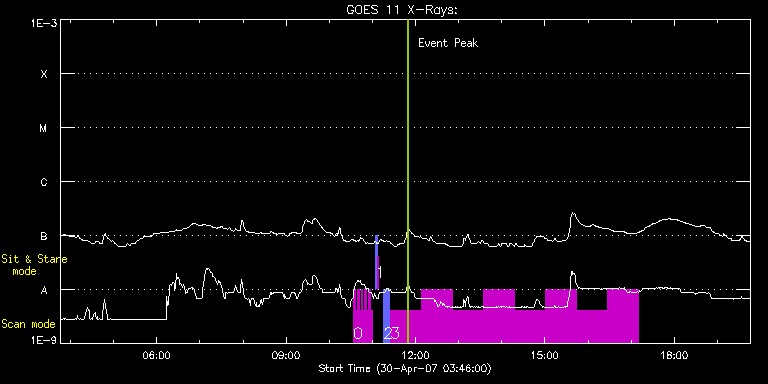 EIS Observation timeline overlay to GOES-Xray curve Code 1" 2" 40" 266" EIS Observations list for this event: STUDY ACRONYM ID DATE OBSERVED DESCRIPTION NOAA# TARGET 0 HH_AR+FLR_RAS_H01 | 2420 | 2007/04/30 10:33:35 | HH_AR+FLR_RAS_H01 (EWxNS=240"x240", 5. | 953 | Active Region TIMELINE ID DATE OBSERVED FITS FILE XCEN (+W/-E) YCEN (+N/-S) DUR ----------------------------------------------------------------------------------------------------------------- 2420 | 2007/04/30 10:33:35.000 | eis_l0_20070430_103335.fits.gz | -277.37 | -121.69 | 2m36s 2420 | 2007/04/30 10:36:14.000 | eis_l0_20070430_103614.fits.gz | -276.97 | -121.45 | 2m37s 2420 | 2007/04/30 10:38:54.000 | eis_l0_20070430_103854.fits.gz | -276.62 | -121.31 | 2m36s 2420 | 2007/04/30 10:41:33.000 | eis_l0_20070430_104133.fits.gz | -276.19 | -121.14 | 2m36s 2420 | 2007/04/30 10:44:12.000 | eis_l0_20070430_104412.fits.gz | -275.87 | -120.93 | 2m36s 2420 | 2007/04/30 10:46:51.000 | eis_l0_20070430_104651.fits.gz | -275.50 | -120.74 | 2m37s 2420 | 2007/04/30 10:49:31.000 | eis_l0_20070430_104931.fits.gz | -275.13 | -120.49 | 2m36s 2420 | 2007/04/30 10:52:10.000 | eis_l0_20070430_105210.fits.gz | -274.73 | -120.37 | 2m36s 2420 | 2007/04/30 10:54:49.000 | eis_l0_20070430_105449.fits.gz | -274.25 | -120.23 | 2m37s 2420 | 2007/04/30 10:57:29.000 | eis_l0_20070430_105729.fits.gz | -273.97 | -119.99 | 2m36s 1 SYNOP001 | 2421 | 2007/04/30 11:04:34 | SYNOP001_40arcsec_1arcsec_30s_90s | | Quiet Sun TIMELINE ID DATE OBSERVED FITS FILE XCEN (+W/-E) YCEN (+N/-S) DUR ----------------------------------------------------------------------------------------------------------------- 2421 | 2007/04/30 11:04:34.000 | eis_l0_20070430_110434.fits.gz | 0.44 | 45.62 | 2m1s 2421 | 2007/04/30 11:06:49.000 | eis_l0_20070430_110649.fits.gz | 0.36 | 45.61 | 2m1s 2 Slot_raster | 2422 | 2007/04/30 11:15:33 | Slot raster | 953 | Quiet Sun TIMELINE ID DATE OBSERVED FITS FILE XCEN (+W/-E) YCEN (+N/-S) DUR ----------------------------------------------------------------------------------------------------------------- 2422 | 2007/04/30 11:15:33.000 | eis_l0_20070430_111533.fits.gz | -249.58 | -64.38 | 8m28s 3 TW_AR110 | 2423 | 2007/04/30 11:25:19 | TW; active region study (1) | | Active Region TIMELINE ID DATE OBSERVED FITS FILE XCEN (+W/-E) YCEN (+N/-S) DUR ----------------------------------------------------------------------------------------------------------------- 2423 | 2007/04/30 11:25:19.000 | eis_l0_20070430_112519.fits.gz | -265.13 | -111.57 | 43m8s 2423 | 2007/04/30 12:08:29.000 | eis_l0_20070430_120829.fits.gz | -258.82 | -108.29 | 43m8s 2423 | 2007/04/30 12:51:40.000 | eis_l0_20070430_125140.fits.gz | -252.55 | -105.22 | 43m7s 2423 | 2007/04/30 13:34:50.000 | eis_l0_20070430_133450.fits.gz | -246.18 | -101.93 | 43m8s 2423 | 2007/04/30 14:18:01.000 | eis_l0_20070430_141801.fits.gz | -239.86 | -98.74 | 43m8s 2423 | 2007/04/30 15:01:12.000 | eis_l0_20070430_150112.fits.gz | -233.51 | -95.52 | 43m8s 2423 | 2007/04/30 15:44:23.000 | eis_l0_20070430_154423.fits.gz | -227.14 | -92.30 | 43m7s 2423 | 2007/04/30 16:27:33.000 | eis_l0_20070430_162733.fits.gz | -220.80 | -84.99 | 43m8s : Check study information : Download file : View thumbnails For this event, also check for: