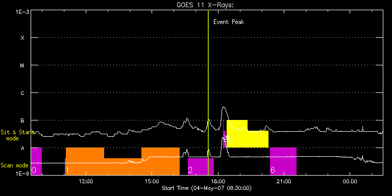 EIS Observation timeline overlay to GOES-Xray curve Code 1" 2" 40" 266" EIS Observations list for this event: STUDY ACRONYM ID DATE OBSERVED DESCRIPTION NOAA# TARGET 0 TW_AR111 | 2532 | 2007/05/04 09:31:57 | TW active regio iron study | | Active Region TIMELINE ID DATE OBSERVED FITS FILE XCEN (+W/-E) YCEN (+N/-S) DUR ----------------------------------------------------------------------------------------------------------------- 2532 | 2007/05/04 09:31:57.000 | eis_l0_20070504_093157.fits.gz | 612.50 | 287.50 | 27m57s 1 coronal_wave_study | 2533 | 2007/05/04 11:03:34 | coronal_wave_study | | Quiet Sun TIMELINE ID DATE OBSERVED FITS FILE XCEN (+W/-E) YCEN (+N/-S) DUR ----------------------------------------------------------------------------------------------------------------- 2533 | 2007/05/04 11:03:34.000 | eis_l0_20070504_110334.fits.gz | 584.06 | 336.92 | 1m33s 2533 | 2007/05/04 11:05:33.000 | eis_l0_20070504_110533.fits.gz | 572.76 | 331.35 | 1h43m9s 2533 | 2007/05/04 12:48:46.000 | eis_l0_20070504_124846.fits.gz | 585.05 | 337.14 | 1h43m8s 2533 | 2007/05/04 14:31:58.000 | eis_l0_20070504_143158.fits.gz | 597.21 | 342.77 | 1h43m8s 2 GAD001_AR_rast | 2534 | 2007/05/04 16:37:57 | GAD001_AR_rast | | Active Region TIMELINE ID DATE OBSERVED FITS FILE XCEN (+W/-E) YCEN (+N/-S) DUR ----------------------------------------------------------------------------------------------------------------- 2534 | 2007/05/04 16:37:57.000 | eis_l0_20070504_163757.fits.gz | 609.87 | 284.70 | 1h10m39s 3 regcal014 | 2535 | 2007/05/04 18:14:11 | ADC offset | | Engineering TIMELINE ID DATE OBSERVED FITS FILE XCEN (+W/-E) YCEN (+N/-S) DUR ----------------------------------------------------------------------------------------------------------------- 2535 | 2007/05/04 18:14:11.000 | eis_l0_20070504_181411.fits.gz | 15.09 | 116.89 | 4 regcal015 | 2536 | 2007/05/04 18:15:21 | Dark current, hot pixels and column de | | Engineering TIMELINE ID DATE OBSERVED FITS FILE XCEN (+W/-E) YCEN (+N/-S) DUR ----------------------------------------------------------------------------------------------------------------- 2536 | 2007/05/04 18:15:21.000 | eis_l0_20070504_181521.fits.gz | 15.05 | 116.87 | 4m25s 5 HPW014_SLOT266_MOVIE | 2537 | 2007/05/04 18:23:40 | HPW014_SLOT266_MOVIE | | Active Region TIMELINE ID DATE OBSERVED FITS FILE XCEN (+W/-E) YCEN (+N/-S) DUR ----------------------------------------------------------------------------------------------------------------- 2537 | 2007/05/04 18:23:40.000 | eis_l0_20070504_182340.fits.gz | 618.42 | 352.52 | 56m16s 2537 | 2007/05/04 19:19:59.000 | eis_l0_20070504_191959.fits.gz | 624.70 | 355.46 | 56m19s 6 GAD001_AR_rast | 2538 | 2007/05/04 20:22:33 | GAD001_AR_rast | | Active Region TIMELINE ID DATE OBSERVED FITS FILE XCEN (+W/-E) YCEN (+N/-S) DUR ----------------------------------------------------------------------------------------------------------------- 2538 | 2007/05/04 20:22:33.000 | eis_l0_20070504_202233.fits.gz | 635.29 | 296.48 | 1h10m41s : Check study information : Download file : View thumbnails For this event, also check for: