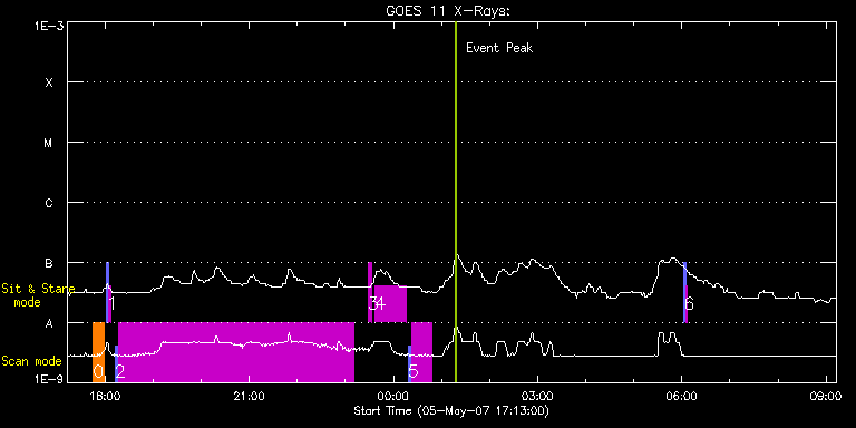 EIS Observation timeline overlay to GOES-Xray curve