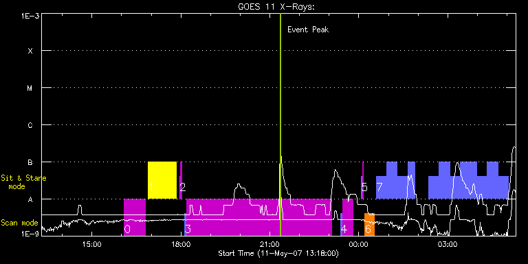 EIS Observation timeline overlay to GOES-Xray curve Code 1" 2" 40" 266" EIS Observations list for this event: STUDY ACRONYM ID DATE OBSERVED DESCRIPTION NOAA# TARGET 0 cam_artb_cds_c | 2649 | 2007/05/11 16:05:20 | Active_Region_Transient_Brightenings_v | | Active Region TIMELINE ID DATE OBSERVED FITS FILE XCEN (+W/-E) YCEN (+N/-S) DUR ----------------------------------------------------------------------------------------------------------------- 2649 | 2007/05/11 16:05:20.000 | eis_l0_20070511_160520.fits.gz | 5.74 | -16.19 | 43m8s 1 HPW014_SLOT266_MOVIE | 2650 | 2007/05/11 16:54:08 | HPW014_SLOT266_MOVIE | 955 | Active Region TIMELINE ID DATE OBSERVED FITS FILE XCEN (+W/-E) YCEN (+N/-S) DUR ----------------------------------------------------------------------------------------------------------------- 2650 | 2007/05/11 16:54:08.000 | eis_l0_20070511_165408.fits.gz | 3.63 | 56.17 | 56m19s 2 SYNOP001 | 2651 | 2007/05/11 17:57:28 | SYNOP001_40arcsec_1arcsec_30s_90s | | Quiet Sun TIMELINE ID DATE OBSERVED FITS FILE XCEN (+W/-E) YCEN (+N/-S) DUR ----------------------------------------------------------------------------------------------------------------- 2651 | 2007/05/11 17:57:28.000 | eis_l0_20070511_175728.fits.gz | 0.39 | 57.14 | 2m1s 2651 | 2007/05/11 17:59:43.000 | eis_l0_20070511_175943.fits.gz | 0.39 | 57.06 | 2m2s 3 AR_velocity_map | 2652 | 2007/05/11 18:07:35 | Detailed raster to produce active regi | 955 | Active Region TIMELINE ID DATE OBSERVED FITS FILE XCEN (+W/-E) YCEN (+N/-S) DUR ----------------------------------------------------------------------------------------------------------------- 2652 | 2007/05/11 18:07:35.000 | eis_l0_20070511_180735.fits.gz | 43.73 | 46.65 | 3m33s 2652 | 2007/05/11 18:11:25.000 | eis_l0_20070511_181125.fits.gz | 47.24 | 34.39 | 4h54m20s 4 Diag_40x180_s0_30s | 2653 | 2007/05/11 23:23:34 | Detailed diagnostic study, with slot c | 955 | Active Region TIMELINE ID DATE OBSERVED FITS FILE XCEN (+W/-E) YCEN (+N/-S) DUR ----------------------------------------------------------------------------------------------------------------- 2653 | 2007/05/11 23:23:34.000 | eis_l0_20070511_232334.fits.gz | 86.58 | 67.29 | 3m33s 2653 | 2007/05/11 23:27:24.000 | eis_l0_20070511_232724.fits.gz | 86.48 | 18.73 | 21m2s 5 SYNOP001 | 2654 | 2007/05/12 00:05:04 | SYNOP001_40arcsec_1arcsec_30s_90s | | Quiet Sun TIMELINE ID DATE OBSERVED FITS FILE XCEN (+W/-E) YCEN (+N/-S) DUR ----------------------------------------------------------------------------------------------------------------- 2654 | 2007/05/12 00:05:04.000 | eis_l0_20070512_000504.fits.gz | 0.44 | 57.07 | 2m2s 2654 | 2007/05/12 00:07:20.000 | eis_l0_20070512_000720.fits.gz | 0.52 | 57.08 | 2m1s 6 cam_artb_cds_a | 2655 | 2007/05/12 00:12:28 | Active Region Transient Brightenings | | Active Region TIMELINE ID DATE OBSERVED FITS FILE XCEN (+W/-E) YCEN (+N/-S) DUR ----------------------------------------------------------------------------------------------------------------- 2655 | 2007/05/12 00:12:28.000 | eis_l0_20070512_001228.fits.gz | 77.98 | 19.94 | 19m16s 7 cam_artb_cds_b | 2656 | 2007/05/12 00:35:20 | Active Region Transient Brightenings ( | 955 | Active Region TIMELINE ID DATE OBSERVED FITS FILE XCEN (+W/-E) YCEN (+N/-S) DUR ----------------------------------------------------------------------------------------------------------------- 2656 | 2007/05/12 00:35:20.000 | eis_l0_20070512_003520.fits.gz | 84.77 | 23.27 | 21m10s 2656 | 2007/05/12 00:56:33.000 | eis_l0_20070512_005633.fits.gz | 87.93 | 24.85 | 21m10s 2656 | 2007/05/12 01:17:47.000 | eis_l0_20070512_011747.fits.gz | 91.17 | 26.51 | 21m10s 2656 | 2007/05/12 01:39:00.000 | eis_l0_20070512_013900.fits.gz | 93.86 | -137.74 | 15m10s 2656 | 2007/05/12 02:21:27.000 | eis_l0_20070512_022127.fits.gz | 100.68 | 31.10 | 21m10s 2656 | 2007/05/12 02:42:40.000 | eis_l0_20070512_024240.fits.gz | 103.86 | 32.66 | 21m10s 2656 | 2007/05/12 03:03:54.000 | eis_l0_20070512_030354.fits.gz | 107.82 | 34.62 | 21m9s 2656 | 2007/05/12 03:25:07.000 | eis_l0_20070512_032507.fits.gz | 111.14 | 36.30 | 33m51s 2656 | 2007/05/12 03:59:01.000 | eis_l0_20070512_035901.fits.gz | 115.29 | 38.30 | 21m10s 2656 | 2007/05/12 04:20:14.000 | eis_l0_20070512_042014.fits.gz | 118.44 | 39.84 | 21m11s 2656 | 2007/05/12 04:41:28.000 | eis_l0_20070512_044128.fits.gz | 121.56 | 41.49 | 21m10s : Check study information : Download file : View thumbnails For this event, also check for: