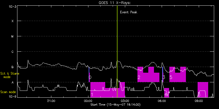 EIS Observation timeline overlay to GOES-Xray curve Code 1" 2" 40" 266" EIS Observations list for this event: STUDY ACRONYM ID DATE OBSERVED DESCRIPTION NOAA# TARGET 0 SYNOP001 | 2715 | 2007/05/16 00:02:34 | SYNOP001_40arcsec_1arcsec_30s_90s | | Quiet Sun TIMELINE ID DATE OBSERVED FITS FILE XCEN (+W/-E) YCEN (+N/-S) DUR ----------------------------------------------------------------------------------------------------------------- 2715 | 2007/05/16 00:02:34.000 | eis_l0_20070516_000234.fits.gz | 0.44 | 57.11 | 2m1s 2715 | 2007/05/16 00:04:49.000 | eis_l0_20070516_000449.fits.gz | 0.41 | 57.06 | 2m2s 1 GAD001_AR_rast | 2716 | 2007/05/16 00:12:13 | GAD001_AR_rast | 955 | Active Region TIMELINE ID DATE OBSERVED FITS FILE XCEN (+W/-E) YCEN (+N/-S) DUR ----------------------------------------------------------------------------------------------------------------- 2716 | 2007/05/16 00:12:13.000 | eis_l0_20070516_001213.fits.gz | 836.53 | 386.98 | 1h10m40s 2716 | 2007/05/16 01:22:55.000 | eis_l0_20070516_012255.fits.gz | 841.96 | 389.52 | 1h10m41s 2716 | 2007/05/16 02:33:39.000 | eis_l0_20070516_023339.fits.gz | 927.52 | -190.81 | 25m23s 2 HPW012_AR_SAS_060M | 2717 | 2007/05/16 04:01:19 | HPW012_AR_SAS_060M | | Active Region TIMELINE ID DATE OBSERVED FITS FILE XCEN (+W/-E) YCEN (+N/-S) DUR ----------------------------------------------------------------------------------------------------------------- 2717 | 2007/05/16 04:01:19.000 | eis_l0_20070516_040119.fits.gz | 832.77 | 414.42 | 26m21s 2717 | 2007/05/16 04:27:44.000 | eis_l0_20070516_042744.fits.gz | 834.76 | 415.31 | 26m22s 2717 | 2007/05/16 04:54:10.000 | eis_l0_20070516_045410.fits.gz | 836.66 | 416.21 | 26m21s 2717 | 2007/05/16 05:20:35.000 | eis_l0_20070516_052035.fits.gz | 838.52 | 417.02 | 26m22s 3 SYNOP001 | 2718 | 2007/05/16 06:02:34 | SYNOP001_40arcsec_1arcsec_30s_90s | | Quiet Sun TIMELINE ID DATE OBSERVED FITS FILE XCEN (+W/-E) YCEN (+N/-S) DUR ----------------------------------------------------------------------------------------------------------------- 2718 | 2007/05/16 06:02:34.000 | eis_l0_20070516_060234.fits.gz | 0.41 | 57.13 | 2m1s 2718 | 2007/05/16 06:04:49.000 | eis_l0_20070516_060449.fits.gz | 0.46 | 57.12 | 2m2s 4 HPW013_AR_RAS_23m | 2719 | 2007/05/16 06:12:12 | HPW013_AR_RAS_23m | | Active Region TIMELINE ID DATE OBSERVED FITS FILE XCEN (+W/-E) YCEN (+N/-S) DUR ----------------------------------------------------------------------------------------------------------------- 2719 | 2007/05/16 06:12:12.000 | eis_l0_20070516_061212.fits.gz | 819.47 | 406.29 | 21m38s 5 HPW012_AR_SAS_060M | 2720 | 2007/05/16 06:37:26 | HPW012_AR_SAS_060M | | Active Region TIMELINE ID DATE OBSERVED FITS FILE XCEN (+W/-E) YCEN (+N/-S) DUR ----------------------------------------------------------------------------------------------------------------- 2720 | 2007/05/16 06:37:26.000 | eis_l0_20070516_063726.fits.gz | 820.59 | 406.83 | 26m22s 2720 | 2007/05/16 07:03:52.000 | eis_l0_20070516_070352.fits.gz | 822.44 | 407.69 | 26m22s 2720 | 2007/05/16 07:30:18.000 | eis_l0_20070516_073018.fits.gz | 824.29 | 408.51 | 26m21s 6 TW_AR111 | 2721 | 2007/05/16 08:55:12 | TW active regio iron study | | Active Region TIMELINE ID DATE OBSERVED FITS FILE XCEN (+W/-E) YCEN (+N/-S) DUR ----------------------------------------------------------------------------------------------------------------- 2721 | 2007/05/16 08:55:12.000 | eis_l0_20070516_085512.fits.gz | 866.76 | 396.43 | 49m24s : Check study information : Download file : View thumbnails For this event, also check for: