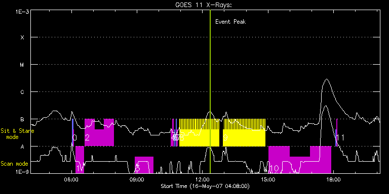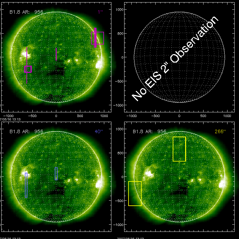 EIS Observation timeline overlay to GOES-Xray curve Code 1" 2" 40" 266" EIS Observations list for this event: STUDY ACRONYM ID DATE OBSERVED DESCRIPTION NOAA# TARGET 0 SYNOP001 | 2718 | 2007/05/16 06:02:34 | SYNOP001_40arcsec_1arcsec_30s_90s | | Quiet Sun TIMELINE ID DATE OBSERVED FITS FILE XCEN (+W/-E) YCEN (+N/-S) DUR ----------------------------------------------------------------------------------------------------------------- 2718 | 2007/05/16 06:02:34.000 | eis_l0_20070516_060234.fits.gz | 0.41 | 57.13 | 2m1s 2718 | 2007/05/16 06:04:49.000 | eis_l0_20070516_060449.fits.gz | 0.46 | 57.12 | 2m2s 1 HPW013_AR_RAS_23m | 2719 | 2007/05/16 06:12:12 | HPW013_AR_RAS_23m | | Active Region TIMELINE ID DATE OBSERVED FITS FILE XCEN (+W/-E) YCEN (+N/-S) DUR ----------------------------------------------------------------------------------------------------------------- 2719 | 2007/05/16 06:12:12.000 | eis_l0_20070516_061212.fits.gz | 819.47 | 406.29 | 21m38s 2 HPW012_AR_SAS_060M | 2720 | 2007/05/16 06:37:26 | HPW012_AR_SAS_060M | | Active Region TIMELINE ID DATE OBSERVED FITS FILE XCEN (+W/-E) YCEN (+N/-S) DUR ----------------------------------------------------------------------------------------------------------------- 2720 | 2007/05/16 06:37:26.000 | eis_l0_20070516_063726.fits.gz | 820.59 | 406.83 | 26m22s 2720 | 2007/05/16 07:03:52.000 | eis_l0_20070516_070352.fits.gz | 822.44 | 407.69 | 26m22s 2720 | 2007/05/16 07:30:18.000 | eis_l0_20070516_073018.fits.gz | 824.29 | 408.51 | 26m21s 3 TW_AR111 | 2721 | 2007/05/16 08:55:12 | TW active regio iron study | | Active Region TIMELINE ID DATE OBSERVED FITS FILE XCEN (+W/-E) YCEN (+N/-S) DUR ----------------------------------------------------------------------------------------------------------------- 2721 | 2007/05/16 08:55:12.000 | eis_l0_20070516_085512.fits.gz | 866.76 | 396.43 | 49m24s 4 regcal071 | 2722 | 2007/05/16 10:33:43 | Dark exposures, CCD bottom rows | | Engineering TIMELINE ID DATE OBSERVED FITS FILE XCEN (+W/-E) YCEN (+N/-S) DUR ----------------------------------------------------------------------------------------------------------------- 2722 | 2007/05/16 10:33:43.000 | eis_l0_20070516_103343.fits.gz | -616.71 | -302.03 | 2m1s 5 regcal072 | 2723 | 2007/05/16 10:37:42 | Dark exposures, top CCD rows | | Engineering TIMELINE ID DATE OBSERVED FITS FILE XCEN (+W/-E) YCEN (+N/-S) DUR ----------------------------------------------------------------------------------------------------------------- 2723 | 2007/05/16 10:37:42.000 | eis_l0_20070516_103742.fits.gz | -616.28 | -46.26 | 2m2s 6 IUU_SLOT_cntxt_AR_01 | 2724 | 2007/05/16 10:43:05 | Active Region context SLOT images. | | Active Region TIMELINE ID DATE OBSERVED FITS FILE XCEN (+W/-E) YCEN (+N/-S) DUR ----------------------------------------------------------------------------------------------------------------- 2724 | 2007/05/16 10:43:05.000 | eis_l0_20070516_104305.fits.gz | -630.25 | -181.26 | 1m6s 7 SYNOP001 | 2725 | 2007/05/16 10:46:44 | SYNOP001_40arcsec_1arcsec_30s_90s | | Quiet Sun TIMELINE ID DATE OBSERVED FITS FILE XCEN (+W/-E) YCEN (+N/-S) DUR ----------------------------------------------------------------------------------------------------------------- 2725 | 2007/05/16 10:46:44.000 | eis_l0_20070516_104644.fits.gz | 0.48 | 57.10 | 2m1s 2725 | 2007/05/16 10:48:59.000 | eis_l0_20070516_104859.fits.gz | 0.48 | 57.09 | 2m1s 8 Alignment_266 | 2726 | 2007/05/16 10:56:51 | Alignment slot 266 | | Quiet Sun TIMELINE ID DATE OBSERVED FITS FILE XCEN (+W/-E) YCEN (+N/-S) DUR ----------------------------------------------------------------------------------------------------------------- 2726 | 2007/05/16 10:56:51.000 | eis_l0_20070516_105651.fits.gz | 0.40 | 574.58 | 1m22s 2726 | 2007/05/16 10:58:55.000 | eis_l0_20070516_105855.fits.gz | 0.44 | 574.53 | 1m22s 2726 | 2007/05/16 11:00:58.000 | eis_l0_20070516_110058.fits.gz | 0.35 | 574.53 | 1m22s 2726 | 2007/05/16 11:03:02.000 | eis_l0_20070516_110302.fits.gz | 0.43 | 574.52 | 1m22s 2726 | 2007/05/16 11:05:06.000 | eis_l0_20070516_110506.fits.gz | 0.50 | 574.57 | 1m22s 2726 | 2007/05/16 11:07:10.000 | eis_l0_20070516_110710.fits.gz | 0.48 | 574.50 | 1m22s 2726 | 2007/05/16 11:09:14.000 | eis_l0_20070516_110914.fits.gz | 0.45 | 574.50 | 1m22s 2726 | 2007/05/16 11:11:17.000 | eis_l0_20070516_111117.fits.gz | 0.38 | 574.48 | 1m22s 2726 | 2007/05/16 11:13:21.000 | eis_l0_20070516_111321.fits.gz | 0.36 | 574.48 | 1m22s 2726 | 2007/05/16 11:15:25.000 | eis_l0_20070516_111525.fits.gz | 0.51 | 574.53 | 1m22s 2726 | 2007/05/16 11:17:29.000 | eis_l0_20070516_111729.fits.gz | 0.43 | 574.52 | 1m22s 2726 | 2007/05/16 11:19:33.000 | eis_l0_20070516_111933.fits.gz | 0.44 | 574.52 | 1m22s 2726 | 2007/05/16 11:21:37.000 | eis_l0_20070516_112137.fits.gz | 0.43 | 574.53 | 1m21s 2726 | 2007/05/16 11:23:40.000 | eis_l0_20070516_112340.fits.gz | 0.46 | 574.53 | 1m22s 2726 | 2007/05/16 11:25:44.000 | eis_l0_20070516_112544.fits.gz | 0.42 | 574.44 | 1m22s 2726 | 2007/05/16 11:27:48.000 | eis_l0_20070516_112748.fits.gz | 0.46 | 574.49 | 1m22s 2726 | 2007/05/16 11:29:51.000 | eis_l0_20070516_112951.fits.gz | 0.40 | 574.48 | 1m23s 2726 | 2007/05/16 11:31:55.000 | eis_l0_20070516_113155.fits.gz | 0.41 | 574.51 | 1m22s 2726 | 2007/05/16 11:33:59.000 | eis_l0_20070516_113359.fits.gz | 0.38 | 574.52 | 1m22s 2726 | 2007/05/16 11:36:03.000 | eis_l0_20070516_113603.fits.gz | 0.44 | 574.46 | 1m22s 2726 | 2007/05/16 11:38:07.000 | eis_l0_20070516_113807.fits.gz | 0.40 | 574.51 | 1m22s 2726 | 2007/05/16 11:40:11.000 | eis_l0_20070516_114011.fits.gz | 0.48 | 574.50 | 1m22s 2726 | 2007/05/16 11:42:15.000 | eis_l0_20070516_114215.fits.gz | 0.48 | 574.50 | 1m22s 2726 | 2007/05/16 11:44:18.000 | eis_l0_20070516_114418.fits.gz | 0.53 | 574.52 | 1m22s 2726 | 2007/05/16 11:46:22.000 | eis_l0_20070516_114622.fits.gz | 0.53 | 574.53 | 1m22s 2726 | 2007/05/16 11:48:26.000 | eis_l0_20070516_114826.fits.gz | 0.40 | 574.49 | 1m22s 2726 | 2007/05/16 11:50:30.000 | eis_l0_200705
