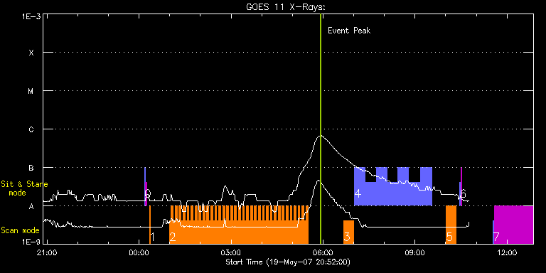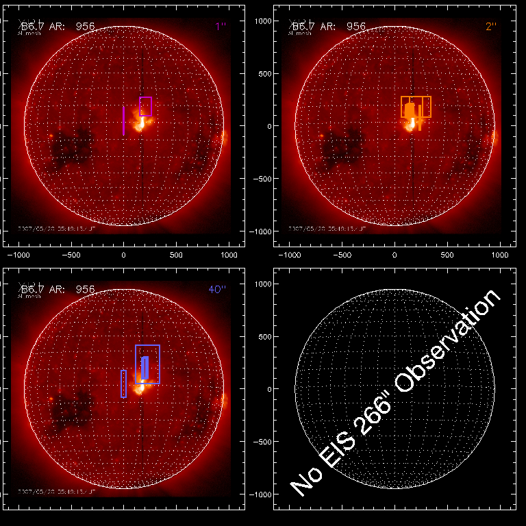EIS Observation timeline overlay to GOES-Xray curve Code 1" 2" 40" 266" EIS Observations list for this event: STUDY ACRONYM ID DATE OBSERVED DESCRIPTION NOAA# TARGET 0 SYNOP001 | 2777 | 2007/05/20 00:10:34 | SYNOP001_40arcsec_1arcsec_30s_90s | | Quiet Sun TIMELINE ID DATE OBSERVED FITS FILE XCEN (+W/-E) YCEN (+N/-S) DUR ----------------------------------------------------------------------------------------------------------------- 2777 | 2007/05/20 00:10:34.000 | eis_l0_20070520_001034.fits.gz | 0.46 | 45.51 | 2m1s 2777 | 2007/05/20 00:12:49.000 | eis_l0_20070520_001249.fits.gz | 0.49 | 45.59 | 2m1s 1 CAM_ARTB_RHESSI_a_1 | 2778 | 2007/05/20 00:20:26 | AR microflares and TR response - joint | | Active Region TIMELINE ID DATE OBSERVED FITS FILE XCEN (+W/-E) YCEN (+N/-S) DUR ----------------------------------------------------------------------------------------------------------------- 2778 | 2007/05/20 00:20:26.000 | eis_l0_20070520_002026.fits.gz | 241.13 | 73.34 | 1m55s 2 CAM_ARTB_RHESSI_b_1 | 2779 | 2007/05/20 00:59:00 | AR microflares and TR response - joint | | Active Region TIMELINE ID DATE OBSERVED FITS FILE XCEN (+W/-E) YCEN (+N/-S) DUR ----------------------------------------------------------------------------------------------------------------- 2779 | 2007/05/20 00:59:00.000 | eis_l0_20070520_005900.fits.gz | 121.59 | 133.67 | 3m50s 2779 | 2007/05/20 01:02:52.000 | eis_l0_20070520_010252.fits.gz | 122.10 | 133.89 | 3m51s 2779 | 2007/05/20 01:06:45.000 | eis_l0_20070520_010645.fits.gz | 122.74 | 134.22 | 3m50s 2779 | 2007/05/20 01:10:38.000 | eis_l0_20070520_011038.fits.gz | 123.31 | 134.47 | 3m50s 2779 | 2007/05/20 01:14:30.000 | eis_l0_20070520_011430.fits.gz | 123.86 | 134.78 | 3m50s 2779 | 2007/05/20 01:18:23.000 | eis_l0_20070520_011823.fits.gz | 124.44 | 135.02 | 3m50s 2779 | 2007/05/20 01:22:16.000 | eis_l0_20070520_012216.fits.gz | 125.03 | 135.39 | 3m50s 2779 | 2007/05/20 01:26:08.000 | eis_l0_20070520_012608.fits.gz | 125.65 | 135.63 | 3m50s 2779 | 2007/05/20 01:30:01.000 | eis_l0_20070520_013001.fits.gz | 126.23 | 135.98 | 3m49s 2779 | 2007/05/20 01:33:53.000 | eis_l0_20070520_013353.fits.gz | 126.86 | 136.27 | 3m50s 2779 | 2007/05/20 01:37:45.000 | eis_l0_20070520_013745.fits.gz | 127.30 | 136.46 | 3m51s 2779 | 2007/05/20 01:41:38.000 | eis_l0_20070520_014138.fits.gz | 128.00 | 136.92 | 3m50s 2779 | 2007/05/20 01:45:31.000 | eis_l0_20070520_014531.fits.gz | 128.56 | 137.18 | 3m50s 2779 | 2007/05/20 01:49:24.000 | eis_l0_20070520_014924.fits.gz | 129.23 | 137.46 | 3m50s 2779 | 2007/05/20 01:53:16.000 | eis_l0_20070520_015316.fits.gz | 129.77 | 137.71 | 3m50s 2779 | 2007/05/20 01:57:09.000 | eis_l0_20070520_015709.fits.gz | 130.35 | 137.98 | 3m50s 2779 | 2007/05/20 02:01:02.000 | eis_l0_20070520_020102.fits.gz | 130.98 | 138.26 | 3m50s 2779 | 2007/05/20 02:04:54.000 | eis_l0_20070520_020454.fits.gz | 131.49 | 138.53 | 3m50s 2779 | 2007/05/20 02:08:47.000 | eis_l0_20070520_020847.fits.gz | 132.13 | 138.88 | 3m50s 2779 | 2007/05/20 02:12:39.000 | eis_l0_20070520_021239.fits.gz | 132.71 | 139.12 | 3m51s 2779 | 2007/05/20 02:16:32.000 | eis_l0_20070520_021632.fits.gz | 133.37 | 139.41 | 3m50s 2779 | 2007/05/20 02:20:24.000 | eis_l0_20070520_022024.fits.gz | 133.91 | 139.68 | 3m51s 2779 | 2007/05/20 02:24:17.000 | eis_l0_20070520_022417.fits.gz | 134.52 | 139.99 | 3m50s 2779 | 2007/05/20 02:28:10.000 | eis_l0_20070520_022810.fits.gz | 135.02 | 140.26 | 3m50s 2779 | 2007/05/20 02:32:03.000 | eis_l0_20070520_023203.fits.gz | 135.68 | 140.60 | 3m50s 2779 | 2007/05/20 02:35:56.000 | eis_l0_20070520_023556.fits.gz | 136.26 | 140.86 | 3m50s 2779 | 2007/05/20 02:39:48.000 | eis_l0_20070520_023948.fits.gz | 136.85 | 141.14 | 3m50s 2779 | 2007/05/20 02:43:41.000 | eis_l0_20070520_024341.fits.gz | 137.45 | 141.49 | 3m50s 2779 | 2007/05/20 02:47:34.000 | eis_l0_20070520_024734.fits.gz | 138.03 | 141.74 | 3m50s 2779 | 2007/05/20 02:51:26.000 | eis_l0_20070520_025126.fits.gz | 138.62 | 142.02 | 3m50s 2779 | 2007/05/20 02:55:19.000 | eis_l0_20070520_025519.fits.gz | 139.07 | 142.32 | 3m50s 2779 | 2007/05/20 02:59:12.000 | eis_l0_20070520_025912.fits.gz | 139.78 | 142.62 | 3m50s 2779 | 2007/05/20 03:03:04.000 | eis_l0_20070520_030304.fits.gz | 140.38 | 142.94 | 3m50s 2779 | 2007/05/20 03:06:57.000 | eis_l0_20070520_030657.fits.gz | 140.94 | 143.23 | 3m50s 2779 | 2007/05/20 03:10:50.000 | eis_l0_20070520_031050.fits.gz | 141.55 | 143.48 | 3m50s 2779 | 2007/05/20 03:14:43.000 | eis_l0_20070520_031443.fits.gz | 142.06 | 143.70 | 3m50s 2779 | 2007/05/20 03:18:35.000 | eis_l0_20070520_031835.fits.gz | 142.59 | 144.14 | 3m50s 2779 | 2007/05/20 03:22:28.000 | eis_l0_20070520_032228.fits.gz | 143.29 | 144.43 | 3m50s 2779 | 2007/05/20 03:26:21.000 | eis_l0_20070520_032621.fits.gz | 143.94 | 144.70 | 3m50s 2779 | 2007/05/20 03:30:14.000 | eis_l0_20070520_033014.fits.gz | 144.48 | 144.94 | 3m50s 2779 | 2007/05/20 03:34:06.000 | eis_l0_20070520_033406.fits.gz | 145.09 | 145.23 | 3m50s 2779 | 2007/05/20 03:37:59.000 | eis_l0_20070520_033759.fits.gz | 145.63 | 145.50 | 3m50s 2779 | 2007/05/20 03:41:52.000 | eis_l0_20070520_034152.fits.gz | 146.29 | 145.80 | 3m50s 2779 | 2007/05/20 03:45:44.000 | eis_l0_20070520_034544.fits.gz | 146.78 | 146.04 | 3m50s 2779 | 2007/05/20 03:49:37.000 | eis_l0_20070520_034937.fits.gz | 147.38 | 146.32 | 3m50s 2779 | 2007/05/20 03:53:29.000 | eis_l0_20070520_035329.fits.gz | 147.93 | 146.57 | 3m50s 2779 | 2007/05/20 03:57:22.000 | eis_l0_20070520_035722.fits.gz | 148.58 | 146.96 | 3m50s 2779 | 2007/05/20 04:01:14.000 | eis_l0_20070520_040114.fits.gz | 149.08 | 147.15 | 3m51s 2779 | 2007/05/20 04:05:07.000 | eis_l0_20070520_040507.fits.gz | 149.66 | 147.53 | 3m50s 2779 | 2007/05/20 04:09:00.000 | eis_l0_20070520_040900.fits.gz | 150.32 | 147.81 | 3m50s 2779 | 2007/05/20 04:12:52.000 | eis_l0_20070520_041252.fits.gz | 150.94 | 148.08 | 3m50s 2779 | 2007/05/20 04:16:45.000 | eis_l0_20070520_041645.fits.gz | 151.43 | 148.37 | 3m50s 2779 | 2007/05/20 04:20:38.000 | eis_l0_200