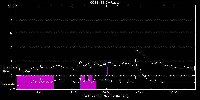 EIS Observation timeline overlay to GOES-Xray curve Code 1" 2" 40" 266" EIS Observations list for this event: STUDY ACRONYM ID DATE OBSERVED DESCRIPTION NOAA# TARGET 0 SYNOP002 | 2786 | 2007/05/20 16:02:12 | SYNOP002 | | Quiet Sun TIMELINE ID DATE OBSERVED FITS FILE XCEN (+W/-E) YCEN (+N/-S) DUR ----------------------------------------------------------------------------------------------------------------- 2786 | 2007/05/20 16:02:12.000 | eis_l0_20070520_160212.fits.gz | -173.88 | -38.60 | 3h15m20s 1 Diag_40x180_s0_30s | 2788 | 2007/05/20 21:38:19 | Detailed diagnostic study, with slot c | | Active Region TIMELINE ID DATE OBSERVED FITS FILE XCEN (+W/-E) YCEN (+N/-S) DUR ----------------------------------------------------------------------------------------------------------------- 2788 | 2007/05/20 21:38:19.000 | eis_l0_20070520_213819.fits.gz | 338.44 | 284.44 | 3m33s 2788 | 2007/05/20 21:42:08.000 | eis_l0_20070520_214208.fits.gz | 305.51 | 228.32 | 21m2s 2788 | 2007/05/20 22:03:14.000 | eis_l0_20070520_220314.fits.gz | 308.51 | 229.82 | 21m2s 2788 | 2007/05/20 22:24:20.000 | eis_l0_20070520_222420.fits.gz | 311.57 | 231.27 | 21m2s 2788 | 2007/05/20 22:45:26.000 | eis_l0_20070520_224526.fits.gz | 314.50 | 232.78 | 21m2s 2 SYNOP001 | 2789 | 2007/05/21 00:02:33 | SYNOP001_40arcsec_1arcsec_30s_90s | | Quiet Sun TIMELINE ID DATE OBSERVED FITS FILE XCEN (+W/-E) YCEN (+N/-S) DUR ----------------------------------------------------------------------------------------------------------------- 2789 | 2007/05/21 00:02:33.000 | eis_l0_20070521_000233.fits.gz | 0.40 | 45.56 | 2m2s 2789 | 2007/05/21 00:04:49.000 | eis_l0_20070521_000449.fits.gz | 0.45 | 45.58 | 2m1s : Check study information : Download file : View thumbnails For this event, also check for: